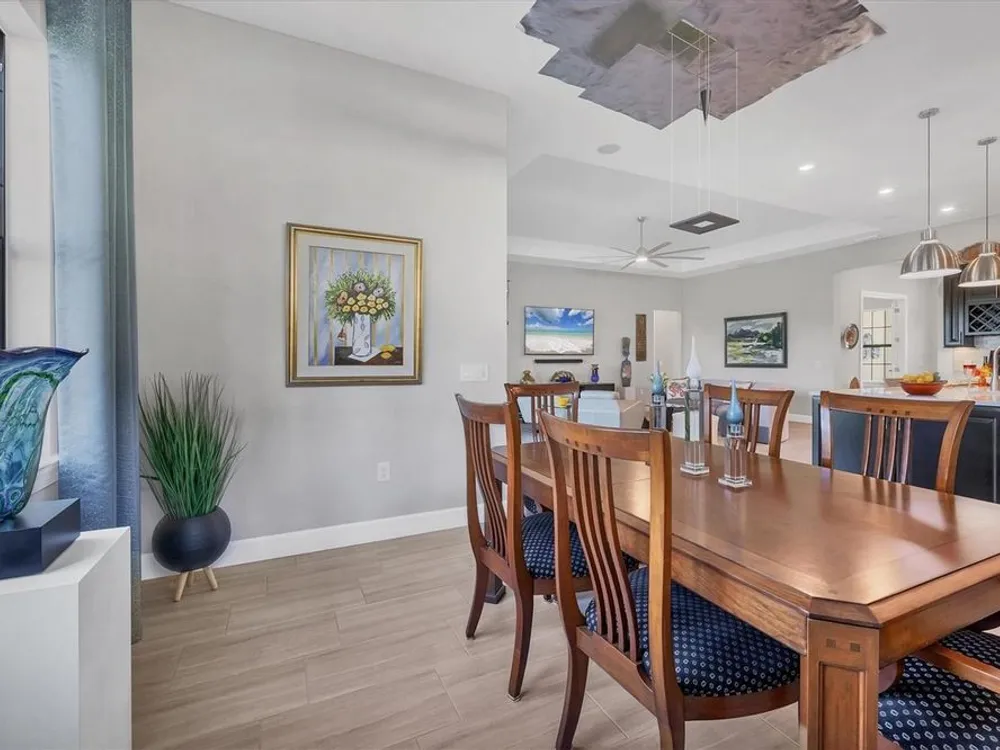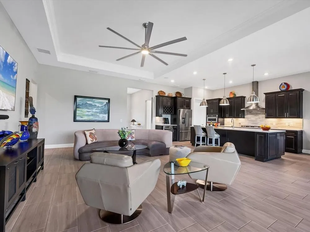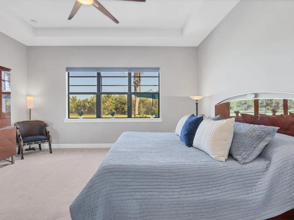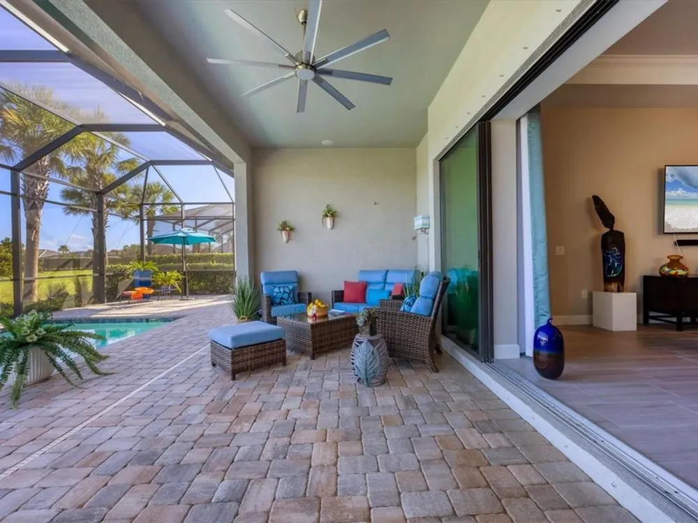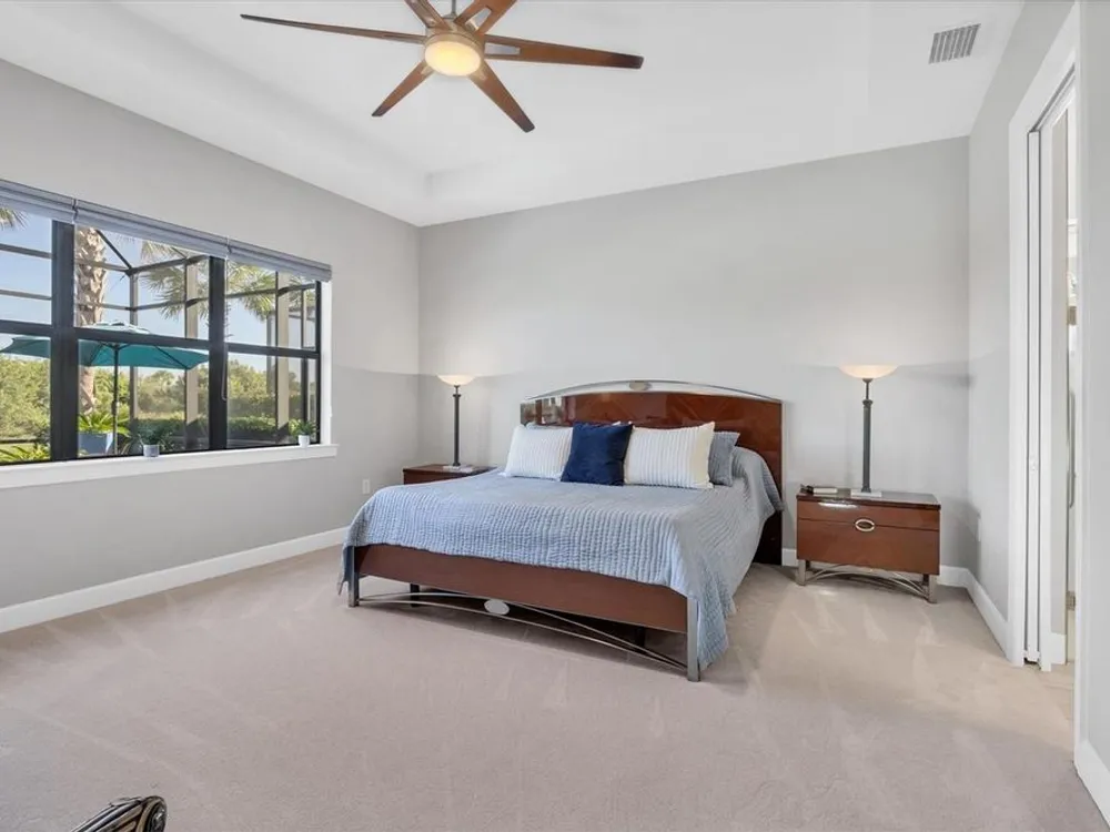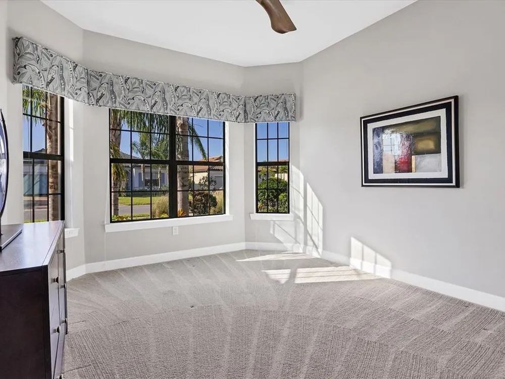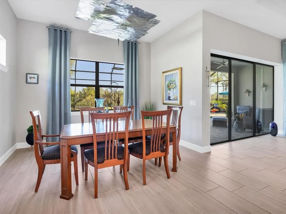 Welcome to resort-style living in Del Webb at Lakewood Ranch, a vibrant 55+ gated community designed for ease, connection, and comfort. This beautifully situated 2021-built home offers peaceful water views and expansive nature preserve scenery from your private screened pool courtyard. Enjoy the best of Florida’s indoor-outdoor lifestyle with impact-rated sliding glass doors that stack open from the great room to the patio, creating a seamless flow for indoor-outdoor living, entertaining, and relaxing. The open-concept Stellar floor plan features 11-foot ceilings, porcelain tile flooring, a neutral color palette, and a split-bedroom layout for maximum privacy. The spacious primary suite includes a double vanity, water closet, walk-in shower with a bench, linen storage, and an oversized walk-in closet. The guest suite offers an en-suite bath and charming bay window, while the third bedroom is adjacent to a full hallway bath. A den with French doors provides a quiet, bright retreat for a home office, library, or gallery. Additional highlights include a rare 3-car garage with epoxy pebble-finish floors and built-in storage, a durable tile roof, and concrete block construction for full maintenance-free living and peace of mind. The heart of the community is the welcoming clubhouse, where a full-time lifestyle director connects residents with a variety of amenities— from fitness classes and social events to tennis, pickleball, swimming pools, and on-site dining at the Lake House restaurant and bar. This is your opportunity to enjoy beautiful living in one of Florida’s most desirable active adult communities. Take advantage of all the shopping and dining options at University Town Center, our new Mote Marine Aquarium, Downtown Lakewood Ranch, Farmers Market, and lakeside restaurants at Waterside