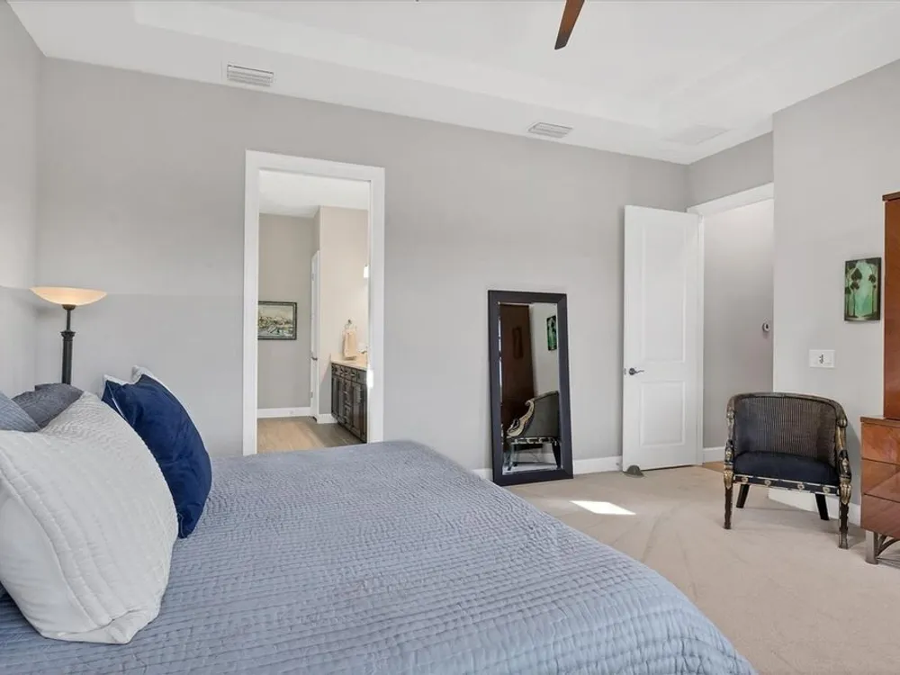 - Ceiling Fan(s), High Ceilings, Open Floorplan, Solid Surface Counters, Solid-Wood Cabinets, Split Bedrooms, Thermostat, Tray Ceiling(s), Walk-In Closet(s), Window Treatments