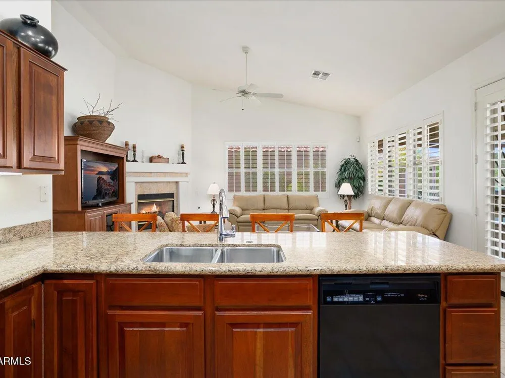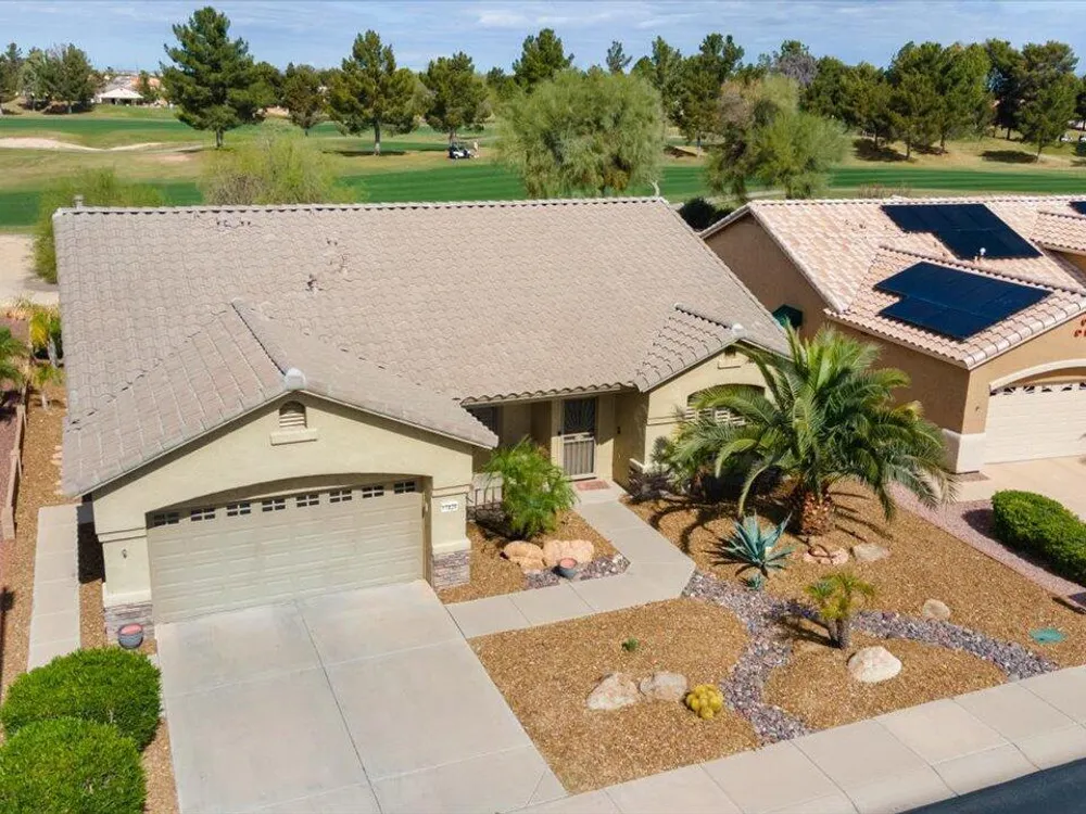 Dreams can come true, you can afford a home with expansive golf course & mountain views in a 55+ active adult resort! This move-in ready home features a unique flrplan offering TWO PRIMARY SUITES and 2.5 baths! Step inside to a formal living & dining/home office. Plus you'll enjoy the open greatrm combining kitchen, breakfast & family rms all with golf course views! Kitchen offers cherry cabs, black appls, lg pantry & expanded breakfast bar! Spacious family rm has a stacked stone gas fireplace! Both primary stes have BIG walk-in closets & full baths! Plantation shutters thruout! Neutral tile flows thru walkways w/carpet inserts. The ext'd patio provides lots of entertaining space, a gas BBQ island & relaxing golf, mountain & sunset views! PLUS NEW ROOF UNDERLAYMENT 2024! MUST SEE!