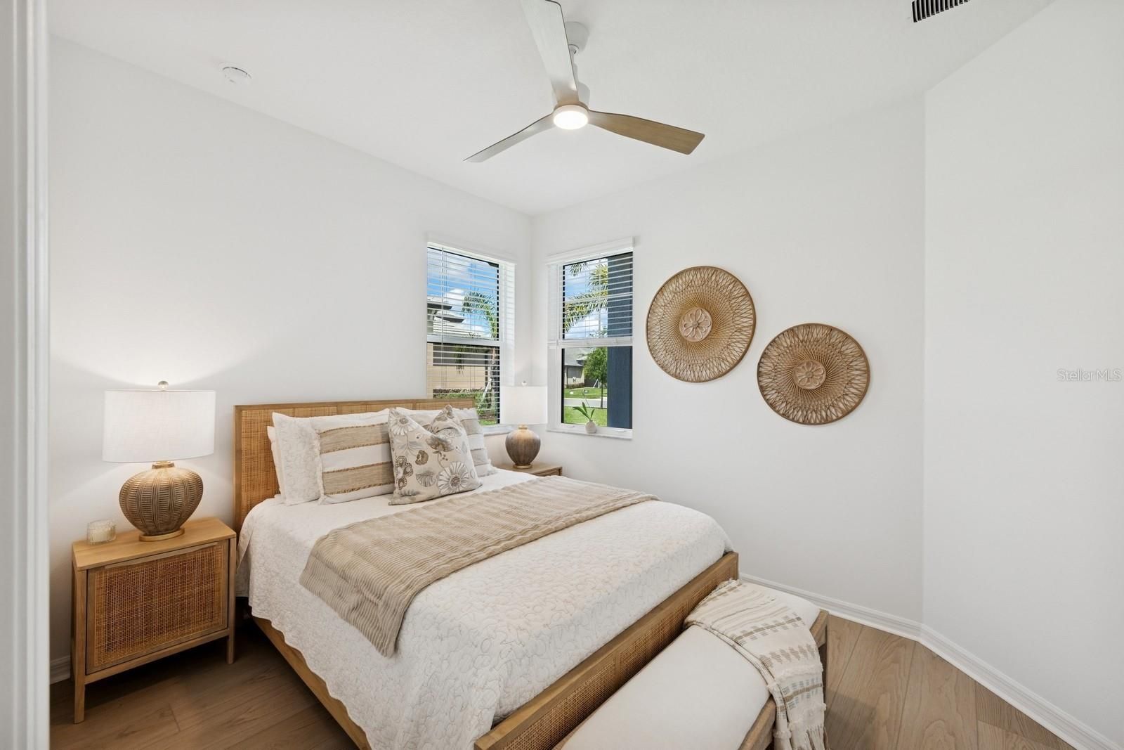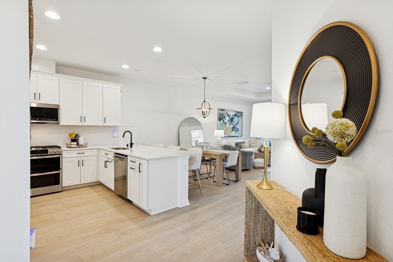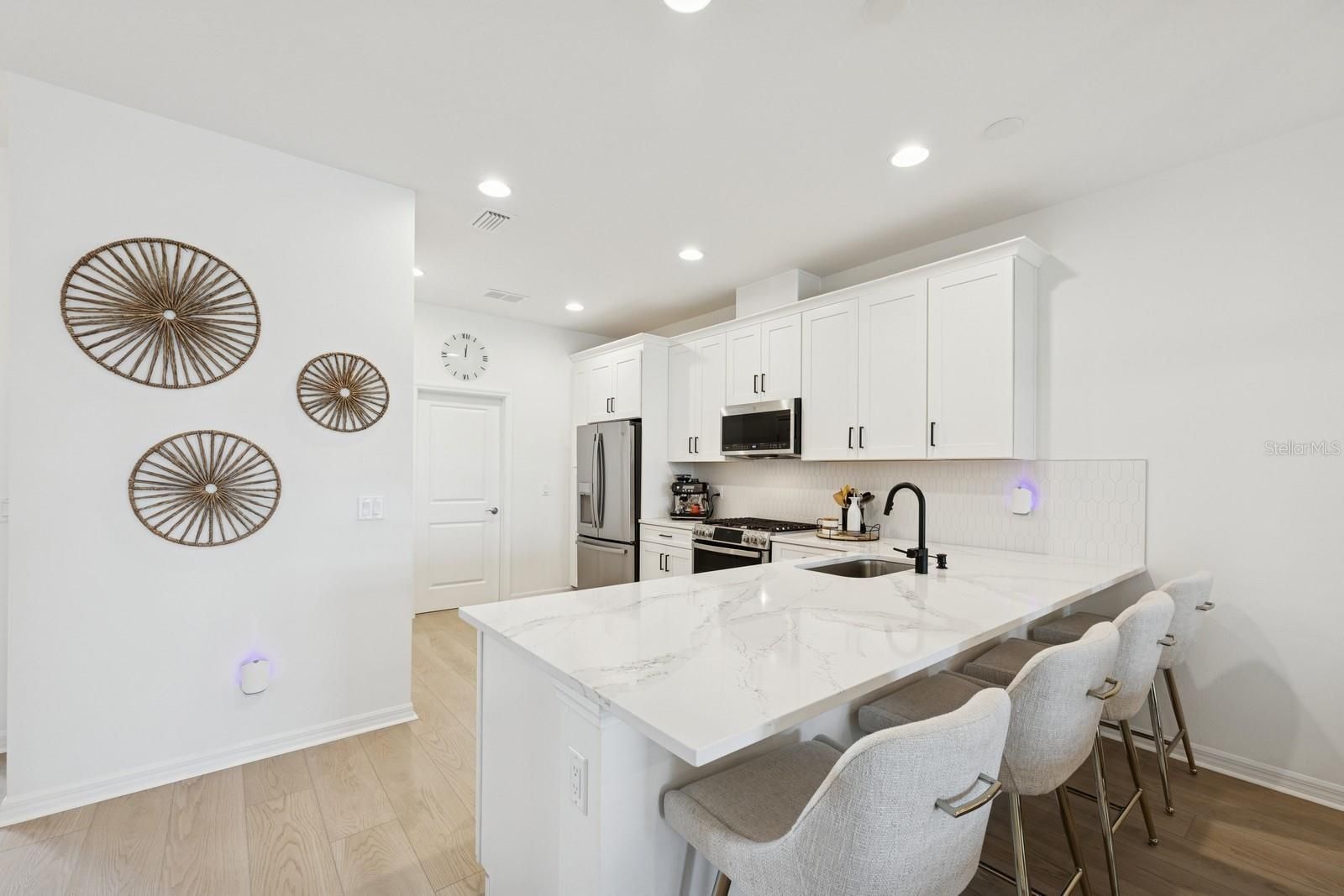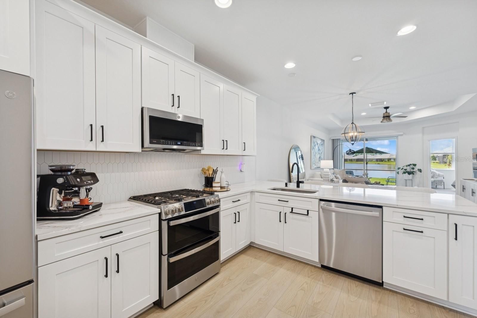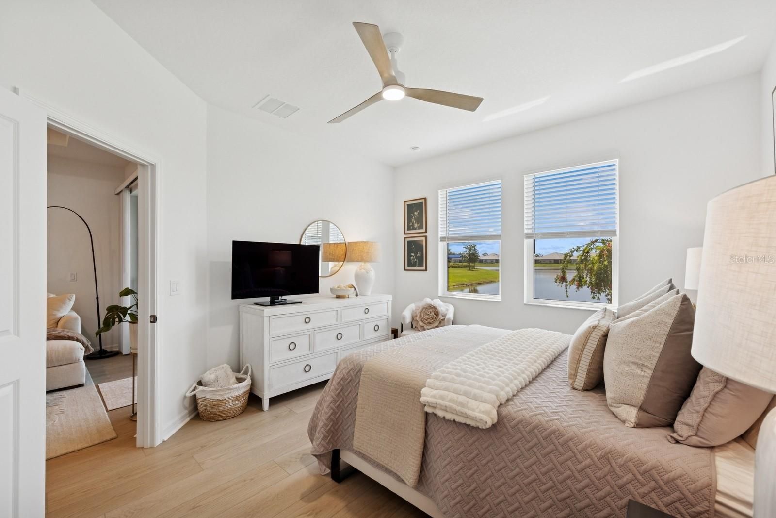 Experience the best of maintenance-free living in this totally updated 2-bedroom, plus Den/Office which can be used as an additional bedroom, 2-bath villa in Sweetwater at Lakewood Ranch community. Enjoy peaceful water views from the extended lanai perfect for entertaining or relaxing. The thoughtfully updated kitchen features pull-out shelves, soft closed drawers and cabinets throughout and a built-in-trash system, while the luxury primary suite boasts dual sinks, walk-in closet, and frameless glass shower. Additional highlights include a two-car garage with epoxy flooring, luxury vinyl flooring throughout and walking distance to all community amenities.