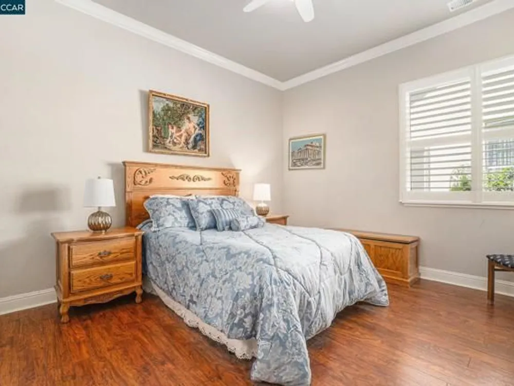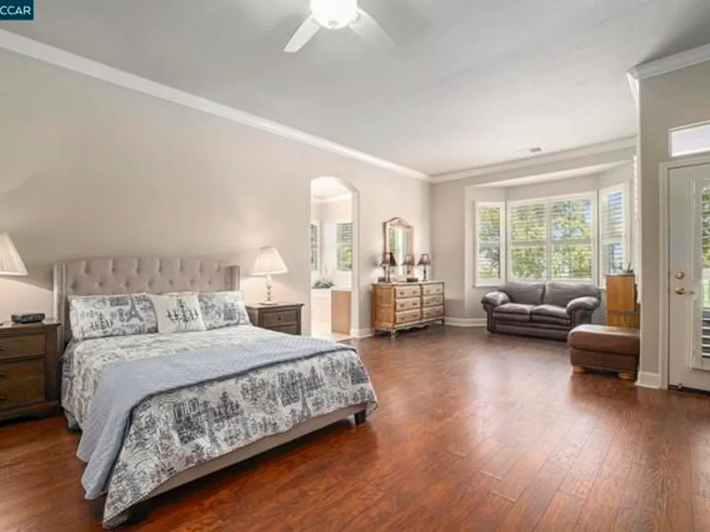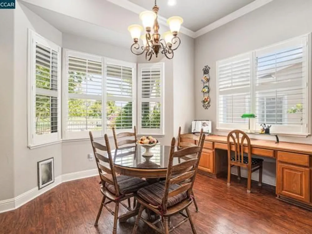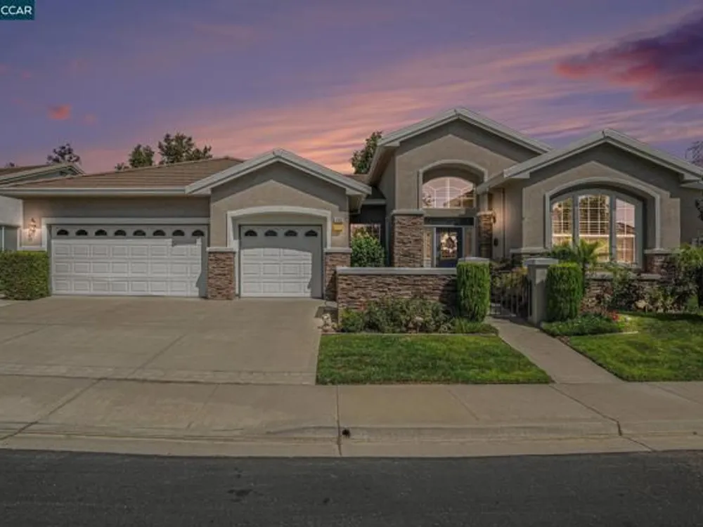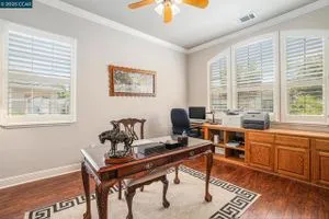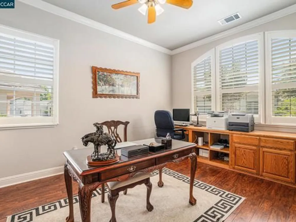 Open Tuesday, Oct. 7th, 10am -noon. Seller Financing available on this beautiful Majestic, the largest model in the community. This home has a gracious open floorplan with high ceilings, lovely hardwood floors, crown moldings and a 3 car garage with built-in cabinets and a workbench. Host large gatherings in the formal living room and dining room that open to the family room. The home chef will prepare meals in the gourmet kitchen while taking in views of the golf course. Owners have a relaxing retreat in the spacious primary suite at the rear of the home. There is a guest en-suite bedroom and a separate office in this model You will find beautiful custom shutters on all windows. Enjoy fabulous back yard views from the 17th hole to the 1st tee. Easy walk to the clubhouse, pool, gym and tennis courts. Summerset is a 55+ resort-like community with many amenities and activities for owners and their guests. 30 minutes to Livermore or Walnut Creek.