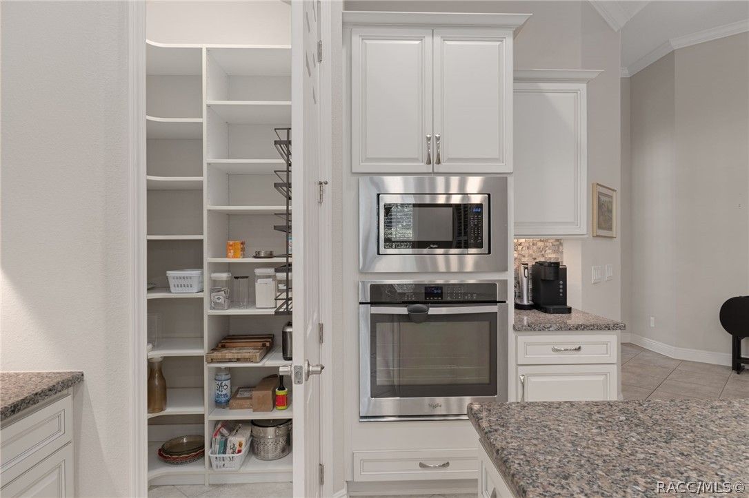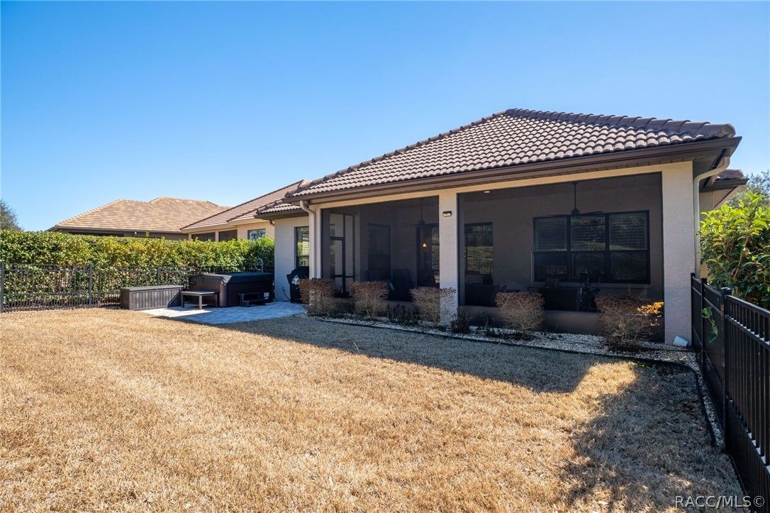 This beautifully designed 2017 home offers 2 spacious bedrooms, 2 modern bathrooms, and a dedicated office/den space, perfectly blending comfort and luxury. Upon entering, you are greeted by tile floors that extend throughout the home, high ceilings adorned with elegant trays, and crown molding that enhances the tasteful aesthetic. The living room features a massive built-in area with lighted glass shelving, providing ample storage and an elegant display for your art and treasured items. The primary bedroom is a true retreat, complete with a walk-in shower, dual sinks, and additional cabinetry in the vanity for extra convenience. The walk-in closet boasts built-ins for optimal organization. The kitchen is a chef’s delight, showcasing granite countertops, stainless steel appliances, and a stylish backsplash, with a pantry that includes built-in shelving for your culinary needs. Plantation shutters throughout the home add a sophisticated touch, while the neutral color palette offers a serene ambiance. Step out to the enclosed lanai, which is beautifully finished with pavers, perfect for relaxation or entertaining. An additional paved area outside is ideal for barbecuing and features a cozy two-man Jacuzzi, enhancing the outdoor experience. The landscaped backyard is enclosed by a wrought iron fence and surrounded by shrubs, providing a sense of privacy. The home’s striking stacked stone exterior not only adds to its visual appeal but also enhances its curb presence. Located in the highly desirable Terra Vista community, residents enjoy access to fantastic amenities, including a state-of-the-art fitness center, spa, dog park, pickleball courts, indoor and outdoor pools golf courses and more. This move-in-ready home is not just a property; it’s an absolute showstopper! Call for your personal viewing today.