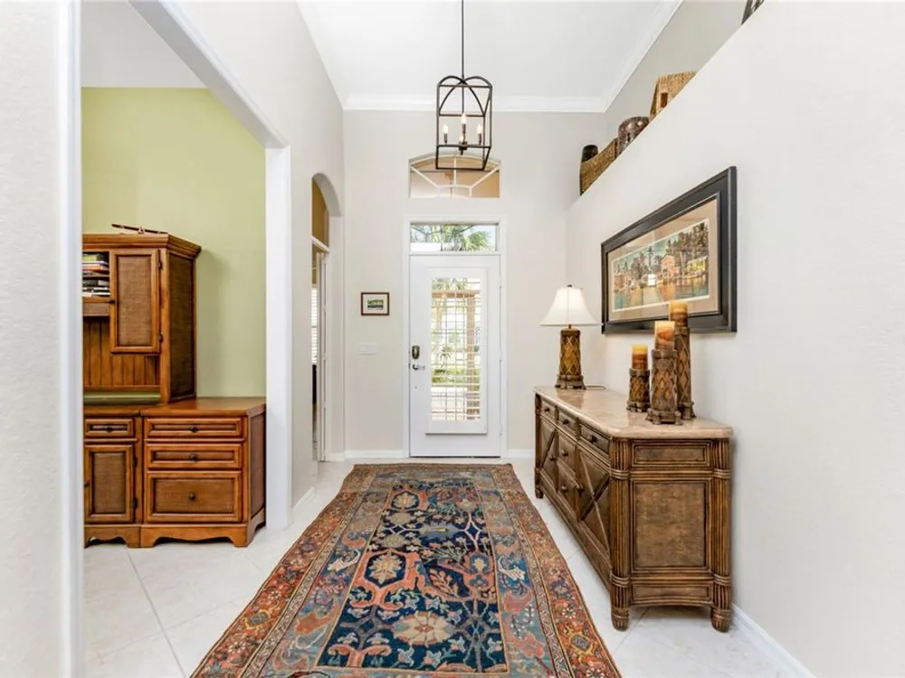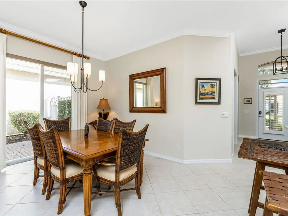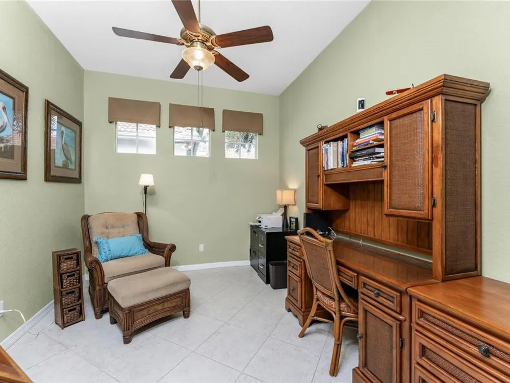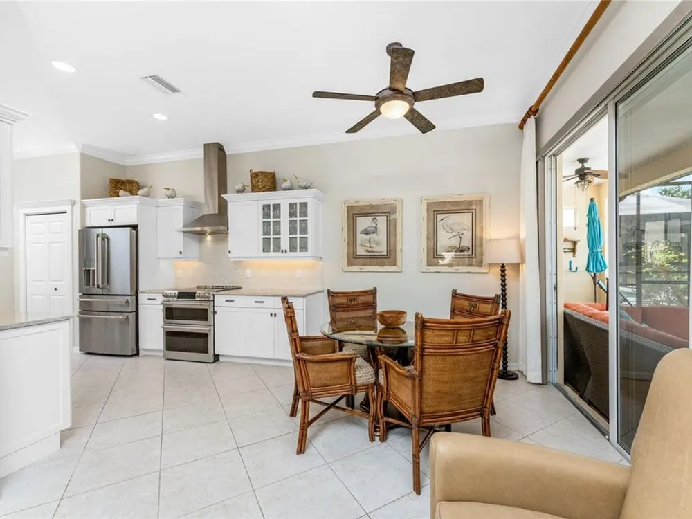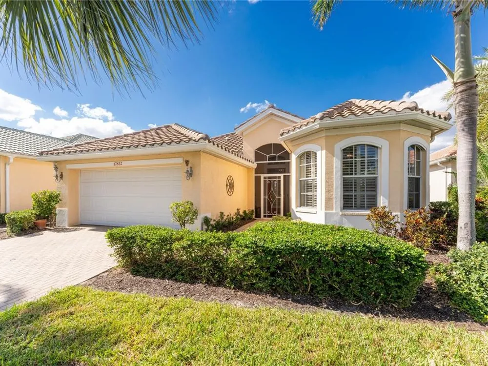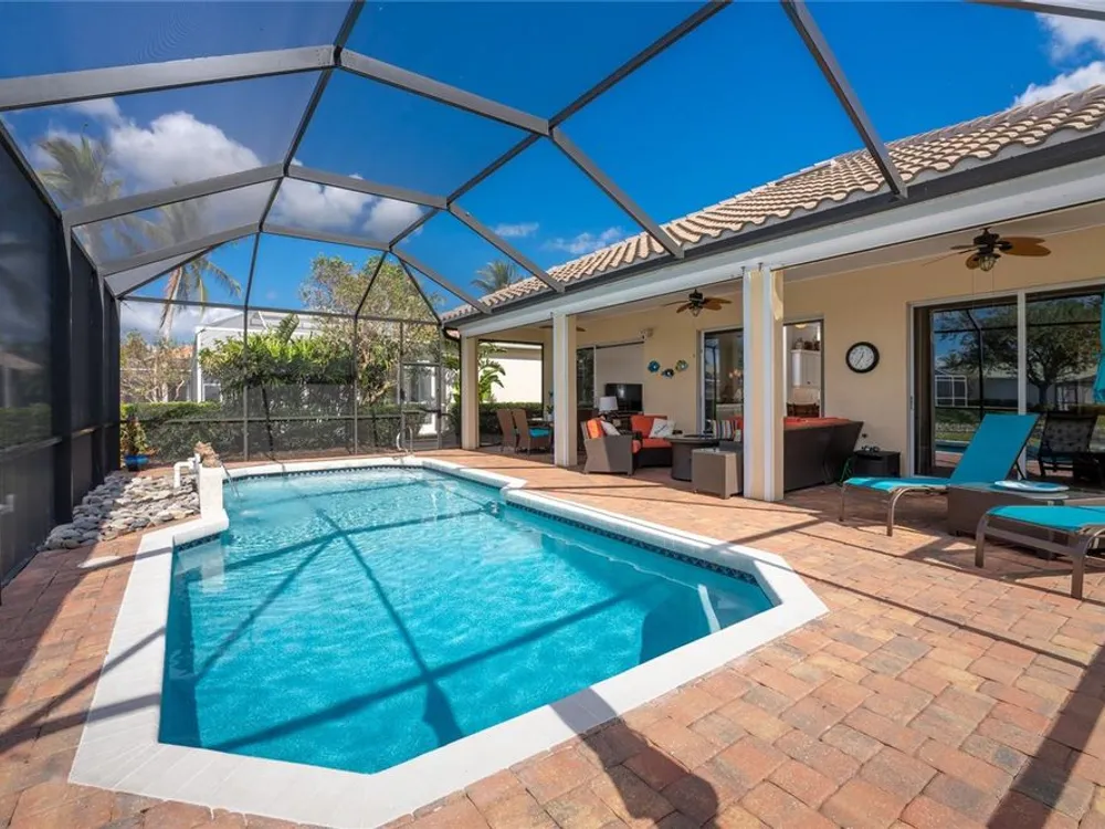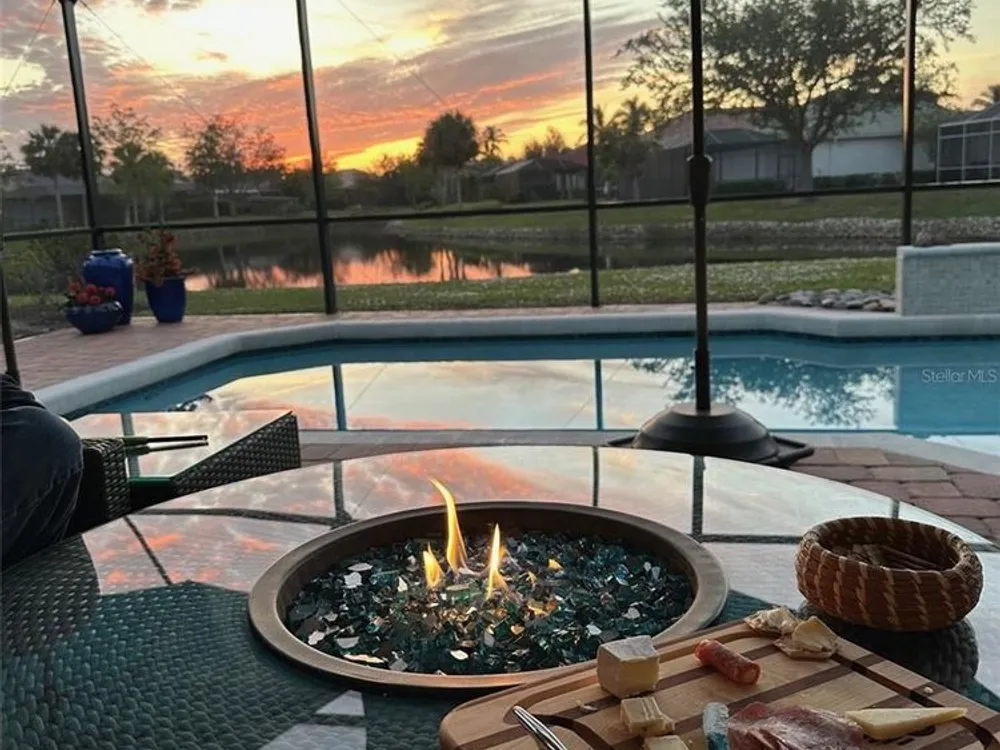 No detail has been overlooked in this brilliantly updated two bedroom plus den lakefront home, located in the coveted neighborhood of Courtside Landings in Burnt Store Marina. Nestled in the heart of the community, this home is just a short walk to Cass Cay waterfront restaurant, the Trading Post, the south marina basin, fitness, pickleball and tennis. As you approach this charming retreat, you are sure to appreciate the paver drive, pleasing landscape and the handsome new roof - installed in 2023. This stunning Lacoste floor plan is being offered partially furnished, so you can move right in and begin living the vibrant Florida lifestyle you’ve been dreaming of! You are sure to be impressed with the striking architecture from the moment you enter the inviting foyer. At the heart of the home, the freshly renovated kitchen showcases impeccable craftsmanship by Cornerstone Builders. Extensive white shaker cabinetry is adorned with Taj Mahal quartzite countertops, zellige tile backsplash, and sleek GE Café stainless steel appliances, including a double oven and induction cooktop with stainless hood…a true chef’s delight! Crisp white cabinetry is accentuated by decorative glass insets, pull out shelving and a handy touch faucet that add sophistication to this stylish space. The main living area exudes refinement, featuring crown molding, diamond-set tile flooring, custom drapery, and plenty of natural light through three sets of sliding doors. Step outside to the expansive paver pool deck, where a large pool with double waterfall, promises endless relaxation and entertainment, all set against the serene backdrop of the lake. The home’s thoughtful layout includes two bedrooms plus a den, providing flexible space for guests or a home office. Your guests will be delighted to stay in the attractive guest suite which enjoys abundant sunshine, laminate flooring and a tasteful bath updated by Cornerstone. The spacious primary suite is a private retreat with tasteful tray ceiling, laminate flooring and pool and pond views framed by sliding doors that lead out to the lanai. Two closets flank the hall leading to the luxurious en-suite bath with dual sinks and a spacious tiled walk-in shower. Full hurricane protection provides peace of mind, including convenient motorized storm screens on the lanai, and an upgraded hurricane grade garage door. Step outside and enjoy easy access to the community’s friendly social and recreational culture. The gated community of Burnt Store Marina boasts a 27-hole golf course, clubhouse with tiki bar, two on-site restaurants, tennis, pickleball, fitness center, and lots of great people! Come for the lifestyle…stay for life!