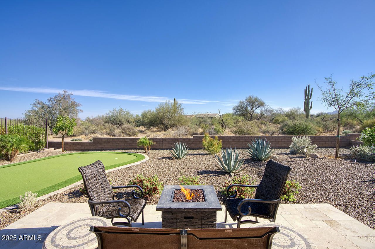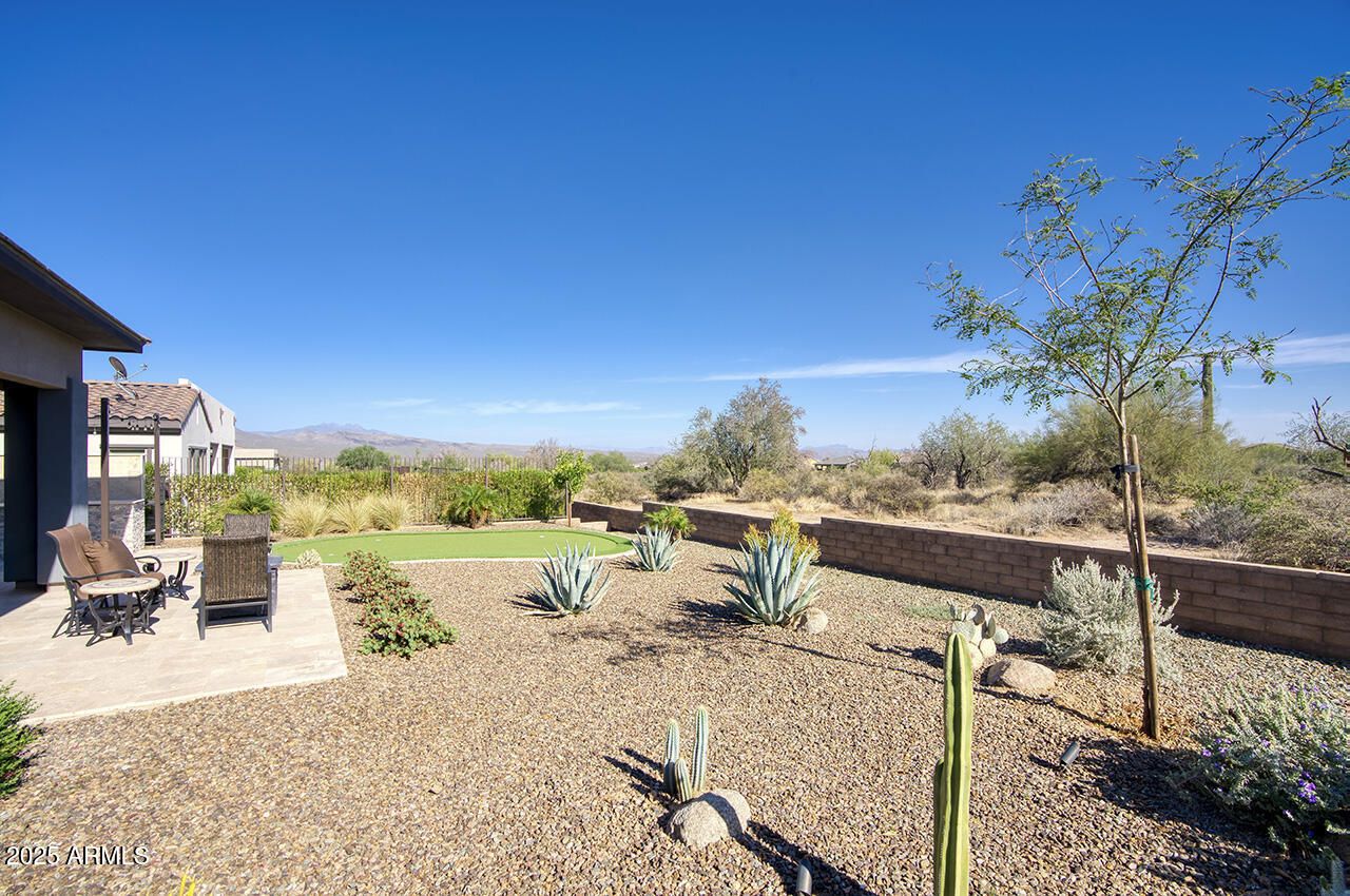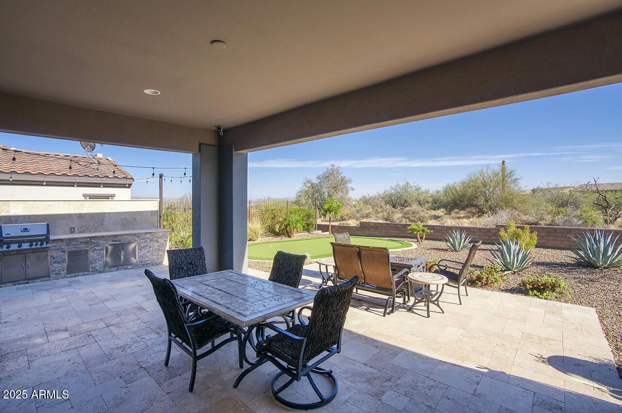 REDUCED! Available Furnished! HIghly upgraded home with privacy and open concept. Kitchen has induction cooktop with granite waterfall island. Added room off garage creates additional space. Tile plank floors, Barn doors in Master Bath and Den create a home you can lock and leave or stay forever. Outdoor living with Putting green, cooking area and views to the South. Patio looks out to arroyo and Four Peak mountains creating the privacy everyone wants, but few have. Don't miss this one.