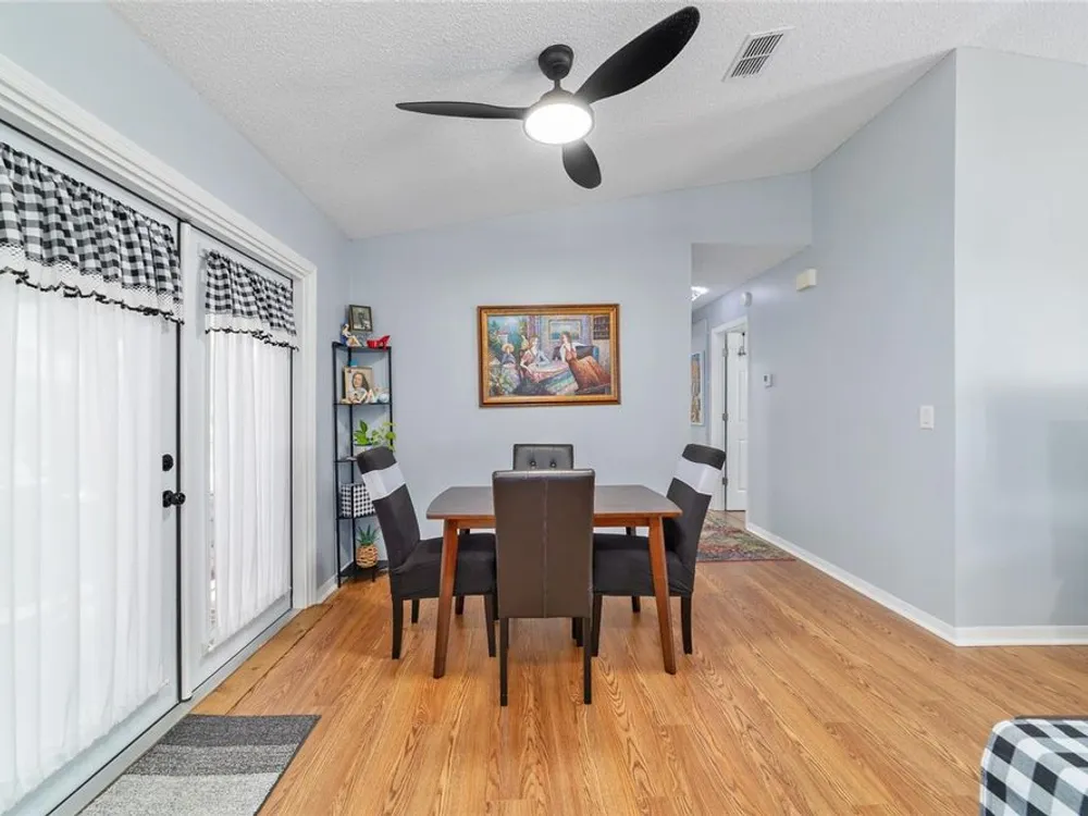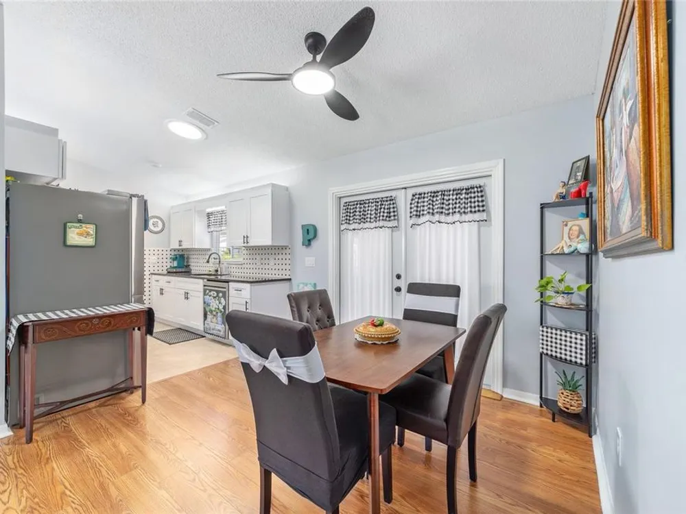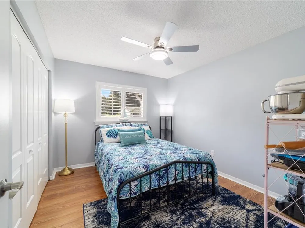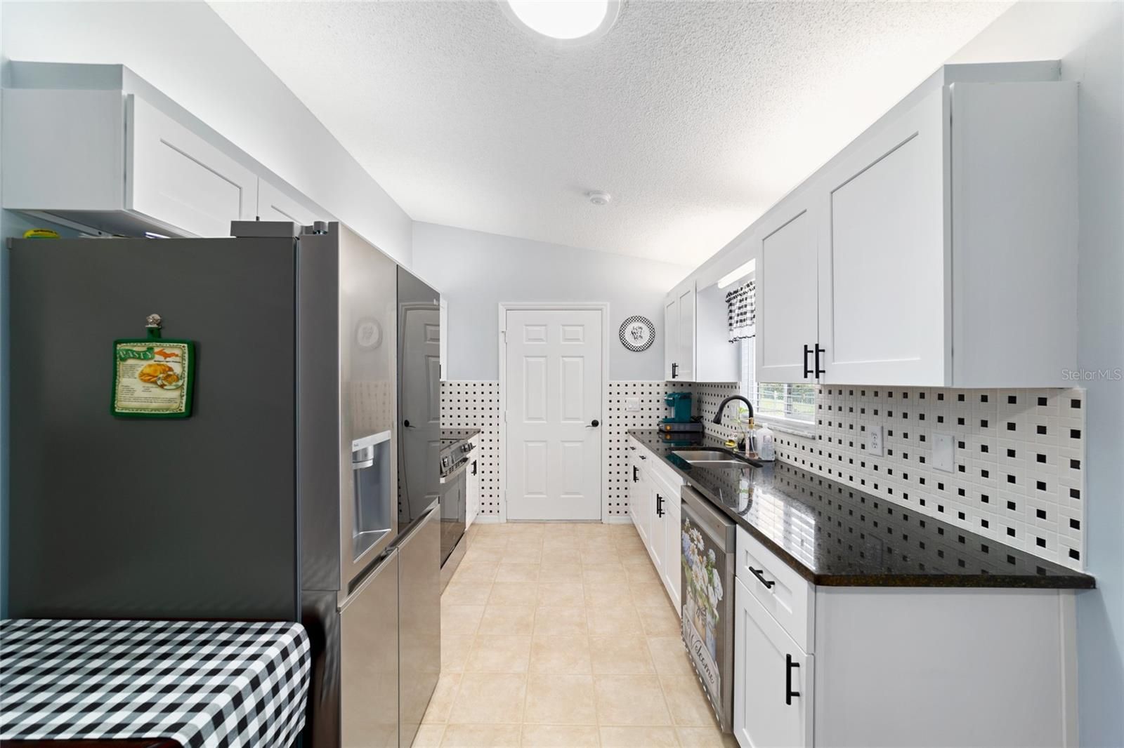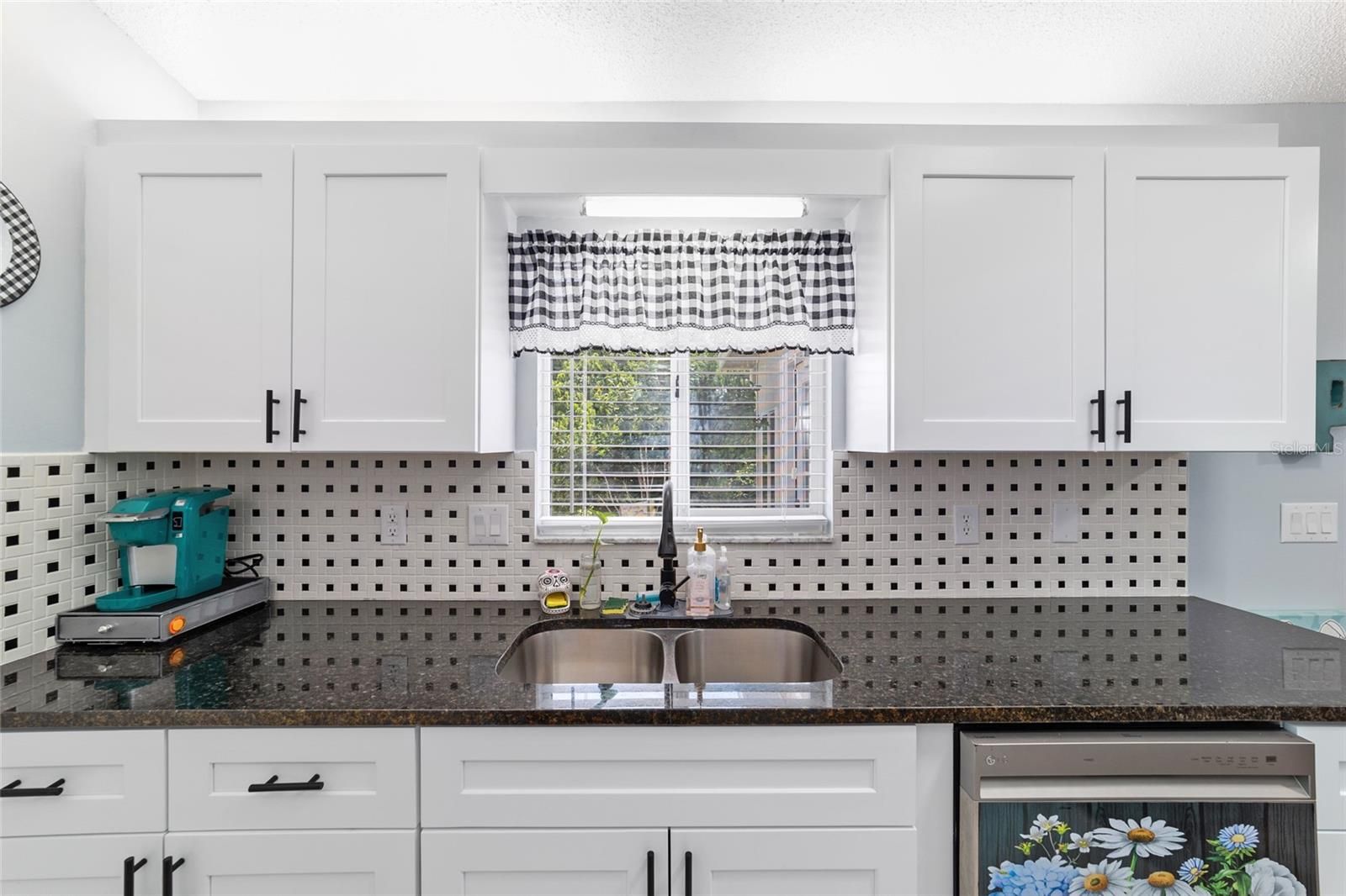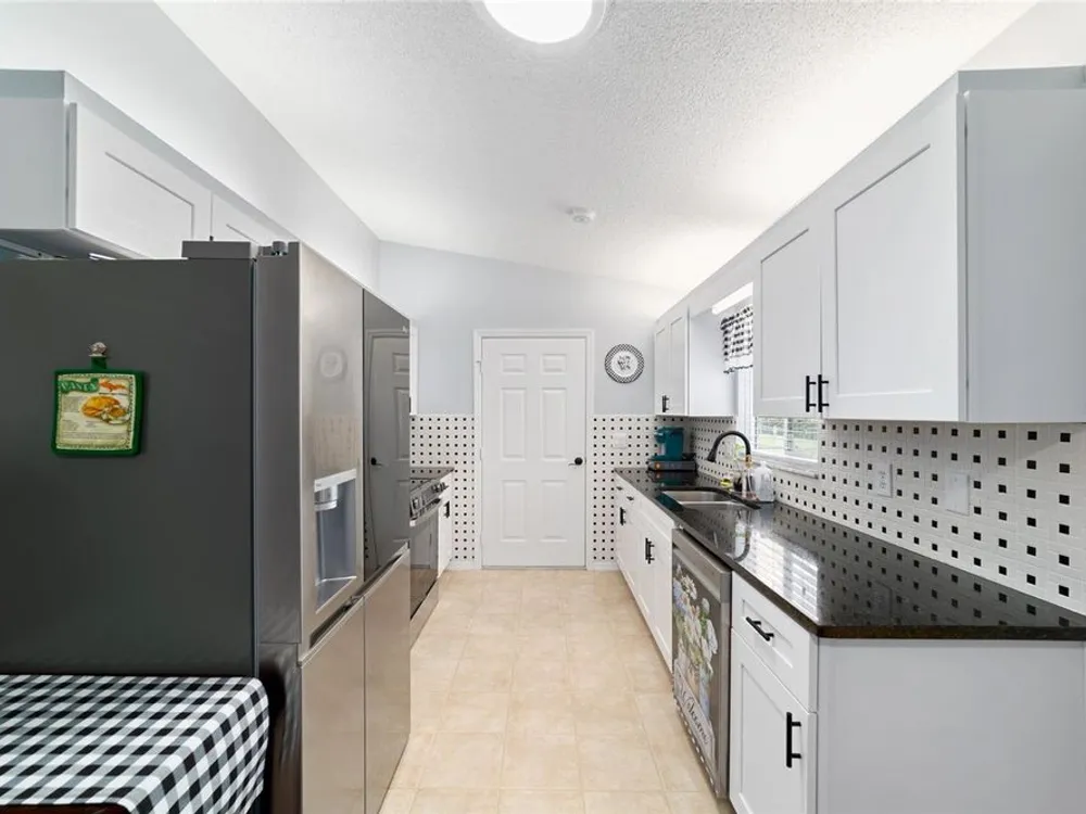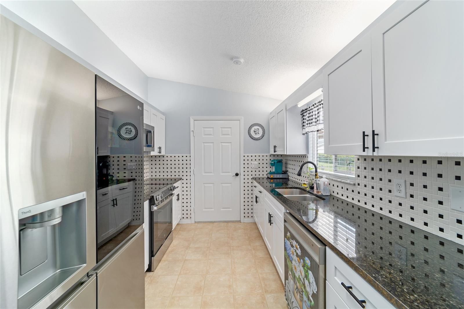 This charming 2-bedroom, 2-bath brick home, located in a gated 55+ community next to The Villages, offers 1,158 sq ft of meticulously maintained living space. It boasts modern updates including a refreshed kitchen with granite countertops, soft-closing cabinets, and a stylish backsplash, along with artistically designed bathrooms featuring soft-closing cabinets, and stylish mid-tone vinyl plank flooring throughout. The beautifully landscaped yard features designer stone accents and a fenced area for your pet, all complemented by vaulted ceilings and fresh paint. Roof (2012), HVAC (2018). New refrigerator 11/2023, new microwave 2/2024, new range 9/2024 with air fryer & convection oven, replaced all hardware & faucet in kitchen, added french doors to lanai, replaced door & 2 windows in lanai, replace Living and dining room ceiling fans with LEDs & remotes, painted front door, landscaped front yard, replaced ceiling fixture in hallway, added shelf in master closet, 6 panel doors & hardware Conveniently situated near community amenities like a center, exercise facilities, and social activities, with easy golf cart access to shopping and healthcare. THIS HOME IS NOT LOCATED IN THE FEMA FLOOD ZONE. NO FLOOD INSURANCE REQUIRED