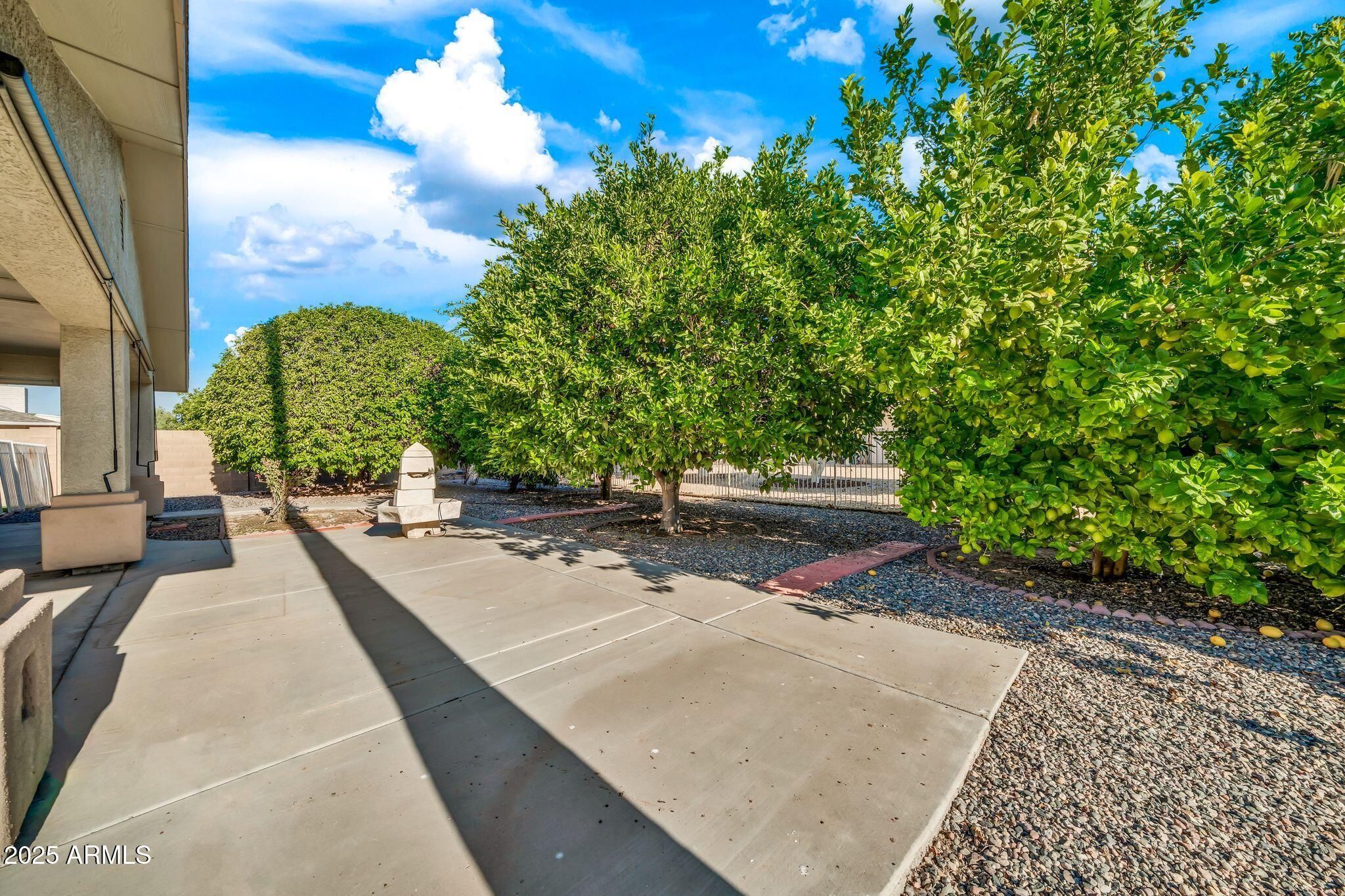 Renovated and expanded Annapolis model in the perfect Sun City location! This bright, open home features beautiful 24'' tile throughout, plantation shutters, ample storage, large laundry room and an upgraded guest bathroom with a fully redone level-entry shower. The spacious layout offers great flow for everyday living or entertaining. Enjoy a large backyard with abundant patio space and mature fruit trees—ideal for relaxing or hosting gatherings. Move-in ready and close to all the best Sun City amenities! You won't want to miss this one!