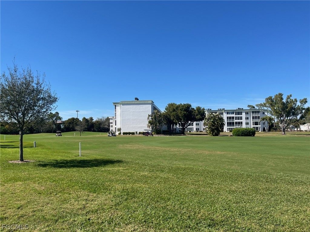 Desirable first floor end unit condo with 2 bedrooms and 2 bathrooms. Luxury Vinyl Flooring in Bedrooms and Main Living Area. The Kitchen is brand new with white shaker cabinets, granite countertops and stainless-steel appliances. Open living room and lanai with sliding doors where you can relax and enjoy the views of the golf course. Primary bedroom also has views of the golf course and a walk-in closet, ensuite bathroom with walk-in shower. Condo is very well maintained and CAR PORT SPACE #9 IS INCLUDED!! Condo fees which are inclusive of all the amenities that you can enjoy here which include, Executive 18-hole golf course (for 2 owners per unit to enjoy golf)) with no fees, 6 tennis courts, pickle ball courts, bocce ball, shuffleboard. An auditorium that hosts many events (Dinners and Dancing) trivia, bingo to name a few. On site Recreative Department that keep you as active as you like. Card clubs, sewing, quilting, camera club... Your condo fees also cover your internet, cable, water, trash removal and lawn maintenance. As an owner you pay your electricity. Come and take a look at this piece of paradise in our 55+ community, which is Fort Myers hidden gem. Centrally located close to shopping, restaurants, internation airport and so much more. Come See Our Beautiful Community.