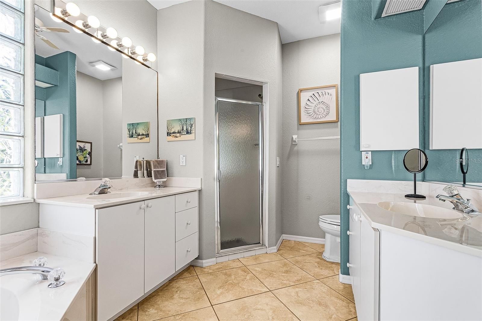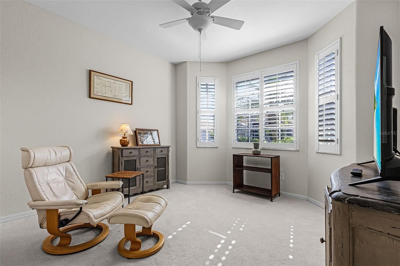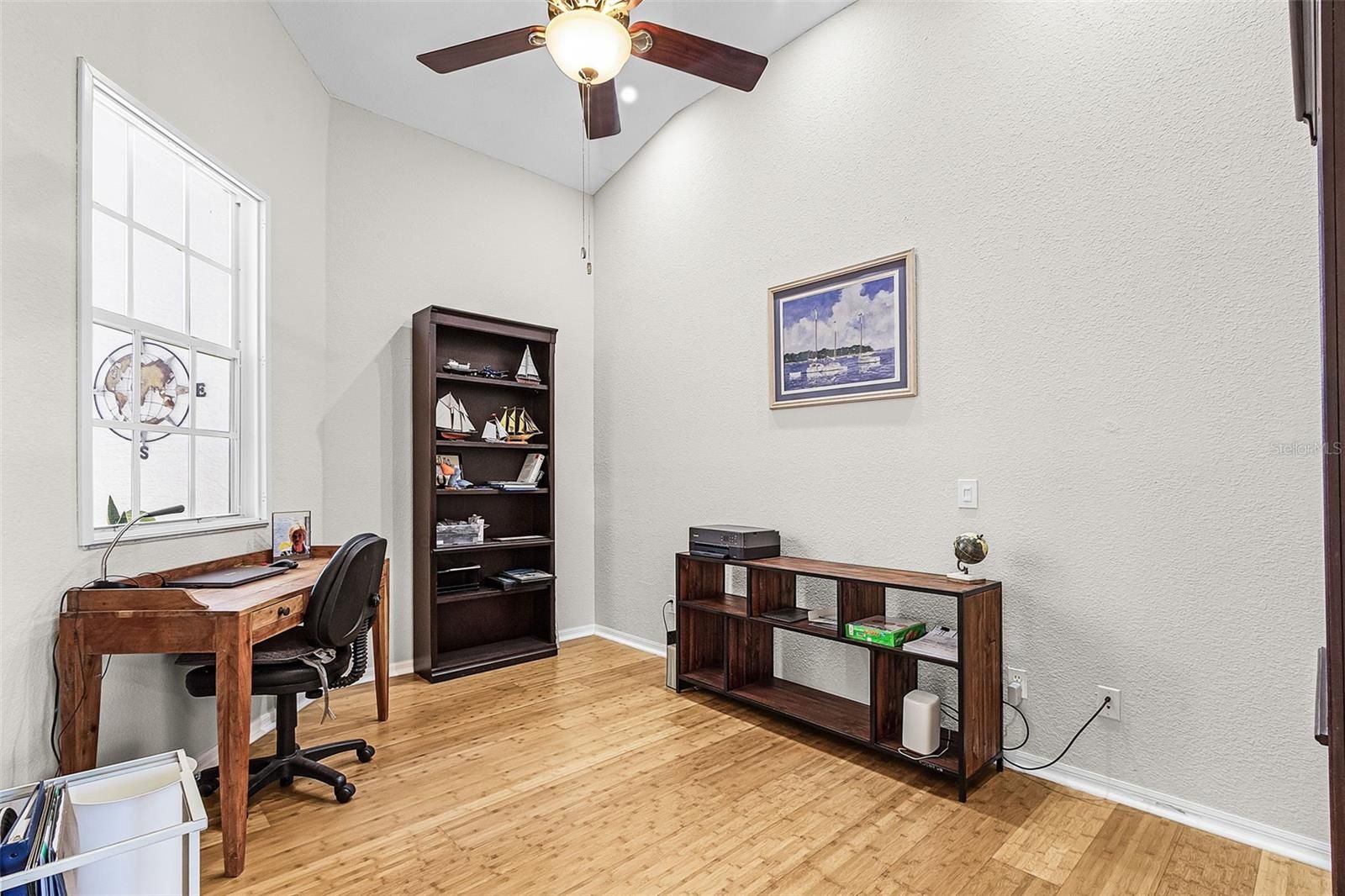 - Ceiling Fan(s), High Ceilings, Living/Dining Room, Open Floorplan, Main Level Primary, Split Bedrooms, Stone Counters, Vaulted Ceiling(s), Walk-In Closet(s), Window Treatments