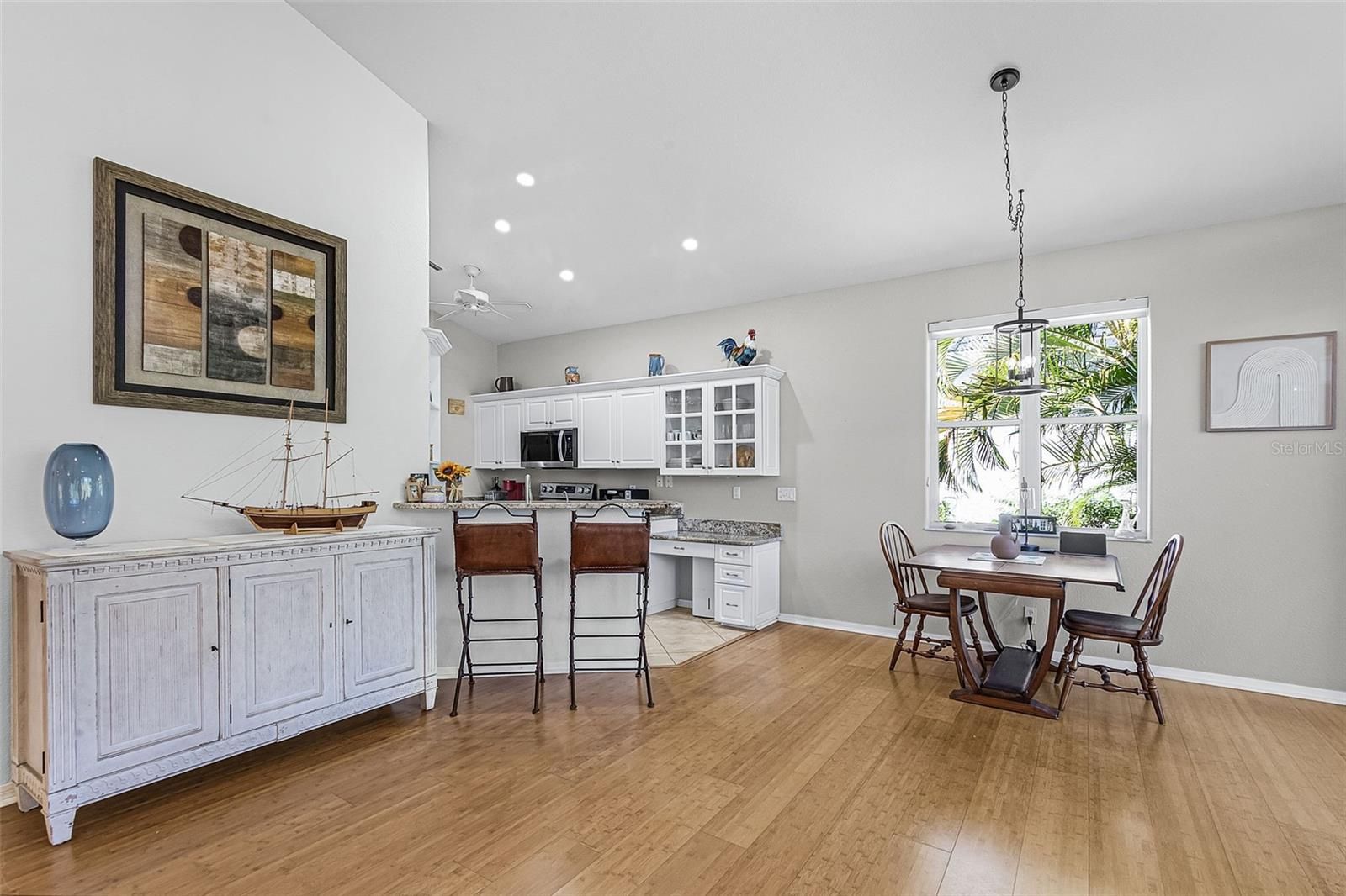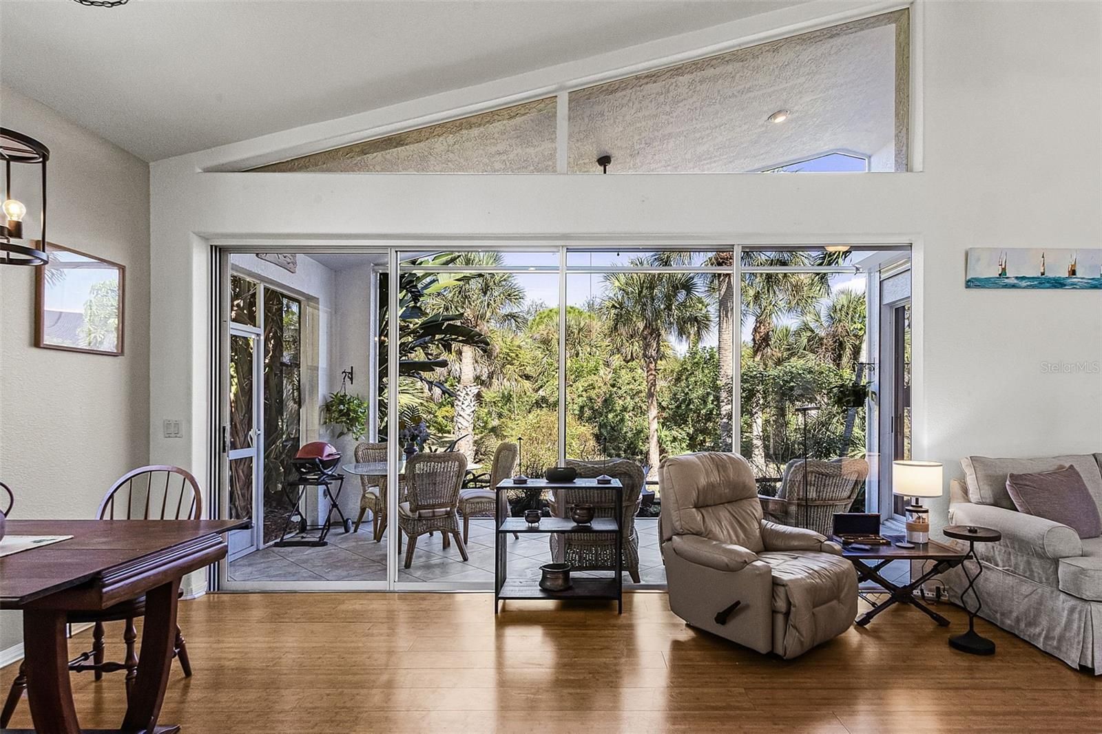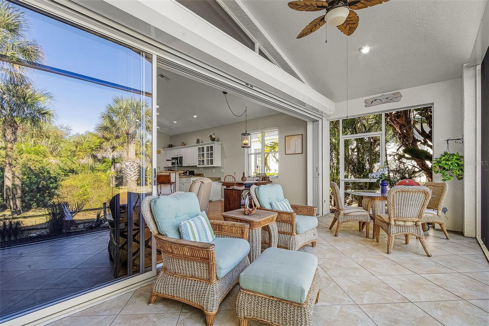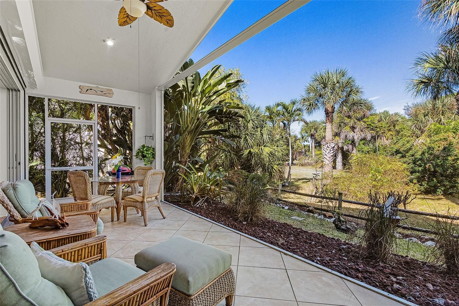 A great price and great location! And the Seller just installed new doors on the den and new stainless appliances in the kitchen for even more value! Come see this quiet cul-de-sac that's close to the heart of the Marina and you'll find this beautiful TURNKEY FURNISHED home with 2 bedrooms, 2 baths plus den/office that can now be used as a 3rd sleeping area! With a light and bright contemporary feel, soaring ceilings complement the stunning bamboo flooring and diamond-set tile in the entry, den and kitchen with updated fans and light fixtures above. From the inviting entry you’ll immediately notice the four oversized pocketing sliders in the great room and the huge transom window that together create a perfect frame around the tropical view beyond. In the cooler months you can open them wide and enjoy watching the enchanting turtle preserve in back where abundant trees and flowers invite local birds to the peaceful retreat. The spacious tiled lanai was updated with a picture window screen creating a seamless transition between inside and outdoors. The desirable open floorplan features a well-appointed kitchen where updated cabinets include crown molding above and doors with glass inserts over attractive granite counters and breakfast bar. A split bedroom layout gives everyone more privacy and each bedroom features an adjoining private bath. The front bedroom has loads of natural light through bay windows with classic plantation shutters. The fabulous owner’s suite in back features pocketing sliders out to the lanai and three large windows overlooking the lush view outside. The bedroom hallway leads to two walk-in closets and an ensuite bath with 2 separate vanities, soaking tub and shower. The roof has been checked, sealed and certified to protect it with a 10 year transferrable warranty. The AC was replaced in 2023 and range, microwave and dishwasher are brand new. Inside laundry appliances are also newer. Sliding screens across the 2 car garage let you open the inside doors for a cool breeze throughout the home. And you'll have peace of mind with full hurricane protection provided by both accordion and roll-down shutters. You'll also notice a wider side yard on the right that provides more privacy and greenspace. Hibiscus Cove is a desirable community of 14 homes all with pavered driveways, attractive landscaping and newer architectural stylings. Burnt Store Marina is in the largest private and gated marina on the Gulf coast. With full boating services and quick access to open water, you’ll enjoy world-class fishing and sailing or spending the day touring the Harbor. There’s also a challenging 27 hole golf course, tennis and pickleball, a fitness center, yacht club, Freedom Boat Club and three restaurants for onsite dining. You'll love this community and all this home offers!