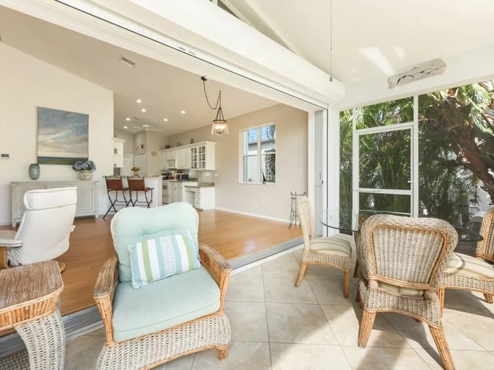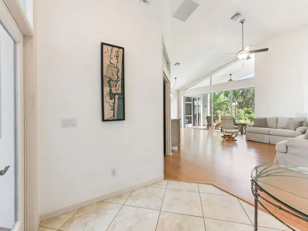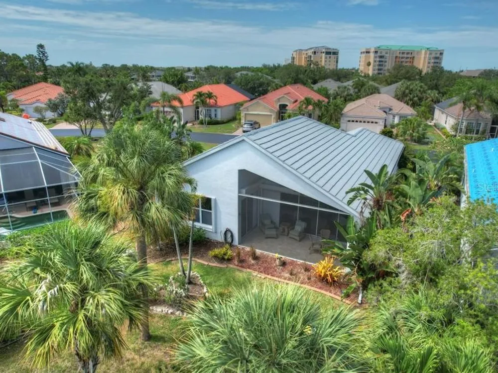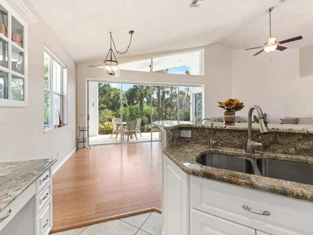 A great price and great location! In a quiet cul-de-sac and close to the heart of the Marina you'll find this beautiful furnished home with 2 bedrooms, 2 baths plus den/office with a light and bright contemporary feel. Soaring ceilings complement the stunning bamboo flooring and diamond-set tile in the entry, den and kitchen with updated fans and light fixtures above. Walk through the inviting entry and you’ll immediately notice the four oversized pocketing sliders and the huge transom window that together create a perfect frame around the tropical view beyond. In the cooler months you can open them wide and enjoy watching the enchanting turtle preserve in back where abundant trees and flowers invite local birds to the peaceful retreat. The spacious tiled lanai was updated with a picture window screen creating a seamless transition between inside and outdoors. The desirable open floorplan features a well-appointed kitchen where updated cabinets include crown molding above and doors with glass inserts over attractive granite counters and breakfast bar. A split bedroom layout gives everyone more privacy and each bedroom features an adjoining private bath. The front bedroom has loads of natural light through bay windows with classic plantation shutters. The fabulous owner’s suite in back features pocketing sliders out to the lanai and three large windows overlooking the lush view outside. The bedroom hallway leads to two walk-in closets and an ensuite bath with 2 separate vanities, soaking tub and shower. Use the front den for working from home or a 3rd sleeping area for guests. The roof has been checked, sealed and certified to protect it with a 10 year transferrable warranty. The AC was replaced in 2023 and refrigerator and laundry appliances are newer. Sliding screens across the 2 car garage let you open the inside doors for a cool breeze throughout the home. And you'll have peace of mind with full hurricane protection provided by both accordion and roll-down shutters. Notice a wider side yard that provides more privacy and greenspace. Hibiscus Cove is a desirable community of 14 homes all with pavered driveways, attractive landscaping and newer architectural stylings. Burnt Store Marina is in the largest private and gated marina on the Gulf coast. With full boating services and quick access to open water, you’ll enjoy world-class fishing and sailing or spending the day touring the Harbor. There’s also a challenging 27 hole golf course, tennis and pickleball, a fitness center, yacht club, Freedom Boat Club and three restaurants for onsite dining. You'll love this community and all this home offers!