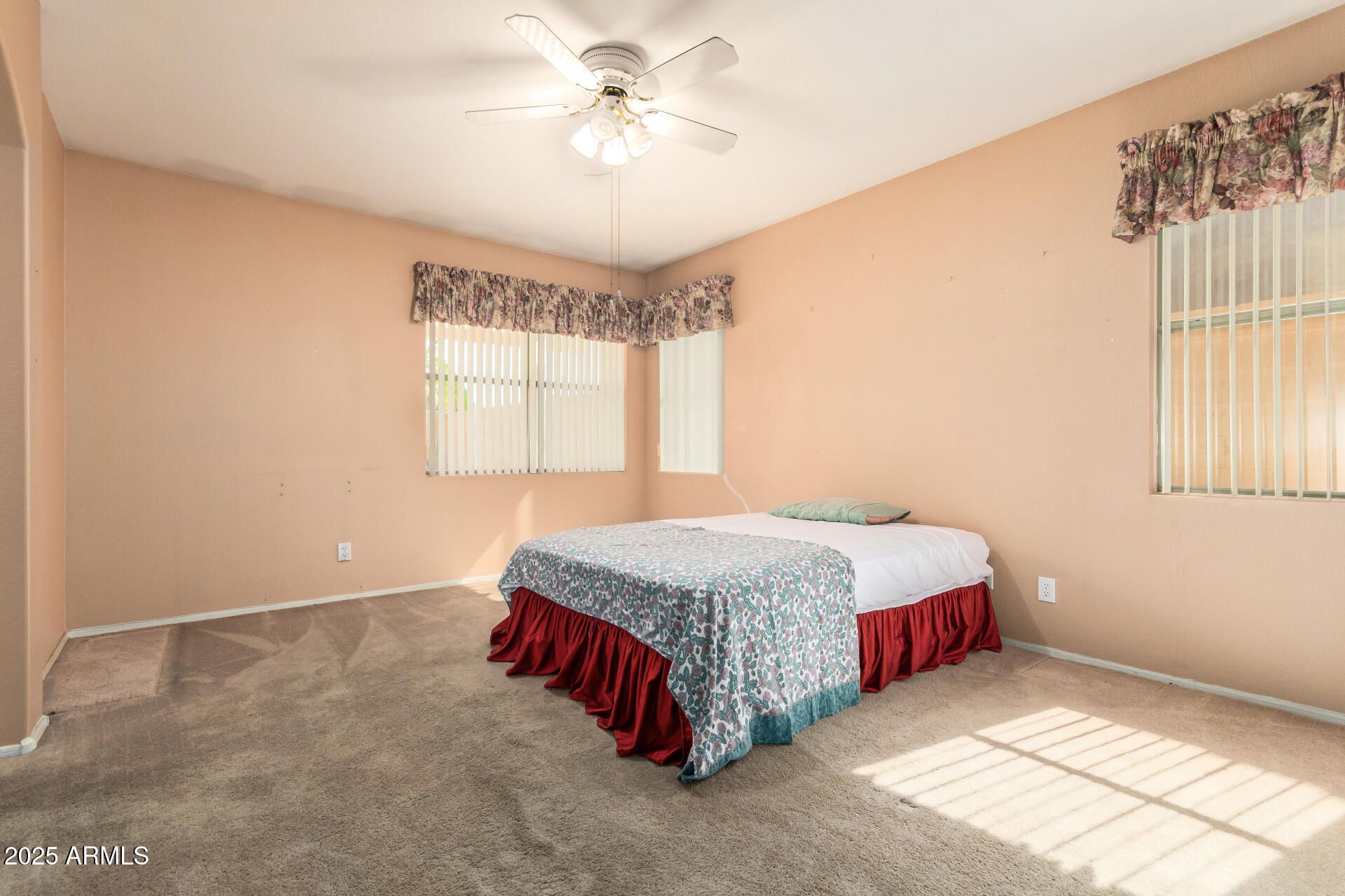 Welcome to the highly sought-after Arizona Traditions, where resort-style living meets everyday comfort. This beautifully maintained 2-bedroom, 1.75-bath home offers 1,528 sq ft of thoughtfully designed space in a vibrant 55+ guard-gated community. Spacious open layout with carpet in all the right places, fully fenced backyard with a private patio—perfect for relaxing or entertaining, designed for comfort and accessibility throughout. Community Features include - Clubhouse, Fitness center, pools, pickleball & tennis courts, endless social clubs and activities to keep you engaged. A Prime Location: Conveniently located near shopping, dining, medical facilities, and quick freeway access—making it easy to explore all the Valley has to offer. Membership Golf Course Nearby. Whether you're looking for a peaceful retreat or an active lifestyle, this home delivers the best of both worlds. Come experience the charm and convenience of Arizona Traditions!