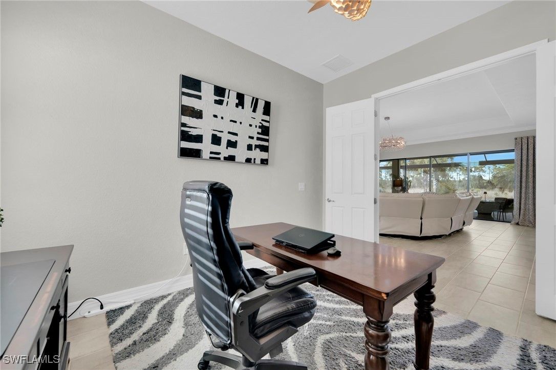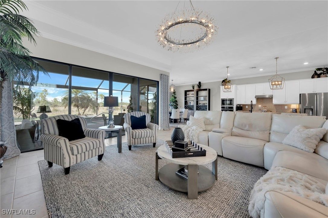 Imagine opening your sliders each day to NORTH FACING PRESERVE VIEWS, with early morning SUNRISES and beautiful evening SUNSETS, it's perfectly positioned to capture the rising and setting sun. Throughout the day the sun hits the sparkling POOL and SPA while you can still enjoying ample shade under your SPACIOUS LANAI. This Lennar SUNSET MODEL, estate series home, delivers the ultimate Florida lifestyle w/3 BEDROOMS PLUS A DEN, 3 FULL BATHROOMS, & 2650 SQ FT of single story living that feels spacious & refined. From the moment you arrive, DOUBLE GLASS ENTRY DOORS & a wide foyer w/a 12-FOOT CEILING create a grand first impression. The OPEN-CONCEPT DESIGN places the main living area the center of the home, allowing the kitchen, dining, & living spaces to flow together & open seamlessly to the lanai w/a HIDDEN SCREEN for effortless indoor-outdoor living. The living room is enhanced by an 11-FOOT TRAY CEILING, CROWN MOLDING, a “WOW-FACTOR” CHANDELIER, & a FIREPLACE FEATURE WALL that adds warmth & character. The kitchen is ideal for gathering w/a 12.5-FOOT ISLAND, GRANITE COUNTERTOPS, GE STAINLESS APPLIANCES, BUILT-IN MICROWAVE & OVEN W/AIR FRYER, & a REFRIGERATOR w/a BUILT-IN KEURIG ATTACHMENT, making everyday living & entertaining easy. Outside, the EXPANDED LANAI offers an EXTRA LARGE COVERED AREA w/an OUTDOOR TV, a POOL & SPA w/a waterfall spill over feature, & a PANORAMIC SCREEN ENCLOSURE for unobstructed views of the GORGEOUS PROTECTED PRESERVE! The private primary suite occupies its own wing of the home & features 11-FOOT TRAY CEILINGS W/CROWN MOLDING, PRIVATE LANAI ACCESS, DUAL WALK-IN CLOSETS, & a spa-inspired bathroom w/a HUGE WALK-IN SHOWER, DUAL VANITIES, & GRANITE COUNTERS. A DEN OFF THE MAIN LIVING AREA works as a home office, while the SPLIT BEDROOM LAYOUT places the two guest bedrooms on the opposite wing of the home, including one w/an EN SUITE BATH that also functions as a POOL BATH W/LANAI ACCESS & a WALK-IN SHOWER. The second guest room has a convenient full bath adjacent to it so no one has to share a bathroom! The LAUNDRY ROOM includes FRONT-LOADING MACHINES, CABINETRY, A LAUNDRY SINK, & an EXTRA STORAGE CLOSET. The THREE-CAR GARAGE offers EPOXY FLOORS, SPACE FOR A GOLF CART, & an OVERSIZED DRIVEWAY! Additional features include 8-FOOT DOORS THROUGHOUT, ELEGANT CHANDELIERS ON DIMMERS, WHOLE-HOUSE & POOL SURGE PROTECTION, & NEW LANDSCAPING. Enjoy the RESORT-STYLE AMENITIES which include a lagoon-style pool w/waterfalls, 100-foot waterslide, splash pad, state-of-the-art fitness center, café, restaurant, & bar. Sports lovers enjoy tennis, pickleball, bocce, basketball, & sand volleyball. A playground & dog park add even more outdoor enjoyment. Nearby Old Corkscrew Golf Club is being redesigned into a premier private golf experience. Just 5 mins to Publix, 10mins to Miromar Outlets & Gulf Coast Town Center, 15mins RSW Airport, & 45mins to SWFL beautiful beaches! It's the perfect blend of luxury & convenience.