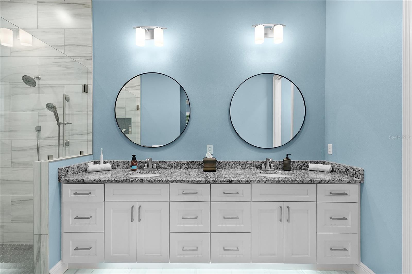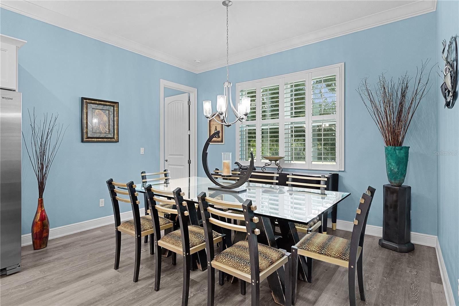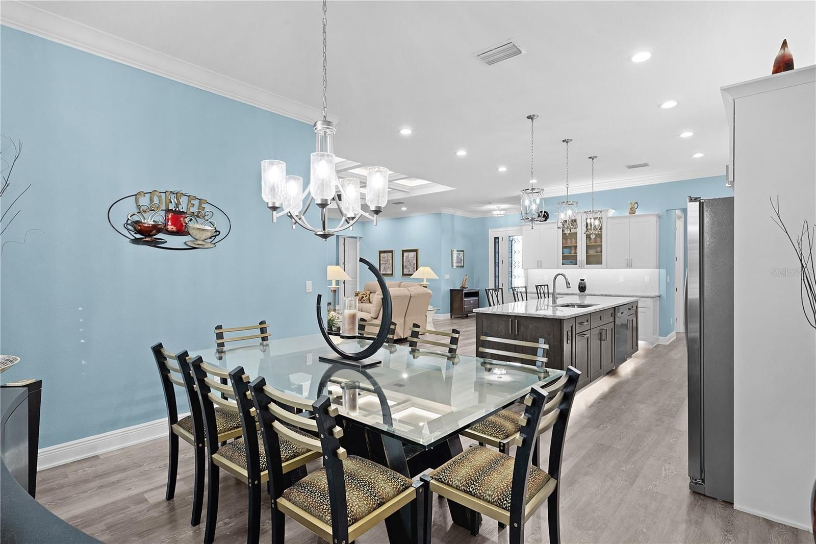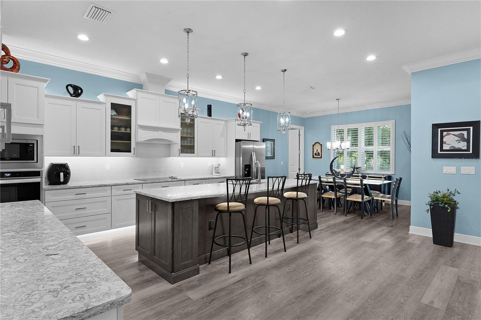 - Coffered Ceiling(s), Crown Molding, Eat-in Kitchen, High Ceilings, Kitchen/Family Room Combo, Open Floorplan, Stone Counters, Thermostat, Tray Ceiling(s), Walk-In Closet(s), Window Treatments