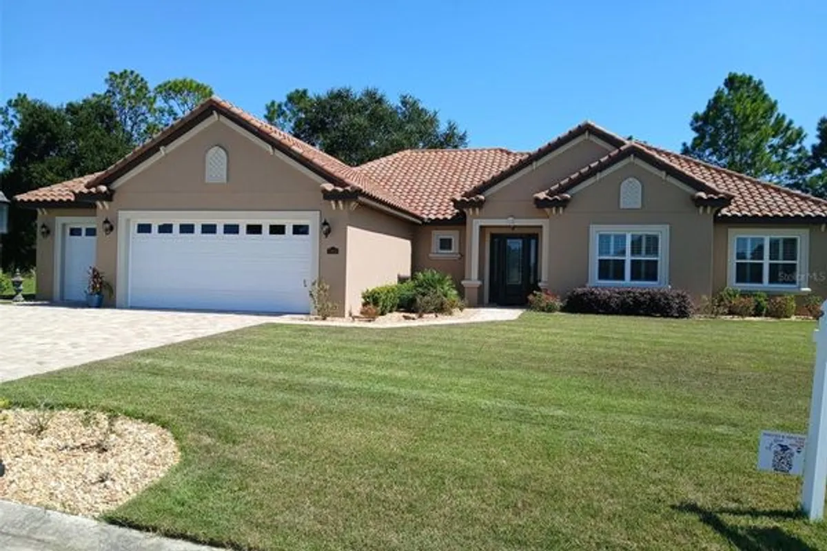 **GOLF FRONTAGE CUSTOM HOME** Welcome to the Gated Community of Juliette Falls. The Stunning 2023 Designer “Deluxe Ruby” home, built by Crouch Homes LLC is located on the 1st FAIRWAY. This beautiful home features 4 bedrooms and 2.5 bathrooms, 3-Car Garage spanning 2,392 square feet, Golfer Enthusiast will want this VIEW OF THE GOLF COURSE, enjoy a cup of coffee or a glass of wine while enjoying the golfers at the first green. The 15x18 COVERED LANAI and the Designer PAVER PATIO full length of rear of home are great places to entertain. Upon entering the home, you will be captivated by the airy OPEN FLOORPLAN, PLANTATION SHUTTERS, highlighted by a spacious 20' x 22' Living room adorned with impressive 10-foot COFFERED CEILINGS featuring track Lighting. The Kitchen boasts custom Cabinetry with Soft-Close doors, Under-Cabinet Lighting with under-Crown Molding, QUARTZ Countertops, a stylish TILE Backsplash, STAINLESS STEEL Appliances, a BUILT IN OVEN and Microwave, a cozy coffee bar, and a well-appointed dining room. The Primary Suite, measuring 19' x 15', offers TRAY CEILING, DUAL WALK IN CLOSETS, En-Suite Bathroom with DUAL VANITIES with under-cabinet lighting, GRANTITE COUNTER, a luxurious TILED WALK-IN SHOWER. and Private Water Closet. The Guest bedrooms provide generous proportions and sufficient closet space. The Guest Bathroom also includes Custom Cabinets with under-cabinet lighting, GRANITE Countertops, and TILED WALK-ON SHOWER. For added convenience, the Laundry Room measures 10' x 14' and includes a built-in sink and extra counter space for laundry organization and added PANTRY STORAGE. The half bathroom features Custom Cabinetry with under-cabinet lighting and GRANITE counters. No home would be complete without a PAVER DRIVEWAY with a 3-CAR GARAGE, which showcases beautiful EPOXY Floors, ELECTRIC CAR CHARGER and ample space for vehicles and recreational equipment. The Attic is equipped with Pull-Down Stairs and is fully decked for additional storage. This home is loaded with upgrades, including LAMINATE FLOORING throughout the main living areas, 6" CROWN MOLDING, an upgraded front door, recessed LED Lighting, and 8-foot tall Interior Doors. The local Pro-Shop has golf apparel, golf clubs, golf balls, shoes, bags, and golf-themed gift items. Juliette Falls Bar & Restaurant has wide variety of delicious options daily and 1st Friday Evenings. Stop at the Driving Range and visit the Blue Bar, also known as the "19th hole" after your round and cool off with for an ice cold beer! Juliette Falls is Located just 15 miles from Ocala and the renowned World Equestrian Center, you can discover the charm of Dunnellon—a town rich in history, culture, and natural beauty. Experience the breathtaking scenery of Rainbow Springs State Park, where you can float down the world-famous Rainbow River. Golfer Enthusiast Dream Location.