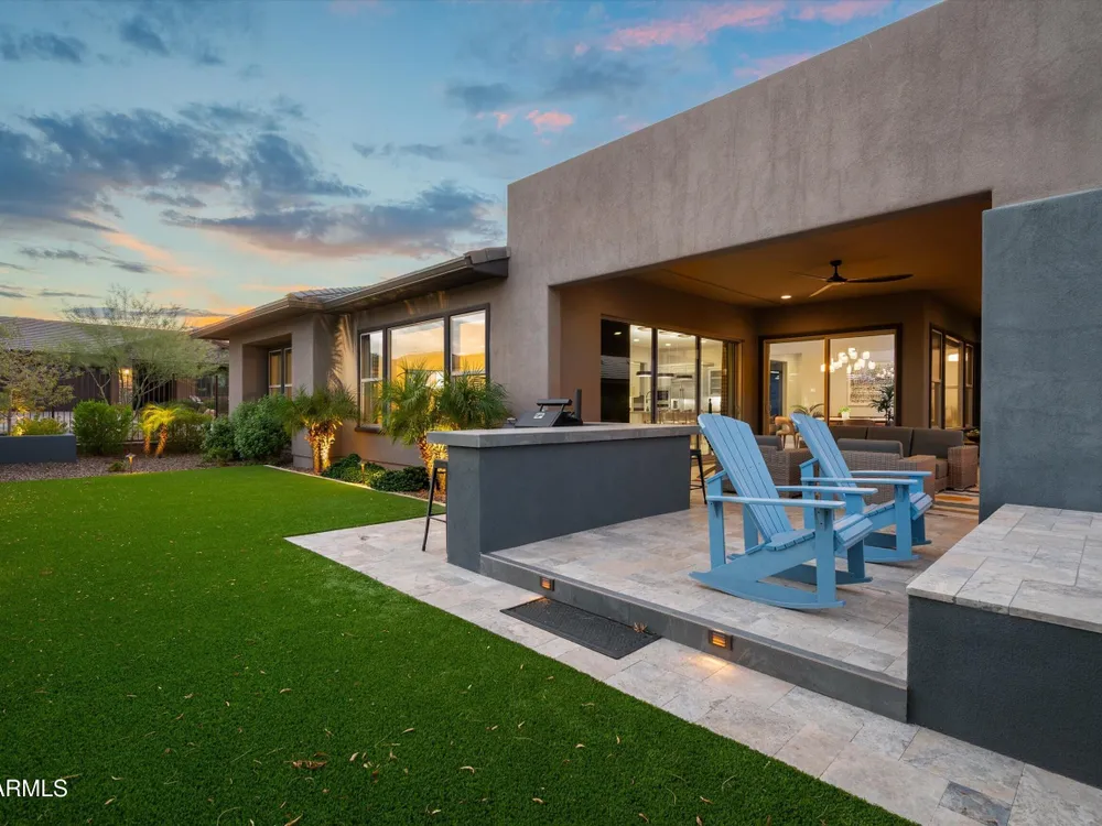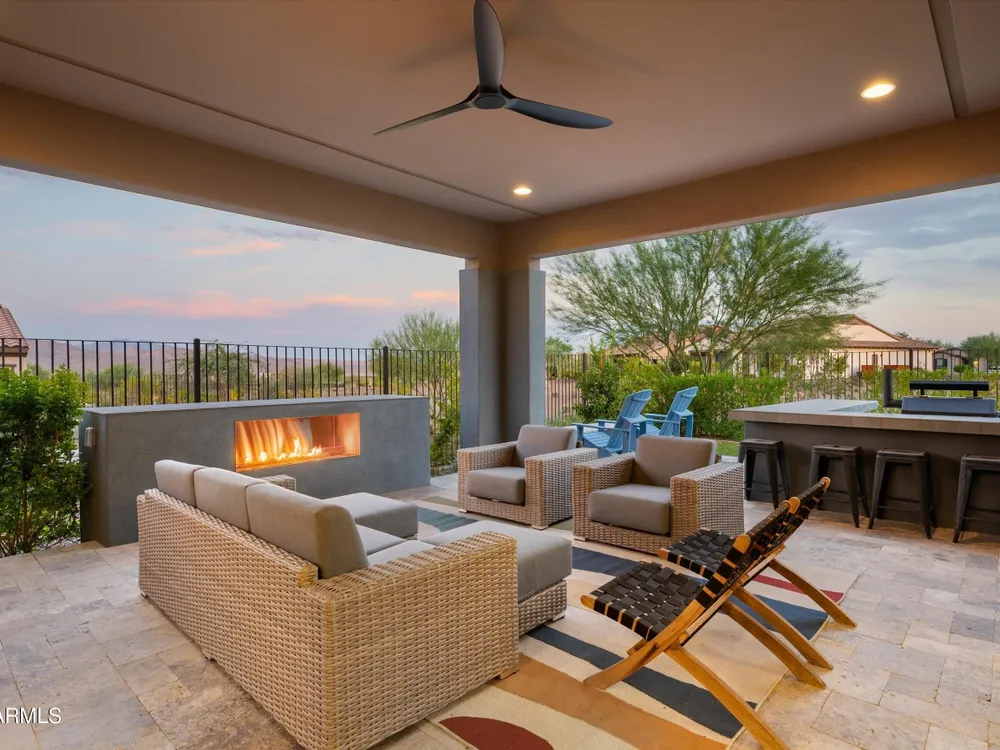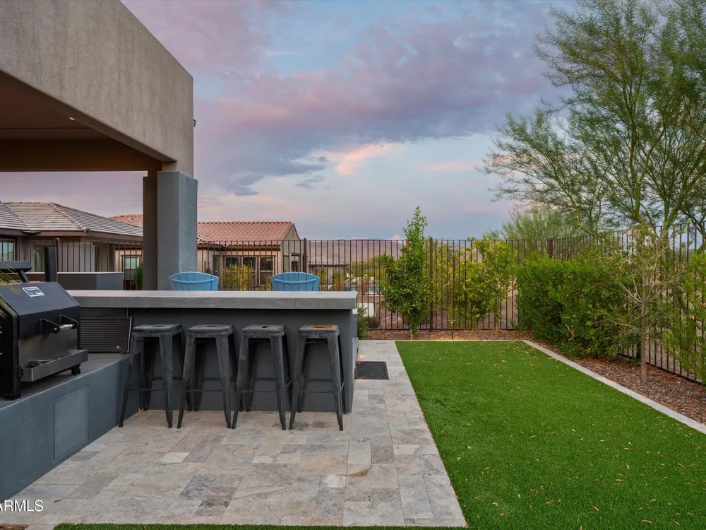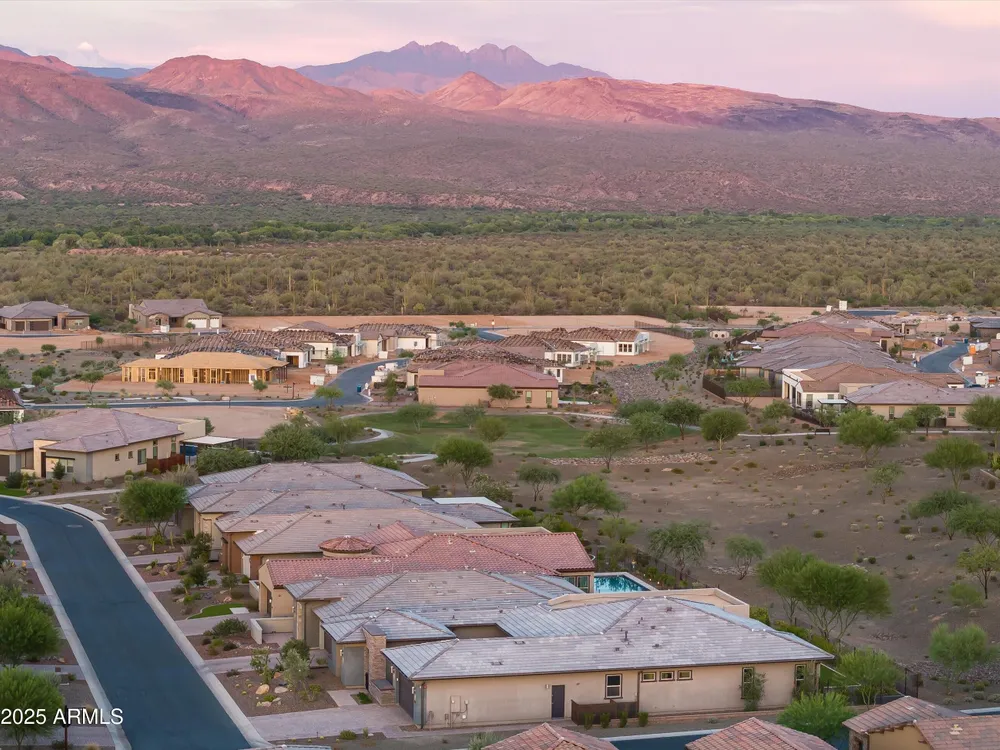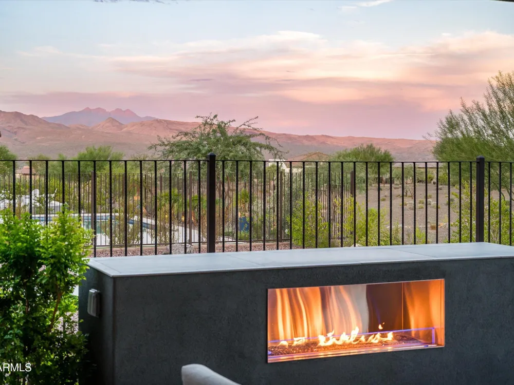 ENJOY SPECTACULAR FOUR PEAKS VIEWS IN THIS CONTEMPORARY LATIGO FLOOR PLAN AT TRILOGY VR GOLF RESORT. The home is tastefully outfitted with modern finishes and includes over $175k in 3rd party upgrades. Primary Suite includes 2 custom walk-in closets and gorgeous oversized shower. Home includes a guest ensuite bedroom, a separate ensuite casita for added privacy and a dedicated office/study. The kitchen is a chef's delight with ample counter space, upgraded appliances and a mountain view. Spend your evenings enjoying the large covered patio with an upgraded custom outdoor gas fireplace with LED lighting overlooking the Tonto National Forest. Home features a 3 car garage with a plug in for an EV and a smart space laundry room with plenty of storage. This home was built for entertaining!