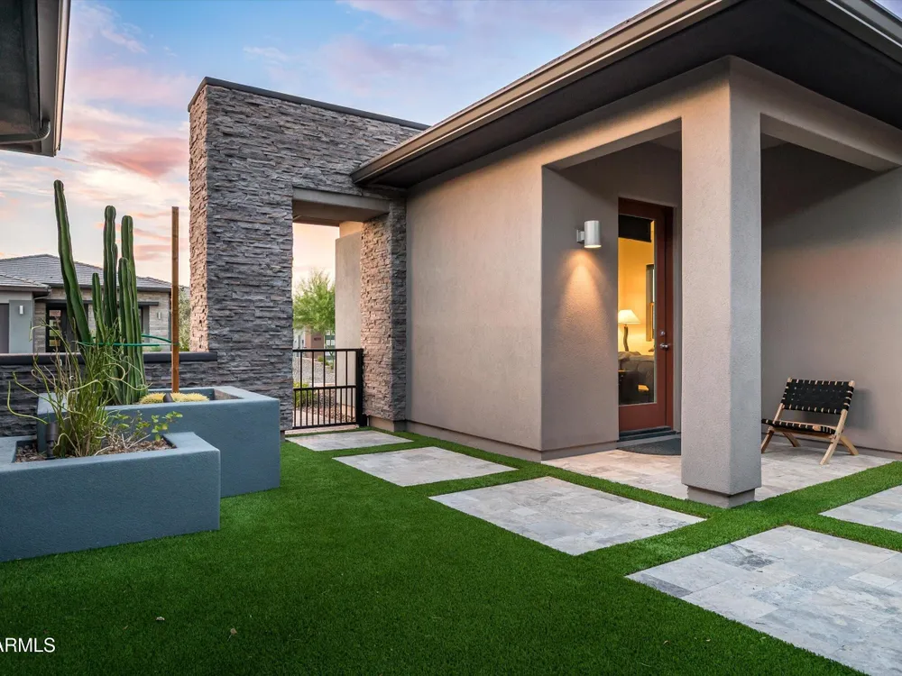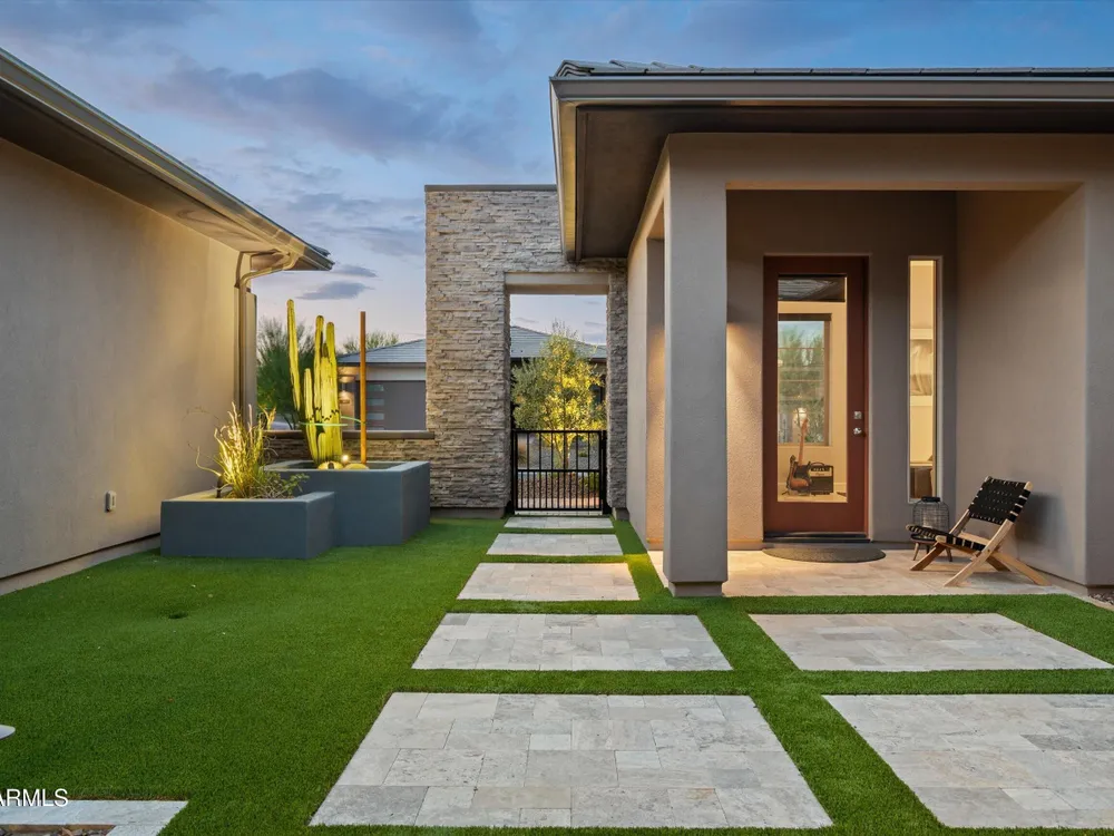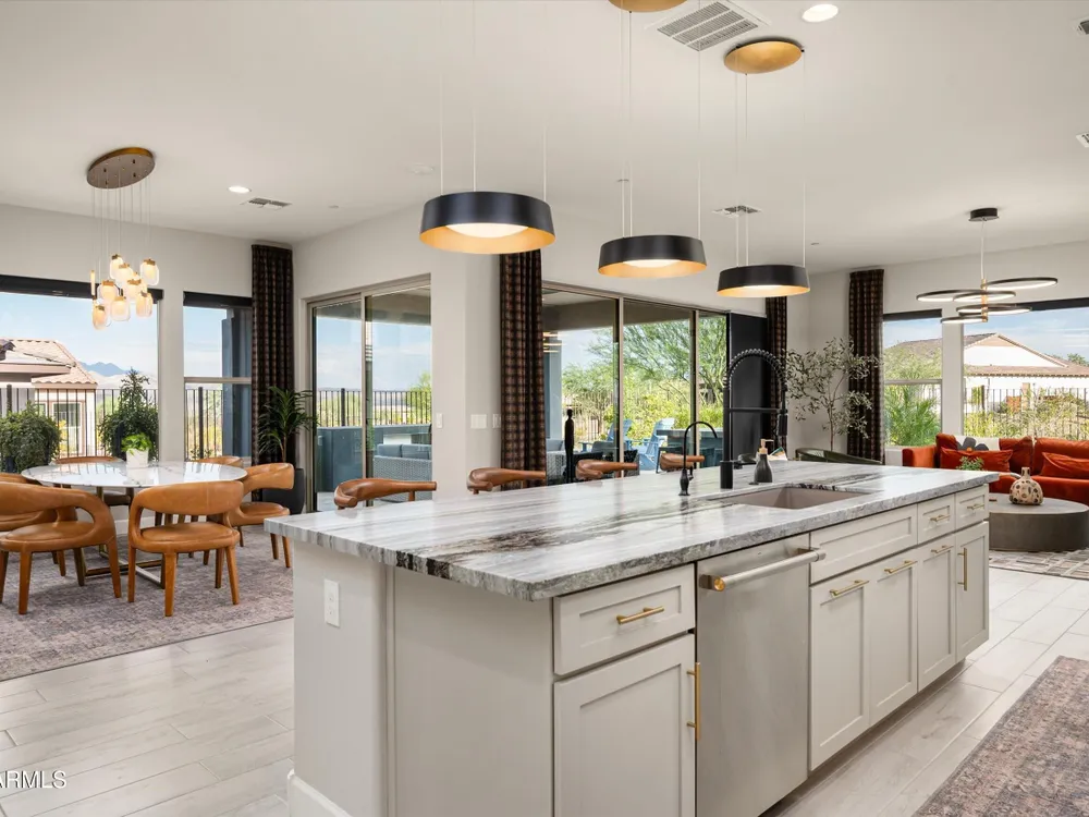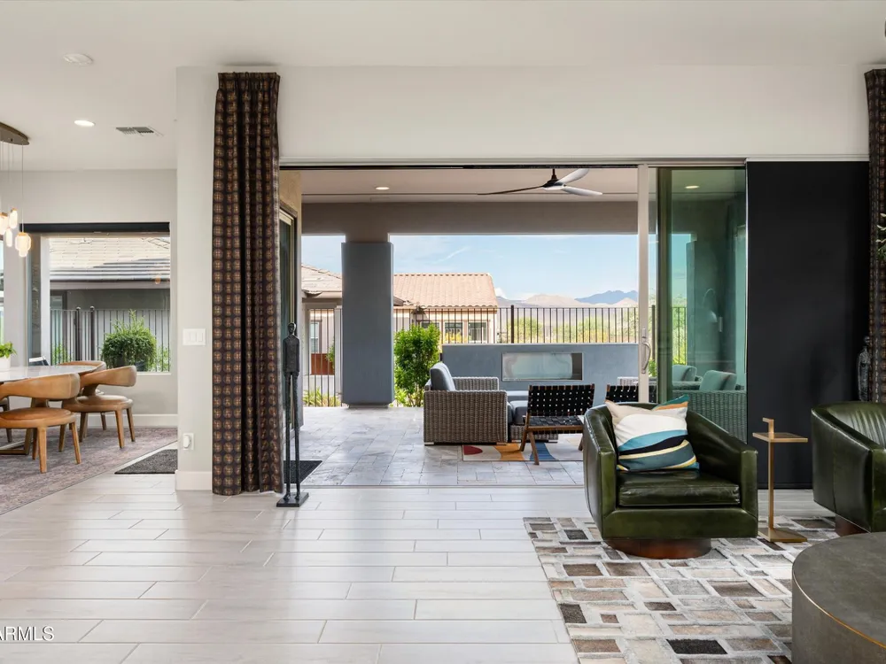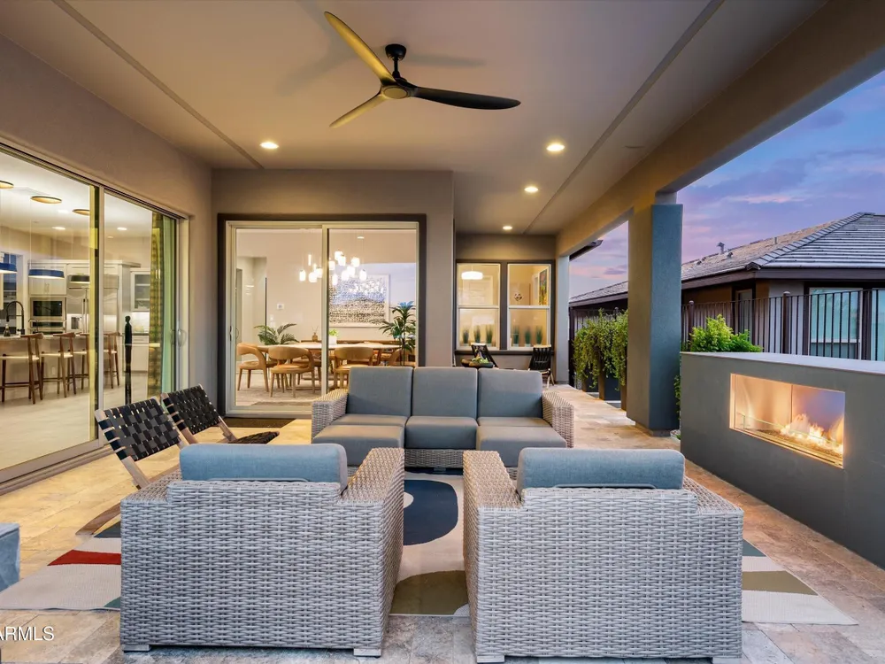 ENJOY SPECTACULAR FOUR PEAKS VIEWS IN THIS CONTEMPORARY LATIGO FLOOR PLAN AT TRILOGY VR GOLF RESORT. The home is tastefully outfitted with modern finishes and includes over $175k in 3rd party upgrades. Primary Suite includes 2 custom walk-in closets and gorgeous oversized shower. Home includes a guest ensuite bedroom, a separate ensuite casita for added privacy and a dedicated office/study. The kitchen is a chef's delight with ample counter space, upgraded appliances and a mountain view. Spend your evenings enjoying the large covered patio with an upgraded custom outdoor gas fireplace with LED lighting overlooking the Tonto National Forest. Home features a 3 car garage with a plug in for an EV and a smart space laundry room with plenty of storage. This home was built for entertaining!
