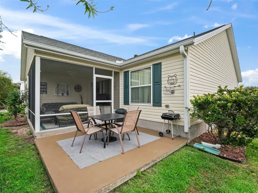 Welcome to this EXPANDED DESIGNER WILLOW! Located in the highly desired VILLAGE of PIEDMONT; This home features 3 bedrooms (one without a closet) 2 baths and an EXPANDED 2 CAR GARAGE 25'L X 20'W enough room for 2 golf carts and 2 cars. WOW! This home has been well-maintained; Roof is 2021 A/C 2018 Bond Paid! As you walk up to the front you will notice a front paver patio great for anytime. As you walk in you will love that this home is light & bright and has VAULTED CEILINGS in the main living area & tile throughout the house. The kitchen painted cabinets with pull-out shelves, a pantry cabinet, and natural gas hookup behind the stove. The living room is very spacious with vaulted ceiling and a solar tube for added natural lighting. The master ensuite has been expanded with a private sitting area or a den/office right off your bedroom, also walk in closet. The ensuite bathroom features dual sinks, walk-in shower and a linen closet, and just off the master suite is the laundry room with a washer & dyer, with access to the expanded two car garage, also pull-down attic. The home features a split floor plan with the guest bedrooms on the other side of the home and features spacious size guest bedroom with a closet, the guest bathroom has a spa/tub shower. The third bedroom has no closet but has been expanded to use as a private office or a den, or you could add a closet. Off the living room there are sliders that lead to a screened in Lania and has an extra added patio for your grill. This home has lots of great features come to check them out for yourself. Excellent storage with three linen closets. just minutes from championship golf courses: Nancy Lopez Legacy and Glenview, as well as four Executive golf courses. Conveniently close to the Mulberry Regional Recreation Center, First Responders Recreation Center, and Calumet’s adult-only pool. You are close to shopping, restaurants, and squares with nightly live entertainment. The VA hospital & UF Health - The Villages Hospital, are less than a 10-minute drive away, as well as many surrounding medical offices. The Villages monthly amenity fee provides residents access to over 40 executive golf courses to play on, over 100 pools to enjoy, Rec centers throughout and over 3,000 clubs/activities to partake in! Come Retire to Sunshine in The Villages, FL!! Call for your private showing