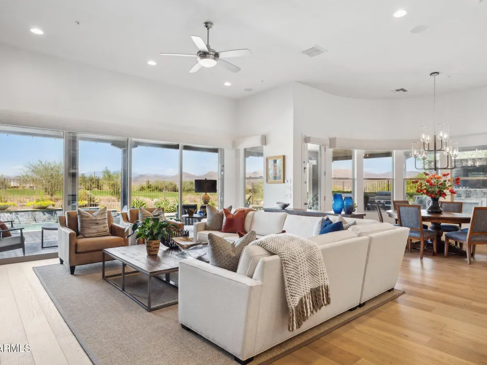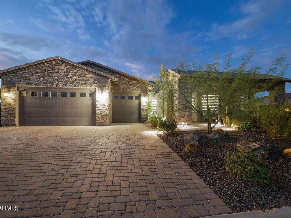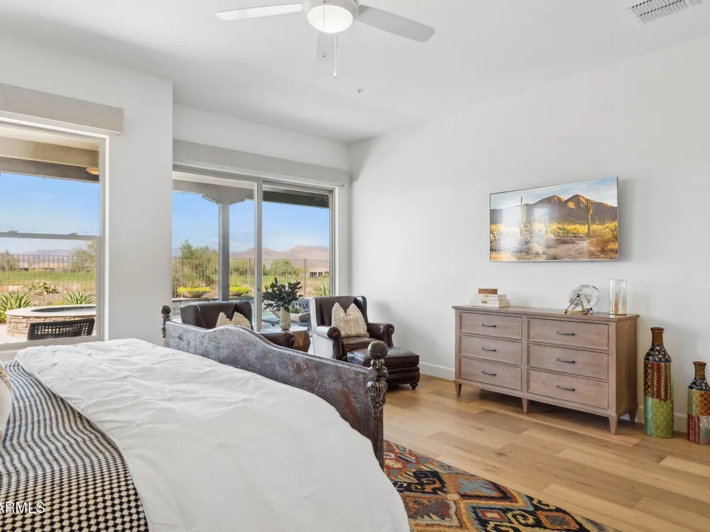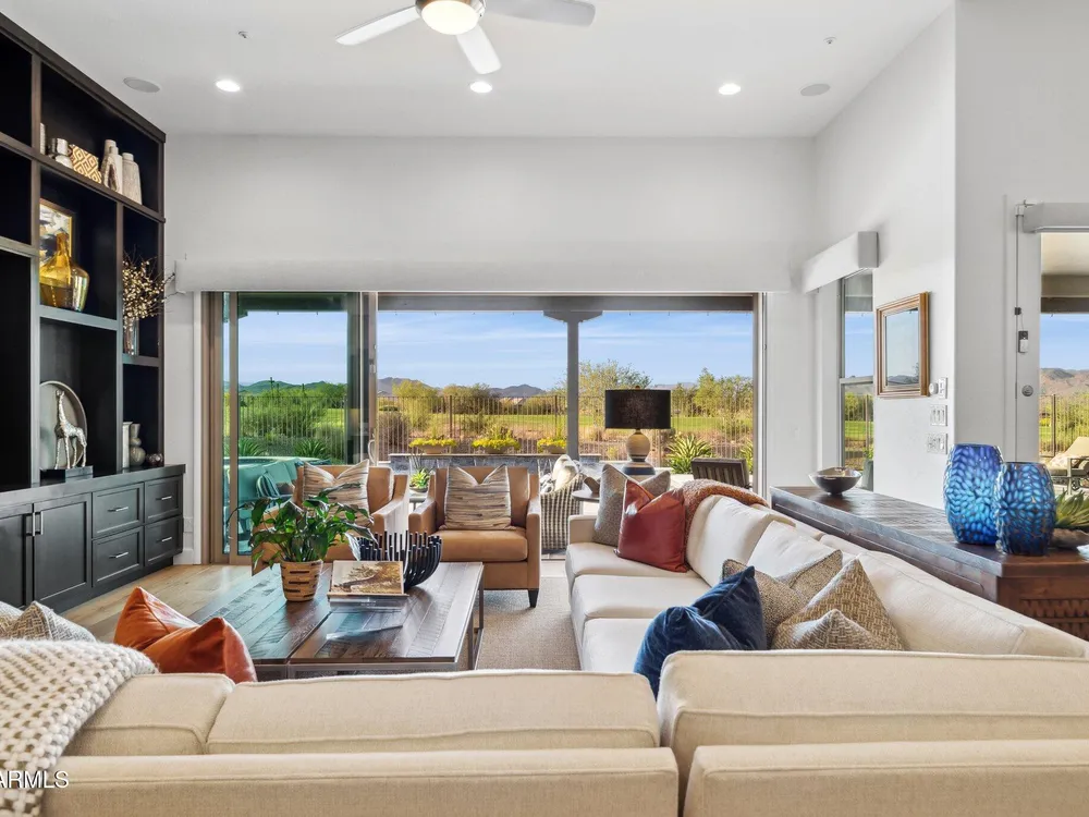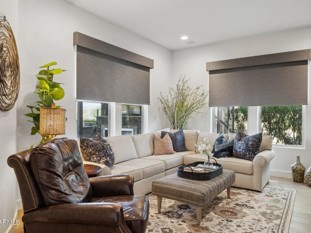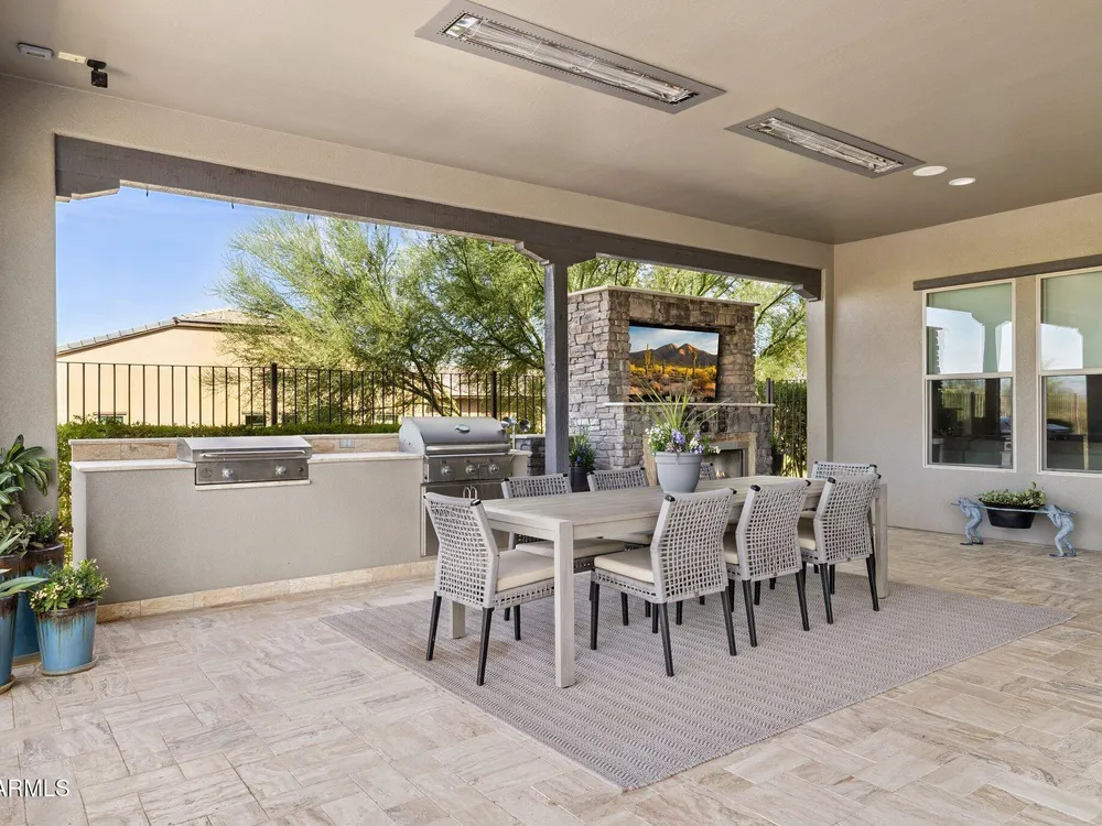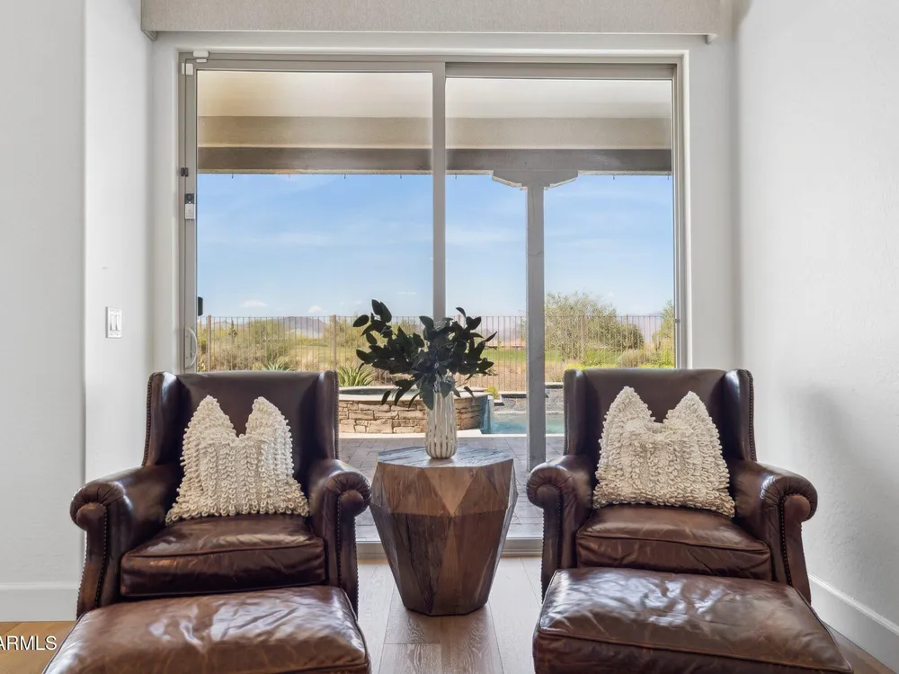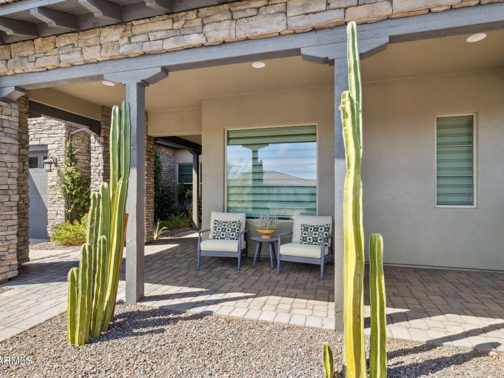 Stunning Golf Course Home with Mountain Views in Trilogy at Verde River! Located on the 16th fairway, this beautifully upgraded 3-bedroom, 3.5-bathroom home features an office, a bonus media room, and a spacious 3-car garage. Enjoy unobstructed Mazatzal Mountain views and breathtaking sunsets from your private resort-style backyard, complete with a pool, spa, built-in fireplace, and BBQ under a generous covered patio—perfect for outdoor entertaining. Inside, you'll find new wood flooring, quartzite kitchen countertops, designer window treatments, custom light fixtures, and an under-counter wine fridge. The primary suite offers a custom closet system and spa-like bathroom, while the great room, office, and media room showcase elegant custom cabinetry. The laundry room is thoughtfully designed with extra pantry space, cabinetry, and drying racks. The epoxy-coated garage includes built-in storage. Located in the prestigious, guard-gated Trilogy at Verde River, a premier resort community with golf, tennis, pickleball, pools, fitness center, spa, fine dining, and more.
