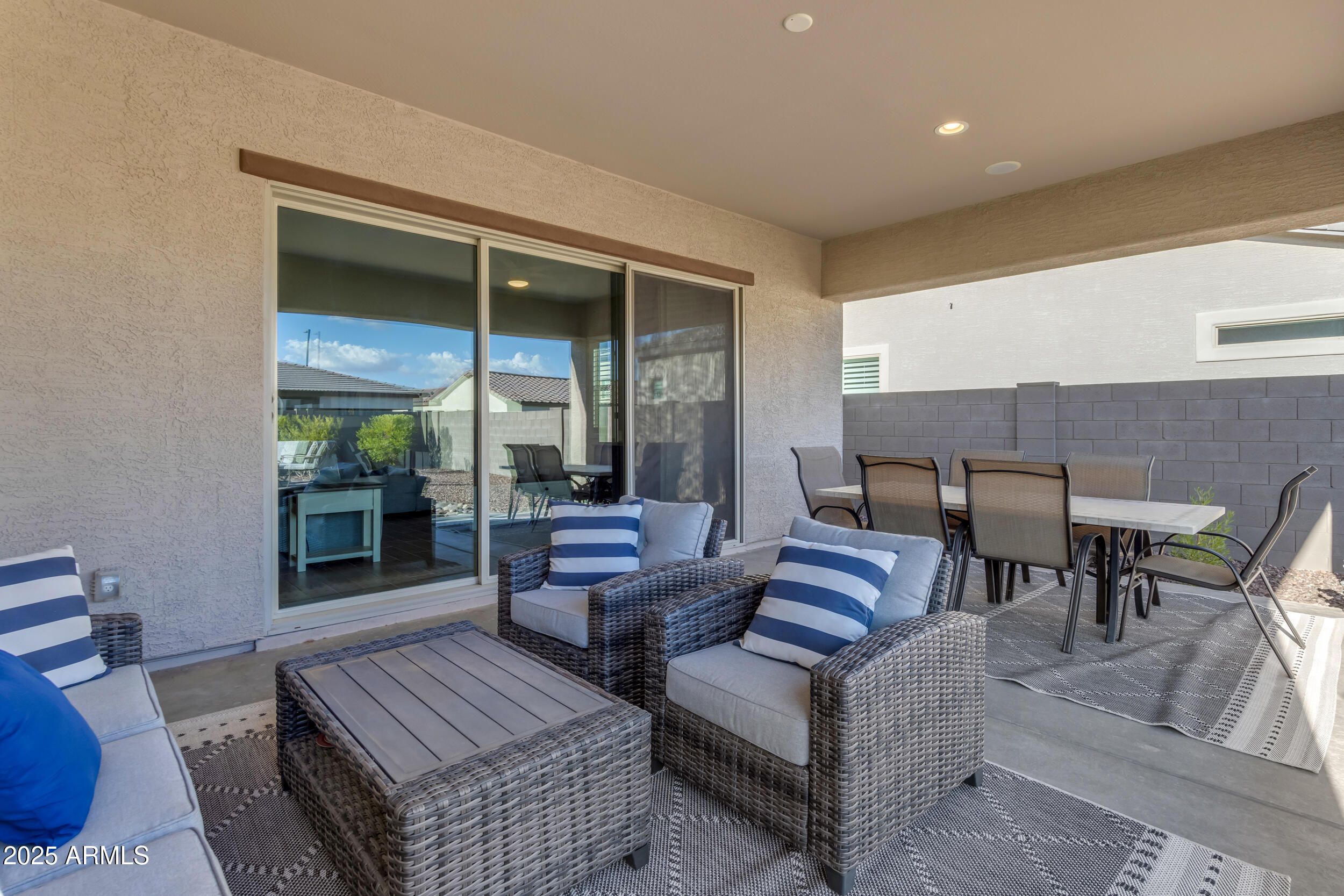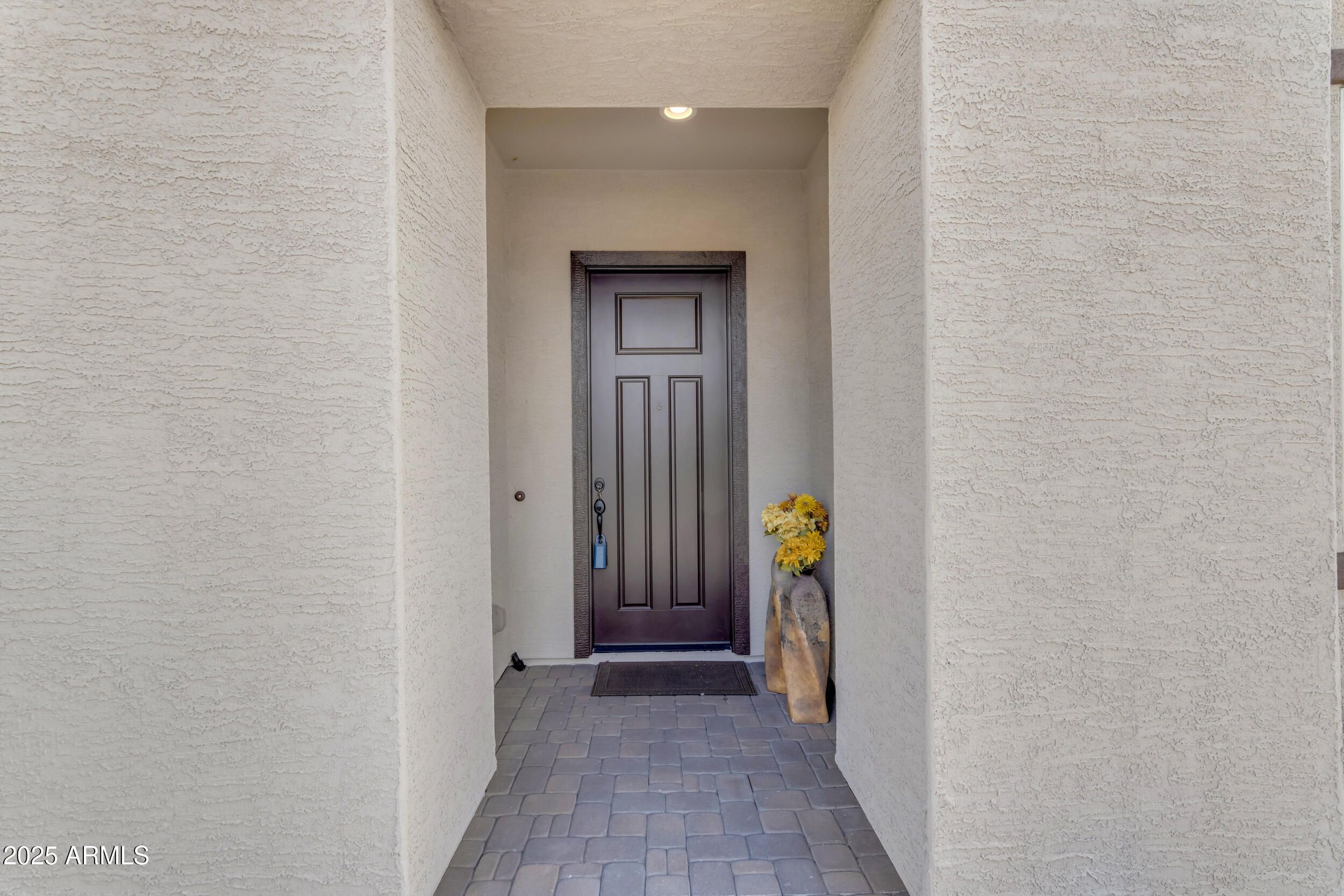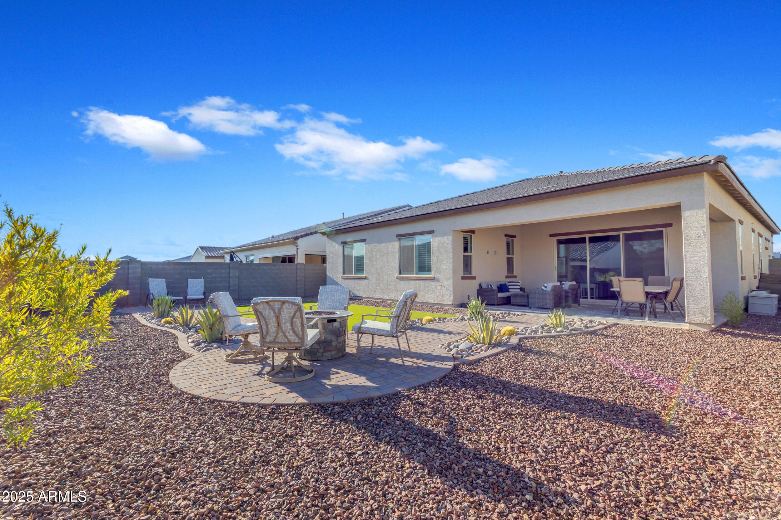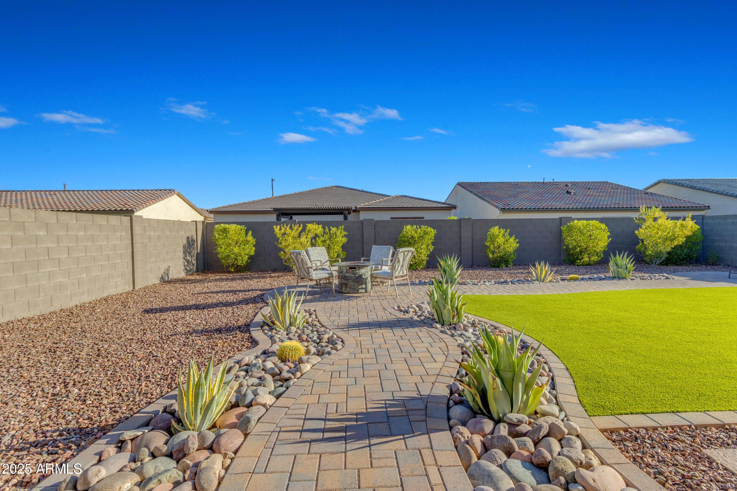 Located in the active adult community of Cantamia at Estrella, this well-kept home offers a smart layout with upgrades where they count. The kitchen features granite countertops, stainless steel appliances, and a large Island and it is all open right into the great room—ideal for everyday living or entertaining. The main areas have durable wood-look tile, with soft carpet in the bedrooms for comfort. The primary suite includes dual sinks, a walk-in shower, and a spacious closet. Out back, you've got an easy-care yard with a covered patio **Living in Cantamia means access to indoor and outdoor pools, pickleball, gym, art rooms, and plenty of activities built into the community lifestyle. The Pride of homeownership shows very well! Turn key opportunity!