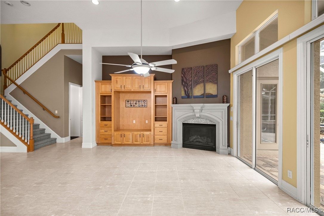 - Attic Access, Breakfast Bar, Tray Ceiling(s), Eat-in Kitchen, Fireplace, High Ceilings, Open Floorplan, Pantry, Pull Down Attic Stairs, Stone Counters, Split Bedrooms, Updated Kitchen, Vaulted Ceiling(s), Walk-In Closet(s), WoodCabinets, Window Treatments, First Floor Entry, Programmable Thermostat, Sliding Glass Door(s)