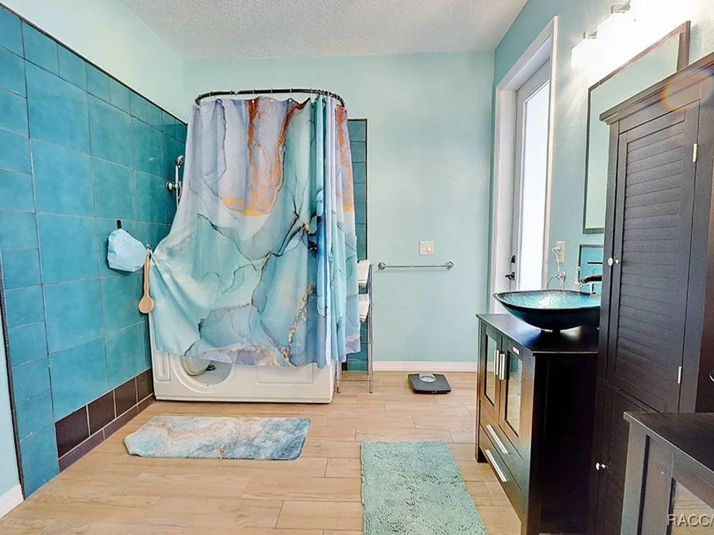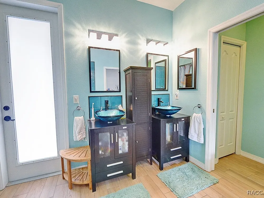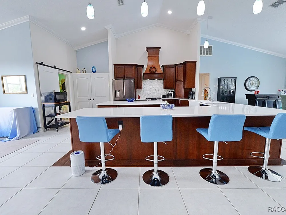 - Breakfast Bar, Bidet, Tray Ceiling(s), Dual Sinks, Handicap Access, High Ceilings, Primary Suite, Open Floorplan, Pantry, Split Bedrooms, Solid Surface Counters, Tub Shower, Updated Kitchen, Vaulted Ceiling(s), Walk-In Closet(s), WoodCabinets, Window Treatments, First Floor Entry, Sliding Glass Door(s)
