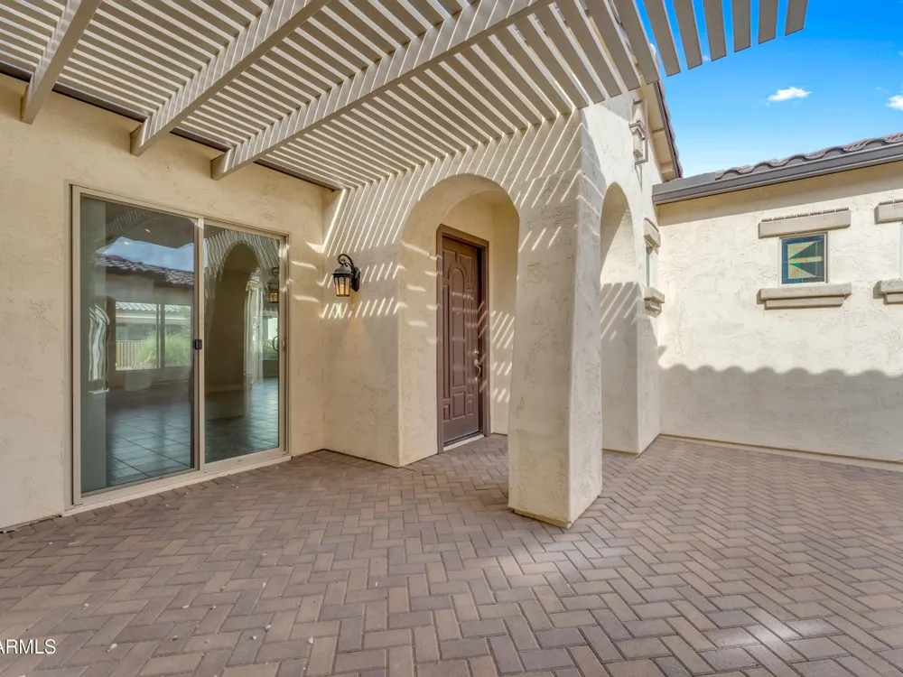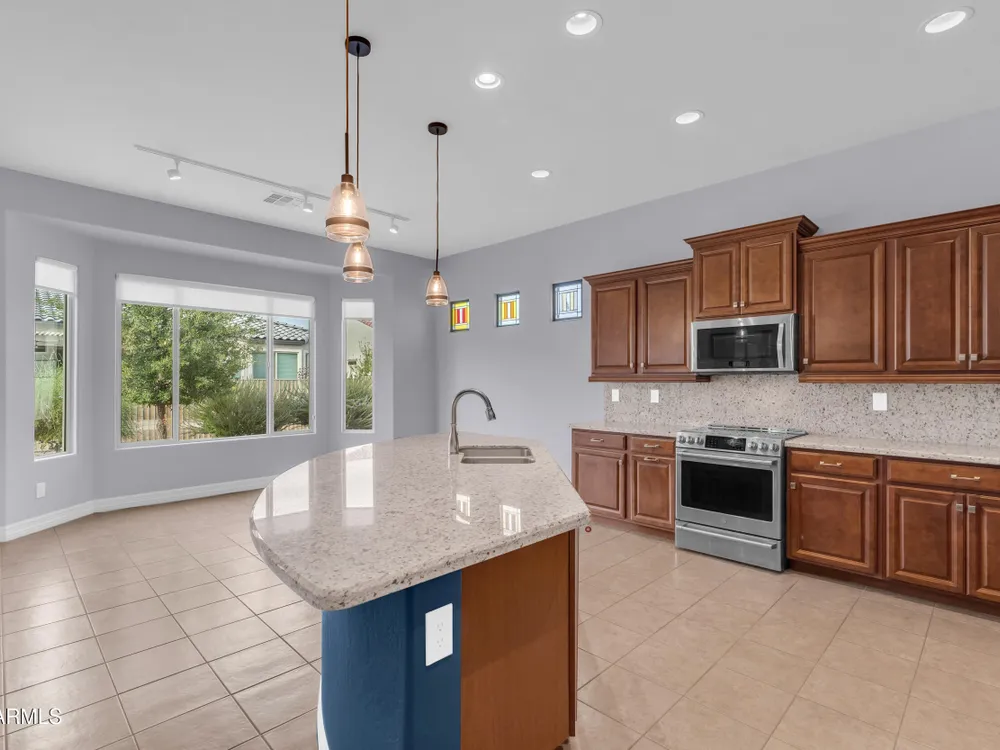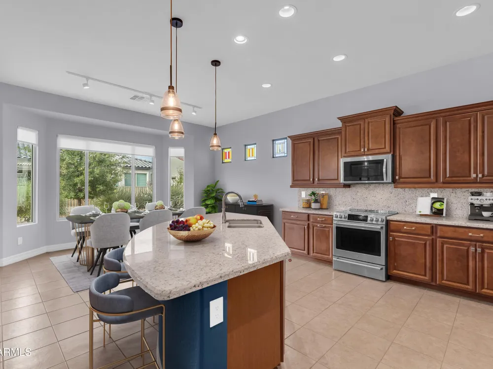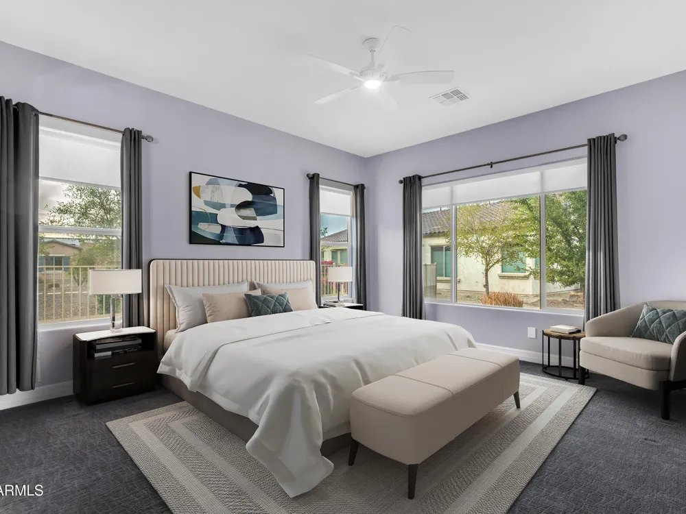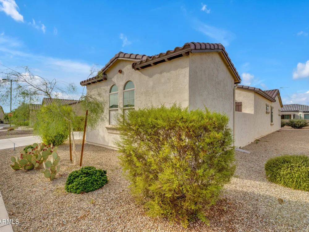Beautiful 2-bed, 2-bath home with den located in the gated 55+ CantaMia at Estrella community. This single-level floor plan offers nearly 1,900 sq ft of open living with a private pavered courtyard and pergola-covered patio. The kitchen features granite counters, large island, induction cooktop, and stainless appliances, opening to a spacious great room with plenty of natural light. The primary suite includes dual sinks, walk-in shower, soaking tub, and walk-in closet. Upgrades include an oversized laundry room, Bosch high-efficiency heat pump (2022), and a rare extended 3-car garage. Low-maintenance desert landscaping front and back with block fencing and water timers. Enjoy resort-style amenities including lakes, pools, spa, fitness center, clubhouse, walking paths, and mountain views. * GATED community* *More upgrades include hardware, light fixtures, MURPHY bed in BDRM 2, 2 dishwashers for entertainers, 6' baseboards Throughout (loos fantastic!), upgraded blinds, wine fridge, main garage has 18 FT Width garage door (not 16FT like others), Precision chiefs kitchen stove top WIFI compatible, Soft water system &.... Energy efficient 5 ton heat pump with variable speed for your HVAC needs (SAVE $$$ on energy bills). Low maintenance landscaping. Absolute Pride of homeownership shows on this lovely home! CantaMia is a 55+ active adult community located within the Master-Planned Community of Estrella which is nestled in the beautiful Sonoran Desert. Residents of CantaMia can enjoy some of Estrella's amenities, such as the North and South Lakes, The Yacht Club, numerous parks, hiking/biking trails, restaurants located in the Residents' Clubs, resident golf rates, community activities, and events. CantaMia residents have the option to gain full access to all of Estrella's amenities for an additional annual fee. Located within Estrella is the Estrella Ranch Marketplace, providing grocery, drug, medical, dining, retail, and service space. The Estrella Community is a resort-inspired lifestyle surrounded by majestic mountains offering something for all ages.