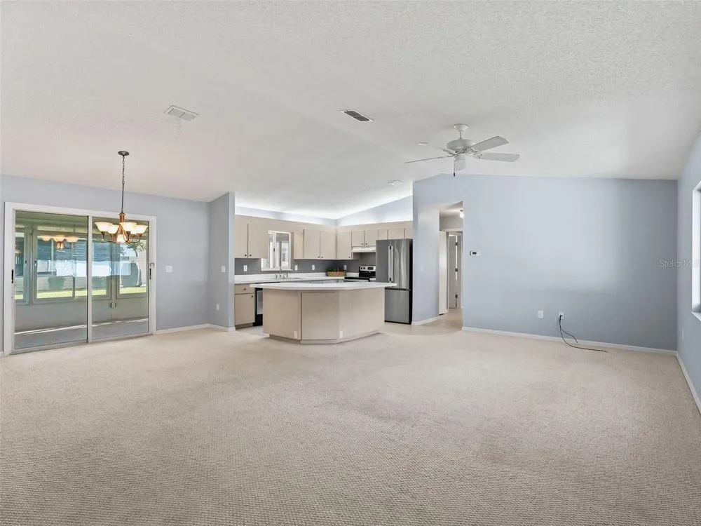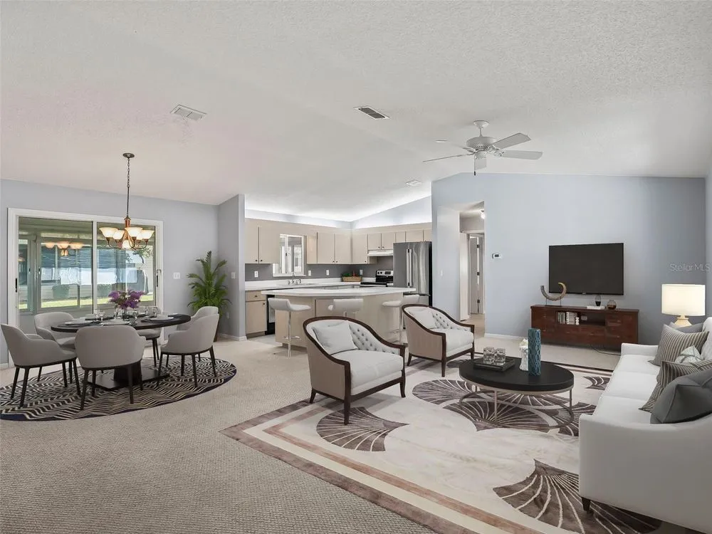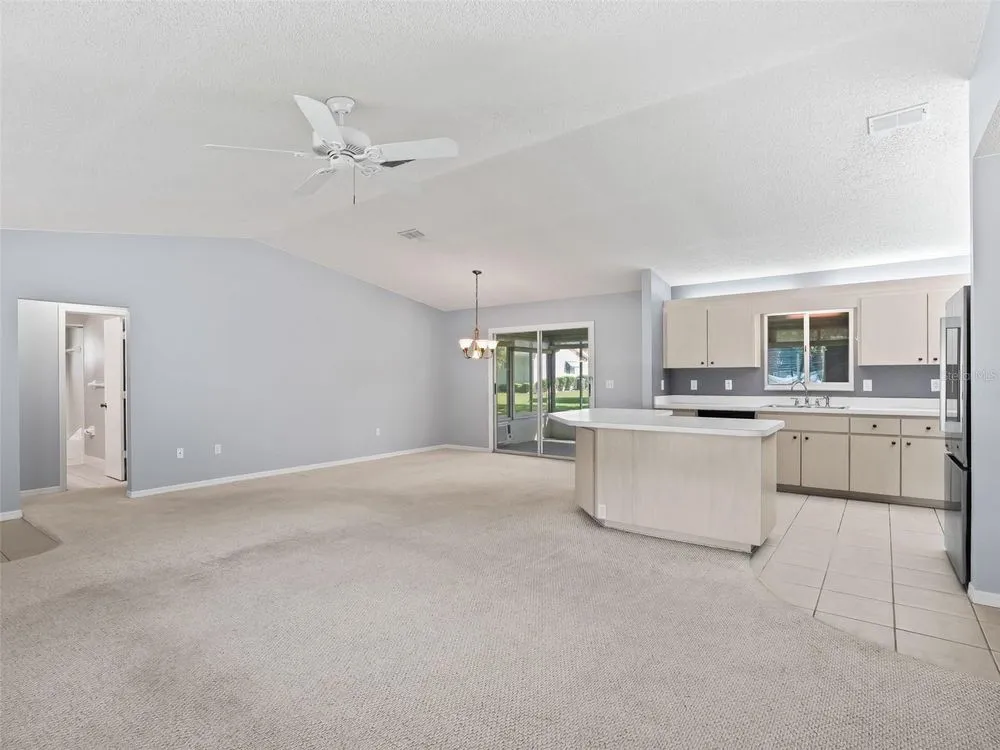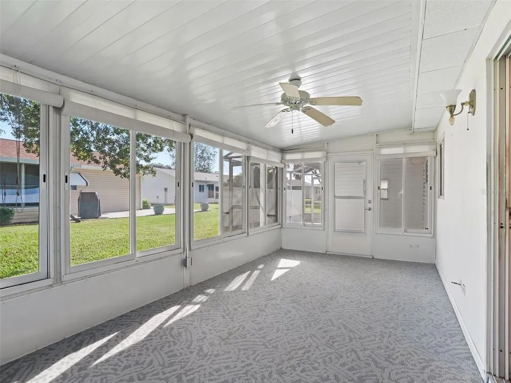 One or more photo(s) has been virtually staged. Welcome to Spruce Creek South, a 55+ gated Golf Community in a prime location offering the perfect blend of comfort, convenience, and life style close to The Villages, restaurant's, medical, and shopping. Spruce Creek South offers numerous clubs, social events, pool, and fitness area just to name a few. Whether you are looking for a full-time residence or a seasonal retreat, this charming Holly model is slightly larger than most Holly plans. Split 3 bedroom 2 bath provides the ideal space for guest, home office or hobby room. Spacious open concept floor plan with a Cathedral ceiling, an indoor laundry room, and two car garage. The primary suite includes a walk in closet and private en-suite bathroom. Enjoy relaxing on your lanai or sitting out on the screened bird cage. Home has an added storage area that is connected to the bird cage. Roof 2023, HVAC 2015, Clothes dryer 2023, indoor/outdoor carpet on the lanai 2025. Schedule your private tour today!