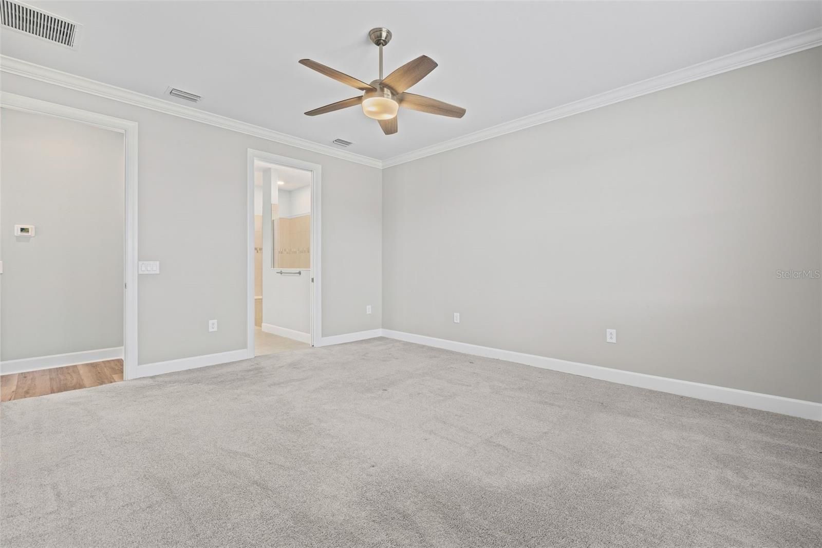 - Ceiling Fan(s), Crown Molding, High Ceilings, In-Wall Pest Control, Open Floorplan, Stone Counters, Thermostat, Window Treatments