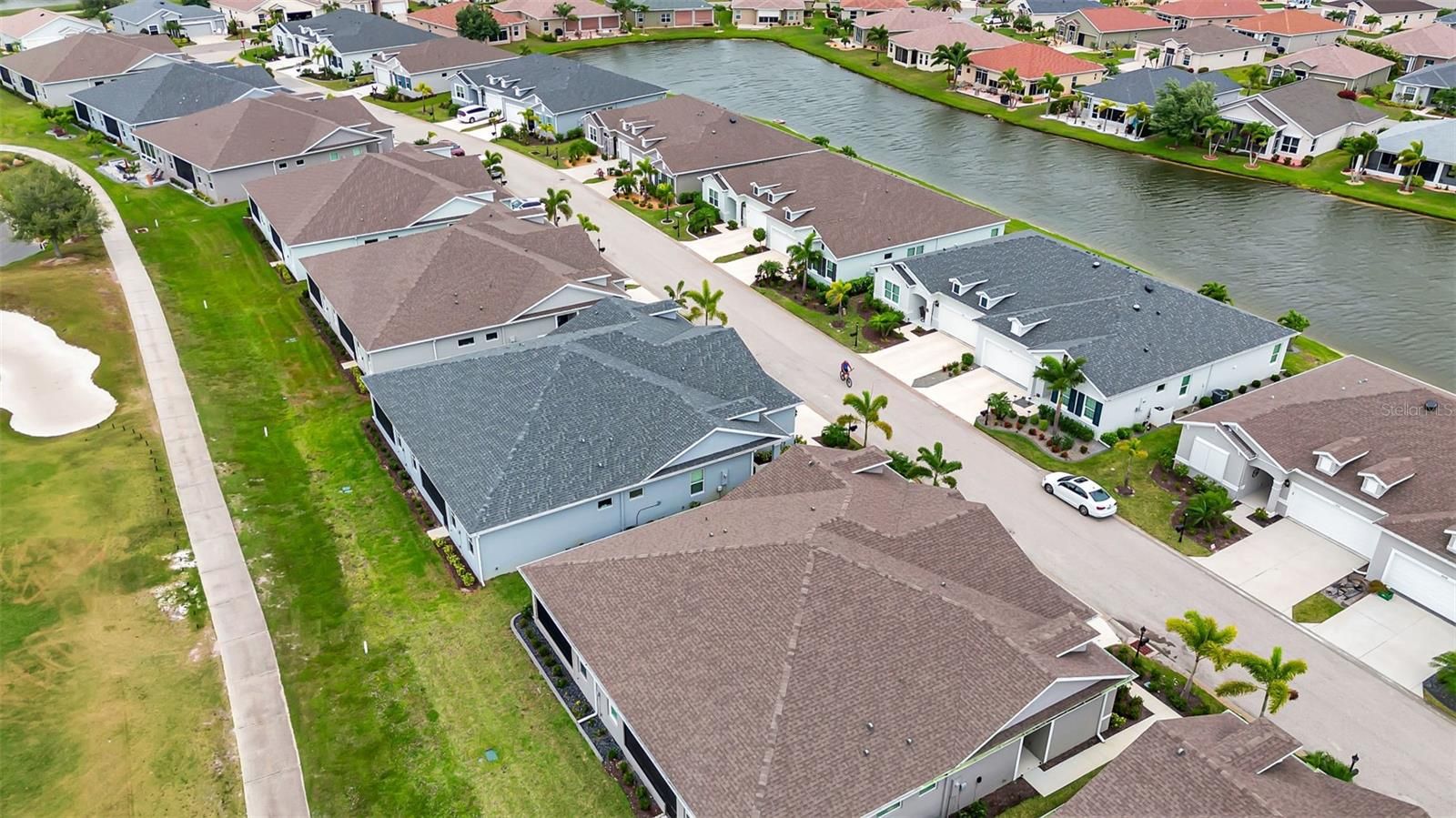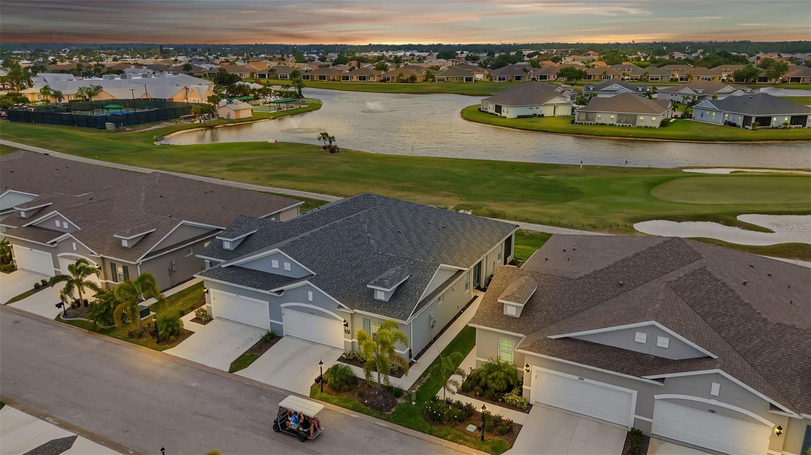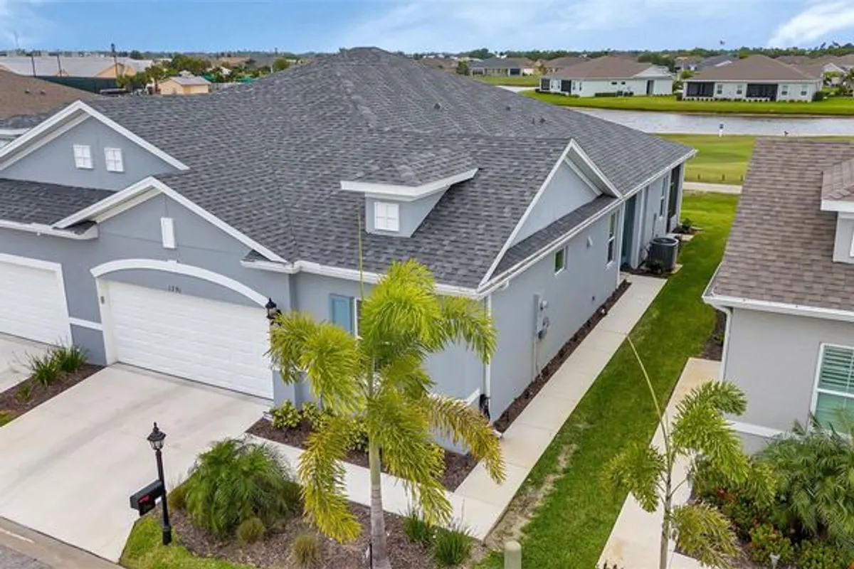 BEAUTIFUL 10th Hole Golf Course & Water Views AWAIT from this 2023 Built NEW VILLA with tons of upgrades at 55+ Kings Gate Community! Inside, find large format tile throughout, plantation shutters, quartz countertops, real wood cabinets, upgraded light fixtures, upgraded pulls, a screened lanai, and more! This VENETIAN FLOOR PLAN boasts 1660 square feet, the largest floor plan by Neal Communities, and is thoughtfully arranged with great spaces and natural light. Inside the front door, enjoy a spacious living room with sliding glass doors to the lanai to watch the golfers or the ducks in the pond. This room is open to the dinette and large eat-in kitchen with beautiful finishes! Off the back side of the kitchen, find a conveniently located guest bathroom with lovely appointments, also nearby to the guest bedroom with great storage and natural light. Also off the kitchen enjoy a MASSIVE laundry room with sink/extra cabinets and also access to the 2 car garage with extra storage. Back off the living room, find the primary suite tucked away privately, with a large bedroom, walk in closets, and an en-suite bathroom with stone counters, dual vanities, a private toilet room and a large walk-in shower with glass surround. This villa is close to all things Kings Gate, including the amenities center, restaurant, golf, billiards, exercise rooms, pool, spa, all with a full-time activities director and more! With 24-hour gated security and the ability to ride your golf cart in the neighborhood and to nearby shops and restaurants, it is an ideal location! Additionally, this community is convenient to all things Port Charlotte and Punta Gorda for fishing, shopping, hospitals, golf, and more. It is nearby to I-75 and the PGD airport for easy travel access. Schedule your showing today! BE SURE TO CLICK THE FULL VIRTUAL TOUR LINKS FOR DETAILS