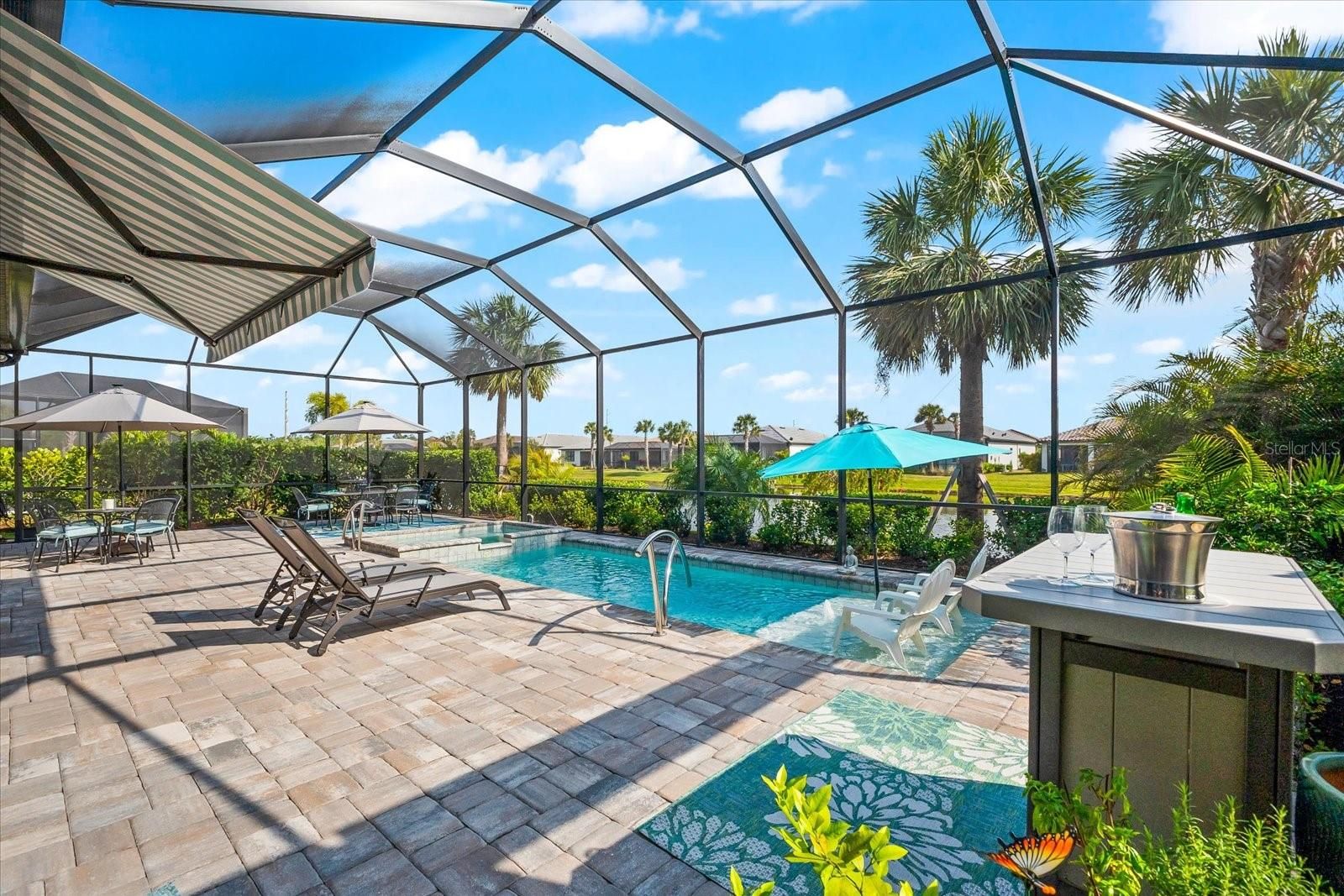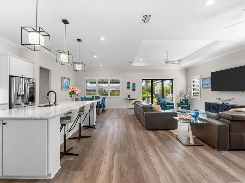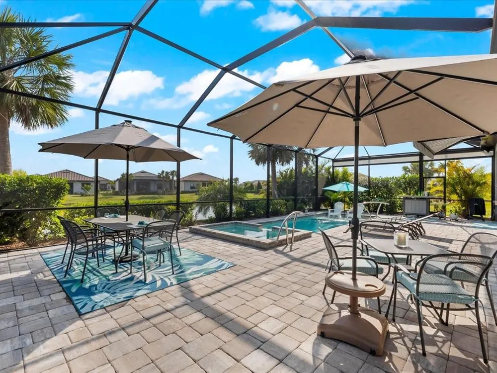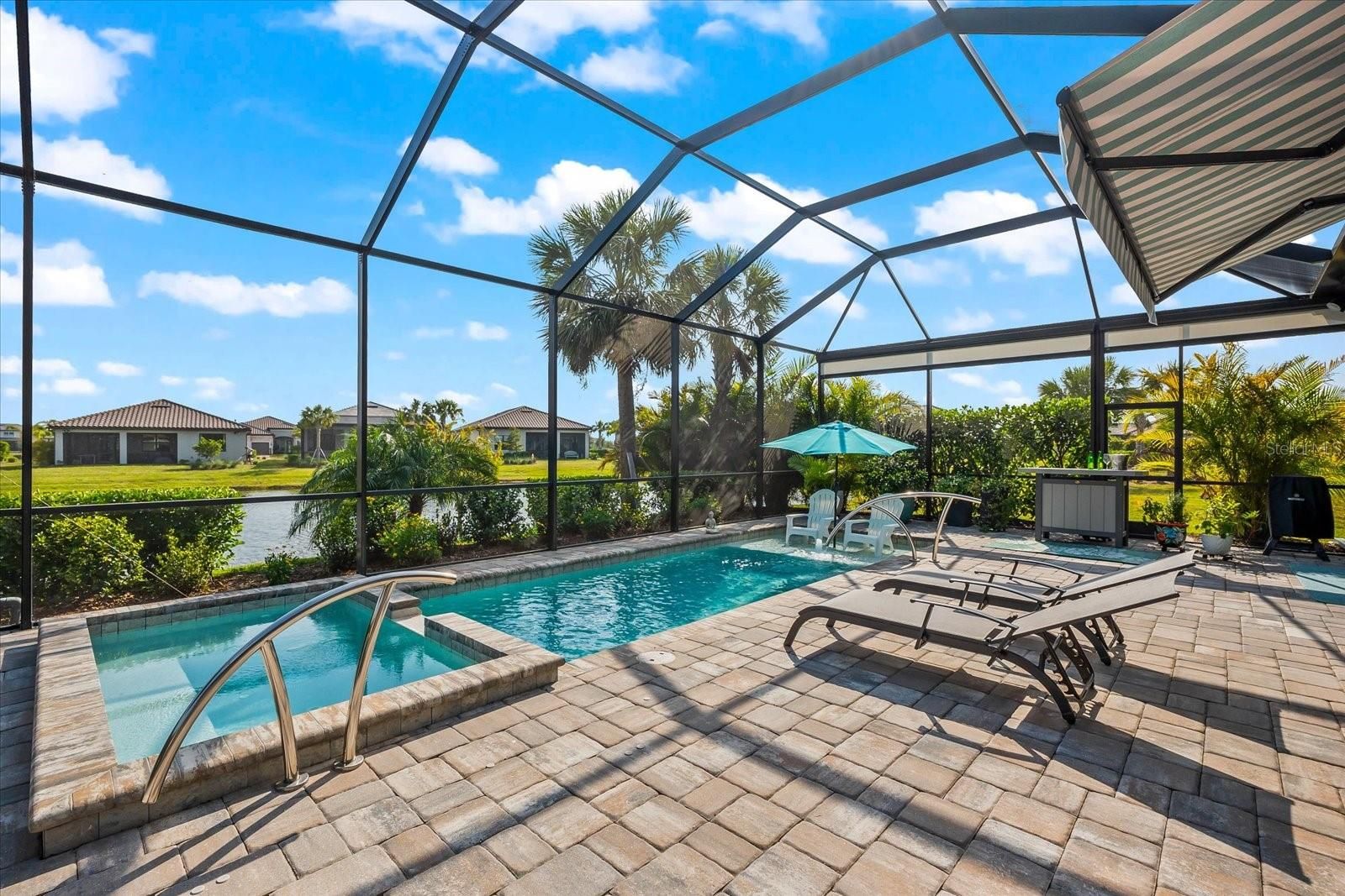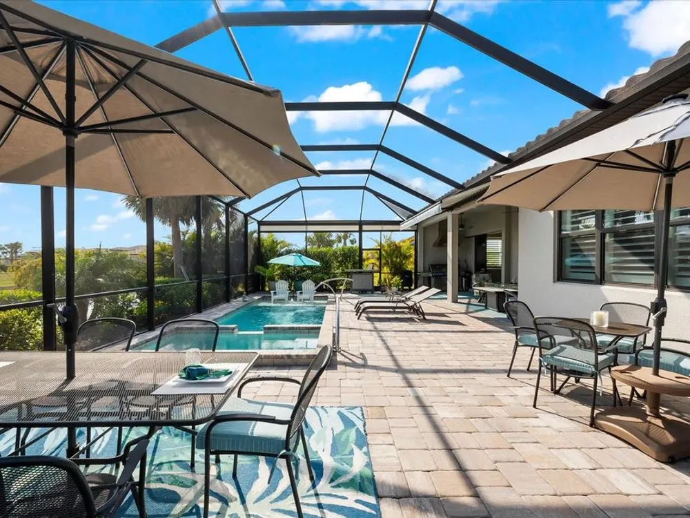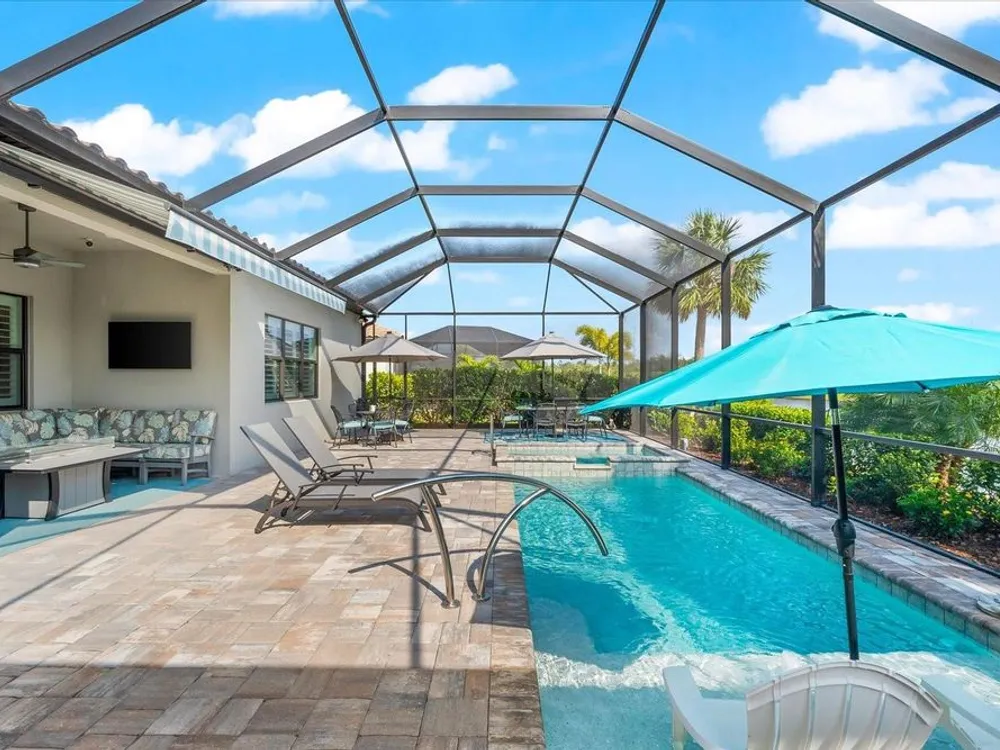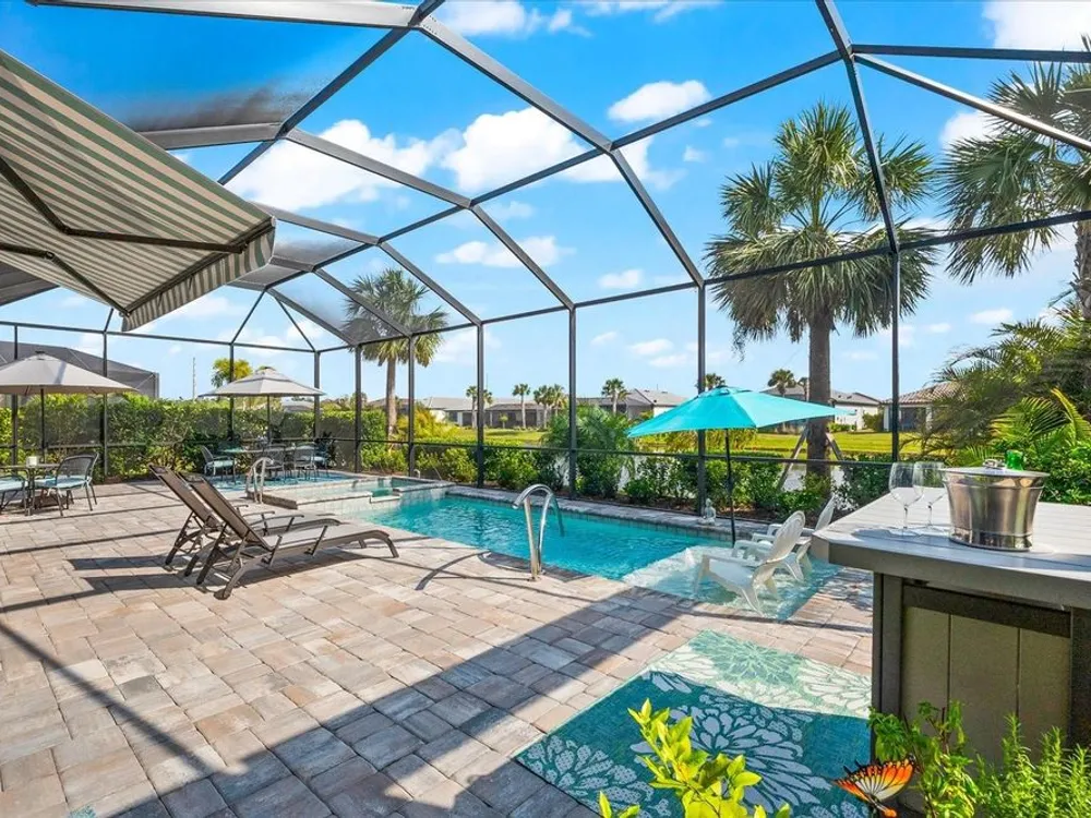 WHOLE HOUSE GENERATOR* IMPACT DOORS AND WINDOWS* PRICED TO SELL*Modern Comfort Meets Resort-Style Living in Del Webb Lakewood Ranch. Welcome to easy, elegant living in the heart of Del Webb Lakewood Ranch—one of the area's most desirable 55+ communities. Set on a premium south-facing waterfront lot, this beautifully upgraded Renown floor plan offers everything you need for comfort, style, and low-maintenance Florida living. Step inside to discover an open, airy layout with 3 spacious bedrooms, 3.5 bathrooms, and a flexible bonus room—perfect for a home office, hobby space, or additional living area. Thoughtful upgrades shine throughout the home, from tray ceilings and crown molding to plantation shutters and impact-resistant windows and doors. The gourmet kitchen is a standout feature, complete with Bosch induction cooktop, built-in double ovens, stainless steel range hood, 2-zone wine fridge, wine rack, reverse osmosis system, touchless faucet, custom cabinetry, and a perfectly organized walk-in pantry. The oversized island is the heart of the home—ideal for casual dining, entertaining, or prepping meals in style. The owner’s suite is your personal retreat, featuring a luxurious bath with dual vanities, an oversized walk-in shower, private water closet, and two custom walk-in closets. Two additional guest suites, each with their own private bath and walk-in closet, offer comfort and privacy for visitors. Enjoy peace of mind with a whole-house 24kW generator, water softener system, and an extended 3-car garage with built-in storage and epoxy floors. A separate powder room, drop zone, and large laundry room add to the home’s smart and functional design. Love the outdoors? You’ll appreciate the custom-designed heated saltwater pool and spa, extended brick-paver lanai, automatic sunshades, awning, and panoramic water views—perfect for relaxing or entertaining year-round. Large pocket sliding doors open wide to blend indoor and outdoor living effortlessly. Living in Del Webb Lakewood Ranch means more than just a beautiful home—it’s a lifestyle. Enjoy access to top-tier amenities including 6 tennis courts, 8 pickleball courts, bocce ball, a fitness center with group classes, a resort-style and lap pool, on-site restaurant and bar, and endless social opportunities organized by a full-time Lifestyle Director. With close proximity to Gulf Coast beaches, airports, shopping, dining, and culture, this home truly has it all. Move-in ready and meticulously maintained—don’t miss the opportunity to make it yours.