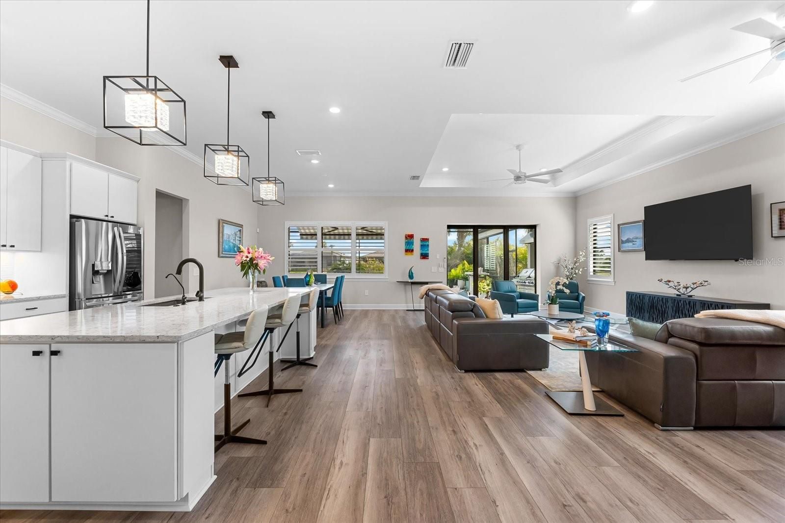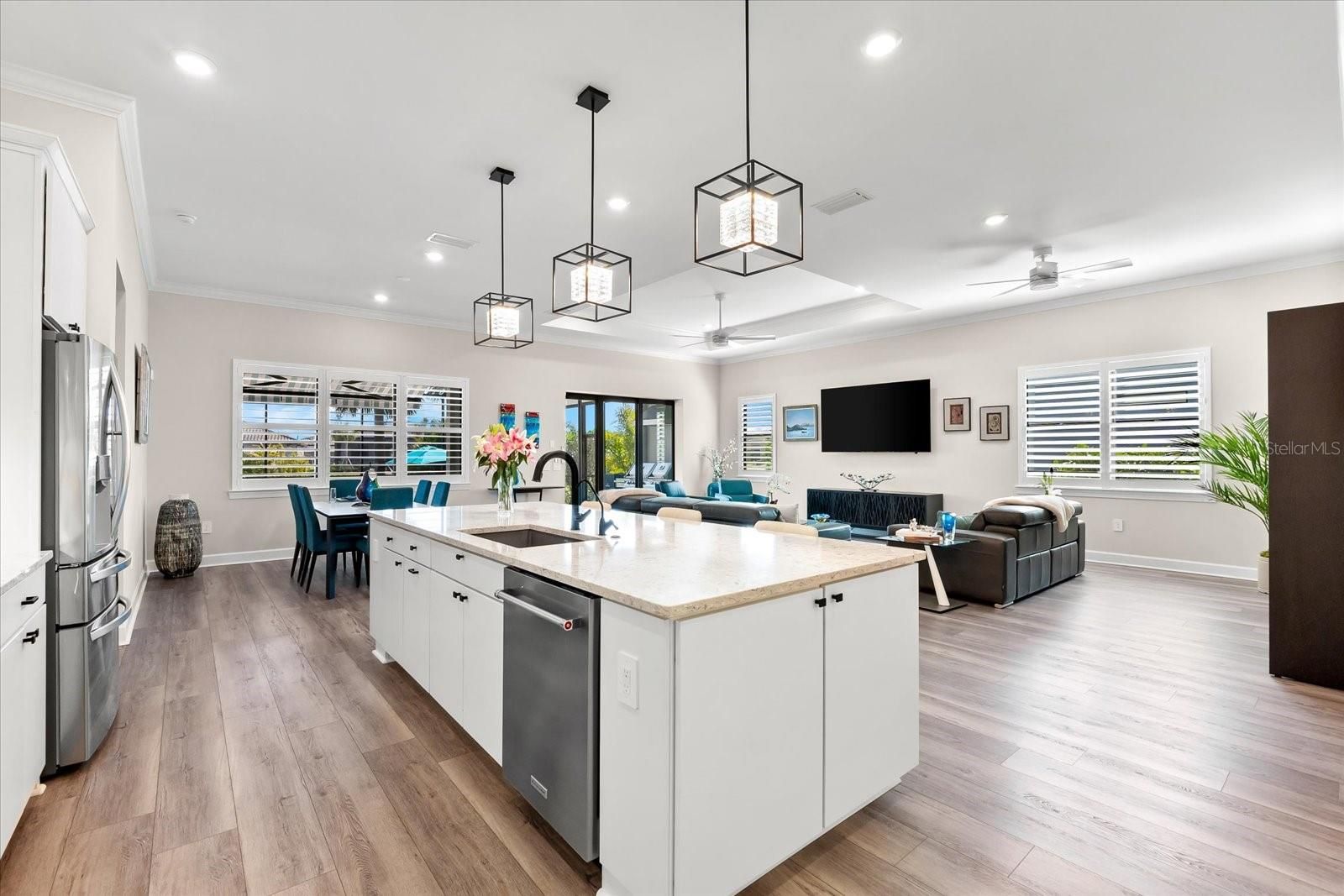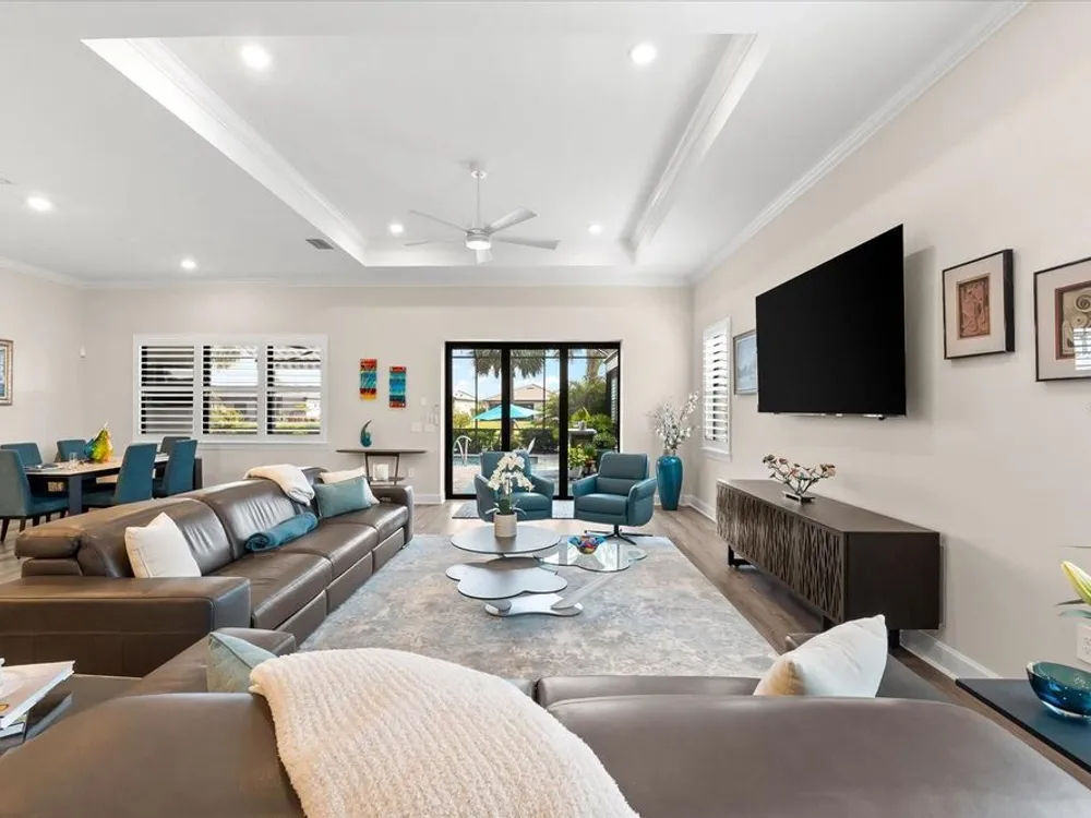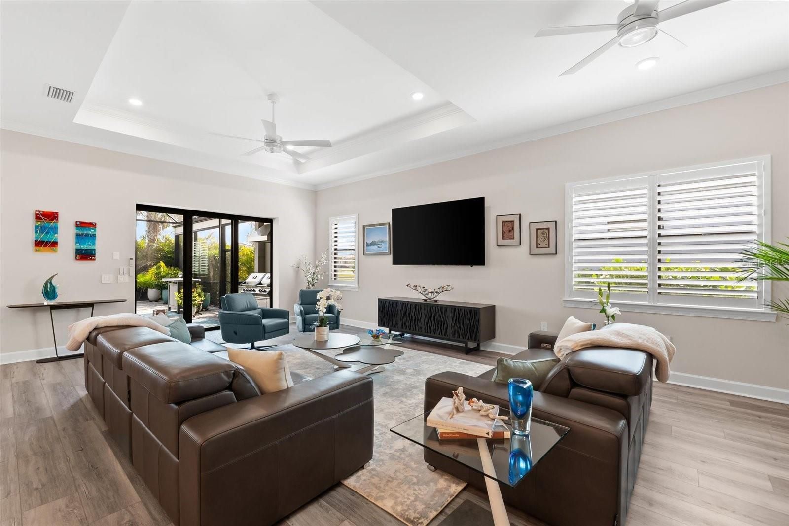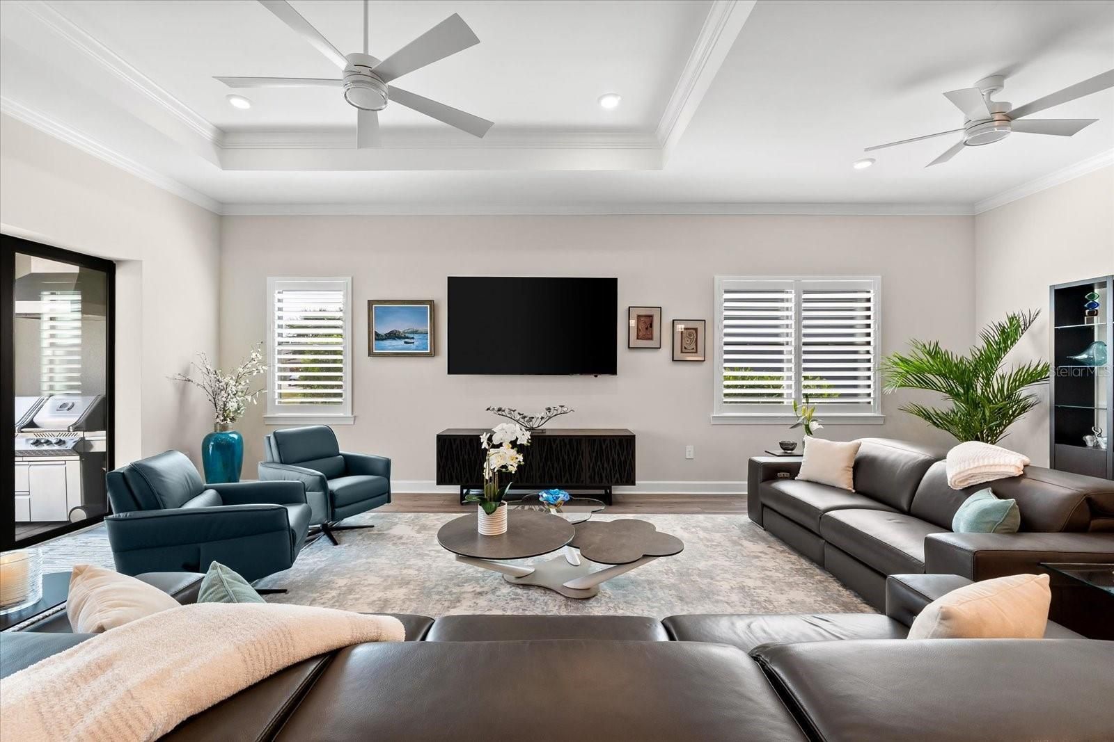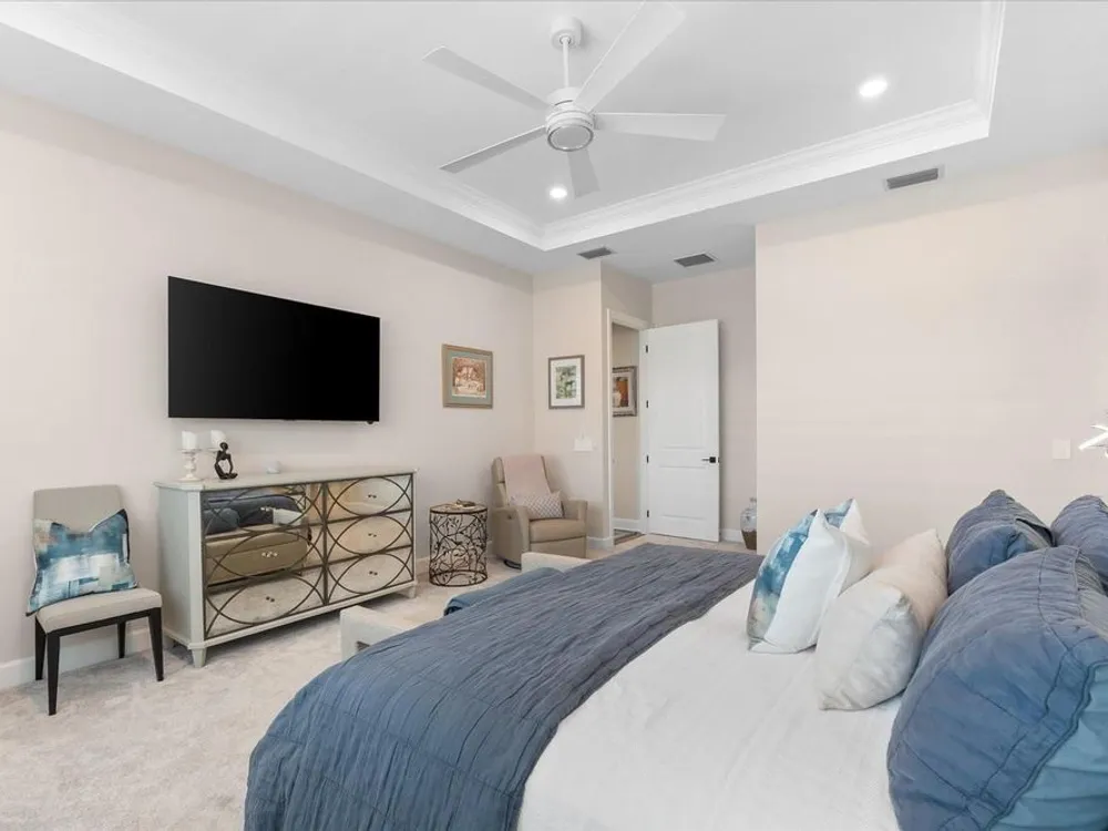 WHOLE HOUSE GENERATOR* IMPACT DOORS AND WINDOWS* PRICED TO SELL*Modern Comfort Meets Resort-Style Living in Del Webb Lakewood Ranch. Welcome to easy, elegant living in the heart of Del Webb Lakewood Ranch—one of the area's most desirable 55+ communities. Set on a premium south-facing waterfront lot, this beautifully upgraded Renown floor plan offers everything you need for comfort, style, and low-maintenance Florida living. Step inside to discover an open, airy layout with 3 spacious bedrooms, 3.5 bathrooms, and a flexible bonus room—perfect for a home office, hobby space, or additional living area. Thoughtful upgrades shine throughout the home, from tray ceilings and crown molding to plantation shutters and impact-resistant windows and doors. The gourmet kitchen is a standout feature, complete with Bosch induction cooktop, built-in double ovens, stainless steel range hood, 2-zone wine fridge, wine rack, reverse osmosis system, touchless faucet, custom cabinetry, and a perfectly organized walk-in pantry. The oversized island is the heart of the home—ideal for casual dining, entertaining, or prepping meals in style. The owner’s suite is your personal retreat, featuring a luxurious bath with dual vanities, an oversized walk-in shower, private water closet, and two custom walk-in closets. Two additional guest suites, each with their own private bath and walk-in closet, offer comfort and privacy for visitors. Enjoy peace of mind with a whole-house 24kW generator, water softener system, and an extended 3-car garage with built-in storage and epoxy floors. A separate powder room, drop zone, and large laundry room add to the home’s smart and functional design. Love the outdoors? You’ll appreciate the custom-designed heated saltwater pool and spa, extended brick-paver lanai, automatic sunshades, awning, and panoramic water views—perfect for relaxing or entertaining year-round. Large pocket sliding doors open wide to blend indoor and outdoor living effortlessly. Living in Del Webb Lakewood Ranch means more than just a beautiful home—it’s a lifestyle. Enjoy access to top-tier amenities including 6 tennis courts, 8 pickleball courts, bocce ball, a fitness center with group classes, a resort-style and lap pool, on-site restaurant and bar, and endless social opportunities organized by a full-time Lifestyle Director. With close proximity to Gulf Coast beaches, airports, shopping, dining, and culture, this home truly has it all. Move-in ready and meticulously maintained—don’t miss the opportunity to make it yours.