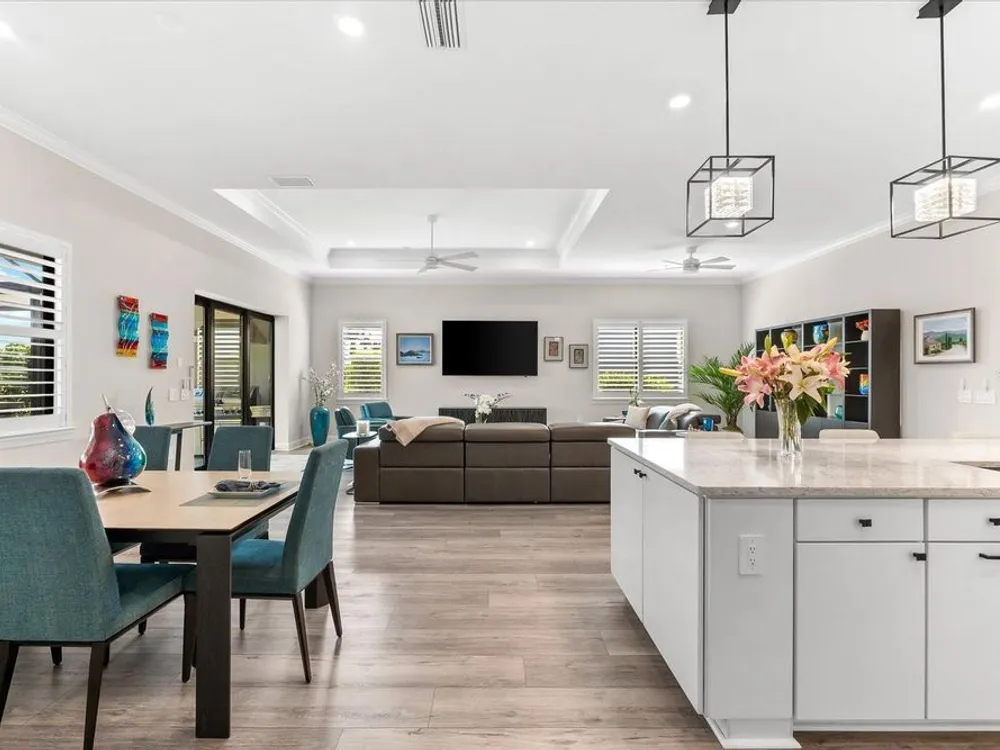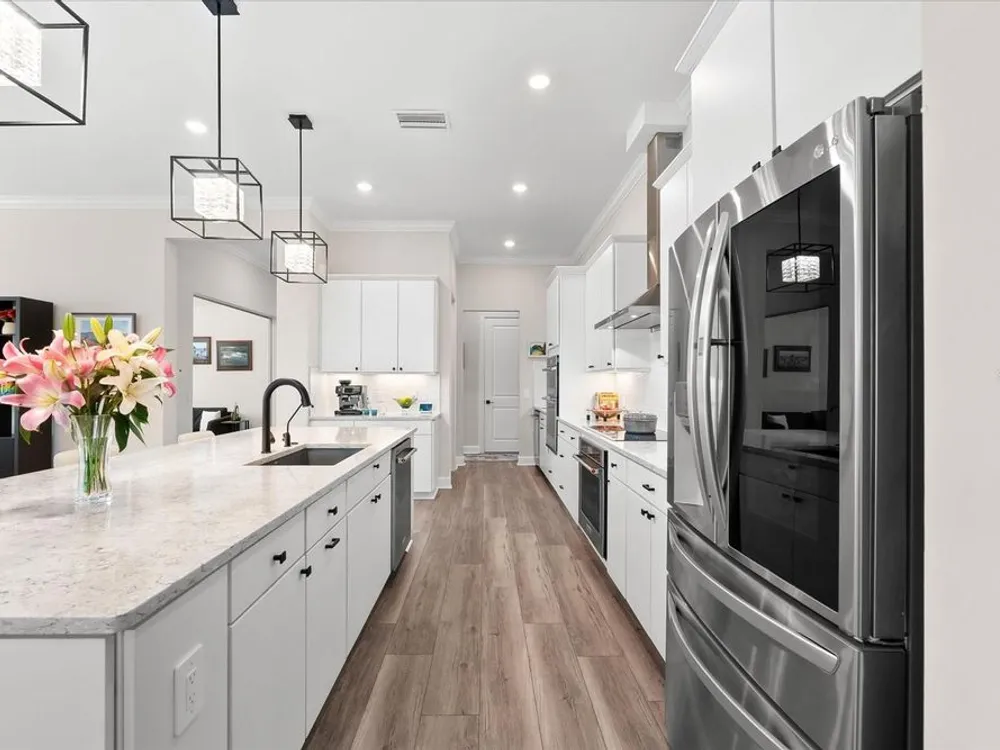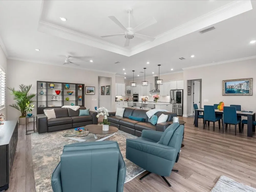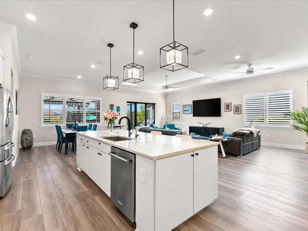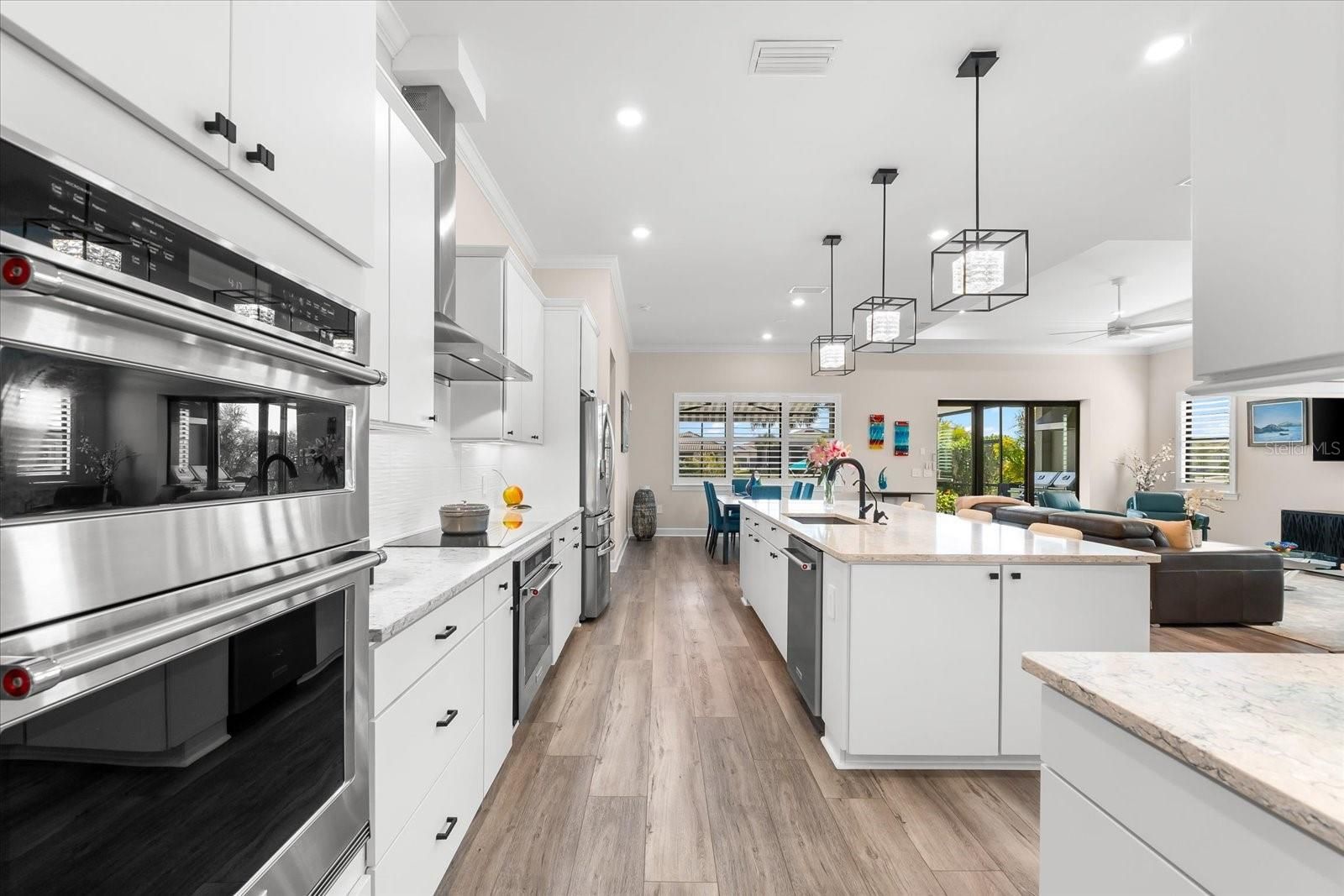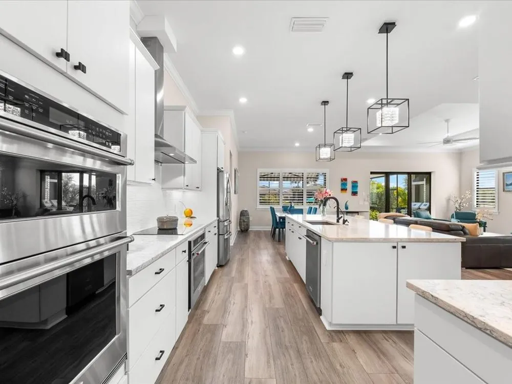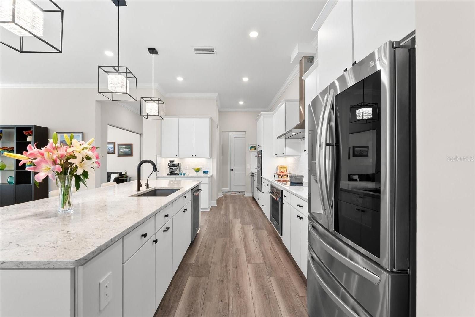 WHOLE HOUSE GENERATOR* IMPACT DOORS AND WINDOWS* PRICED TO SELL*Modern Comfort Meets Resort-Style Living in Del Webb Lakewood Ranch. Welcome to easy, elegant living in the heart of Del Webb Lakewood Ranch—one of the area's most desirable 55+ communities. Set on a premium south-facing waterfront lot, this beautifully upgraded Renown floor plan offers everything you need for comfort, style, and low-maintenance Florida living. Step inside to discover an open, airy layout with 3 spacious bedrooms, 3.5 bathrooms, and a flexible bonus room—perfect for a home office, hobby space, or additional living area. Thoughtful upgrades shine throughout the home, from tray ceilings and crown molding to plantation shutters and impact-resistant windows and doors. The gourmet kitchen is a standout feature, complete with Bosch induction cooktop, built-in double ovens, stainless steel range hood, 2-zone wine fridge, wine rack, reverse osmosis system, touchless faucet, custom cabinetry, and a perfectly organized walk-in pantry. The oversized island is the heart of the home—ideal for casual dining, entertaining, or prepping meals in style. The owner’s suite is your personal retreat, featuring a luxurious bath with dual vanities, an oversized walk-in shower, private water closet, and two custom walk-in closets. Two additional guest suites, each with their own private bath and walk-in closet, offer comfort and privacy for visitors. Enjoy peace of mind with a whole-house 24kW generator, water softener system, and an extended 3-car garage with built-in storage and epoxy floors. A separate powder room, drop zone, and large laundry room add to the home’s smart and functional design. Love the outdoors? You’ll appreciate the custom-designed heated saltwater pool and spa, extended brick-paver lanai, automatic sunshades, awning, and panoramic water views—perfect for relaxing or entertaining year-round. Large pocket sliding doors open wide to blend indoor and outdoor living effortlessly. Living in Del Webb Lakewood Ranch means more than just a beautiful home—it’s a lifestyle. Enjoy access to top-tier amenities including 6 tennis courts, 8 pickleball courts, bocce ball, a fitness center with group classes, a resort-style and lap pool, on-site restaurant and bar, and endless social opportunities organized by a full-time Lifestyle Director. With close proximity to Gulf Coast beaches, airports, shopping, dining, and culture, this home truly has it all. Move-in ready and meticulously maintained—don’t miss the opportunity to make it yours.