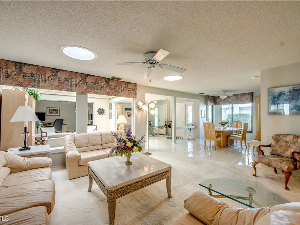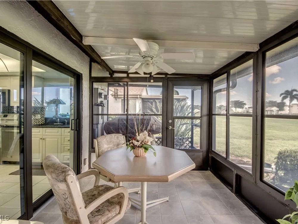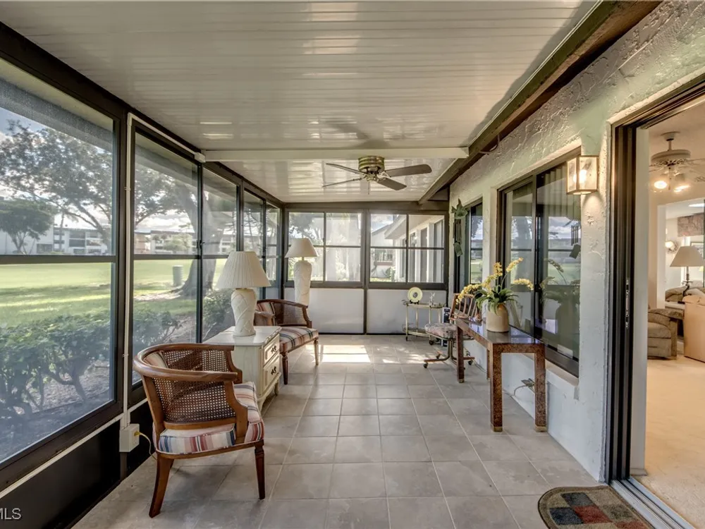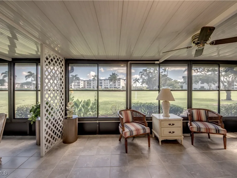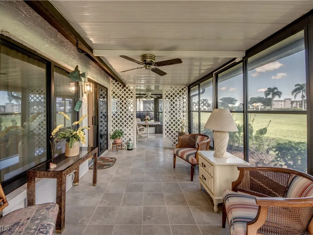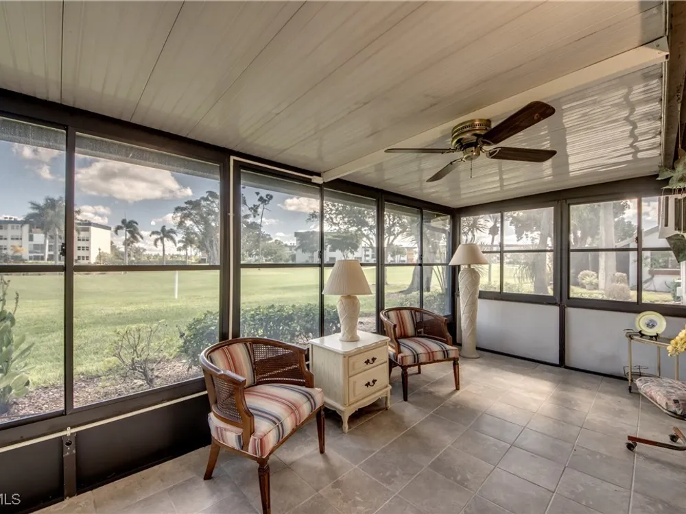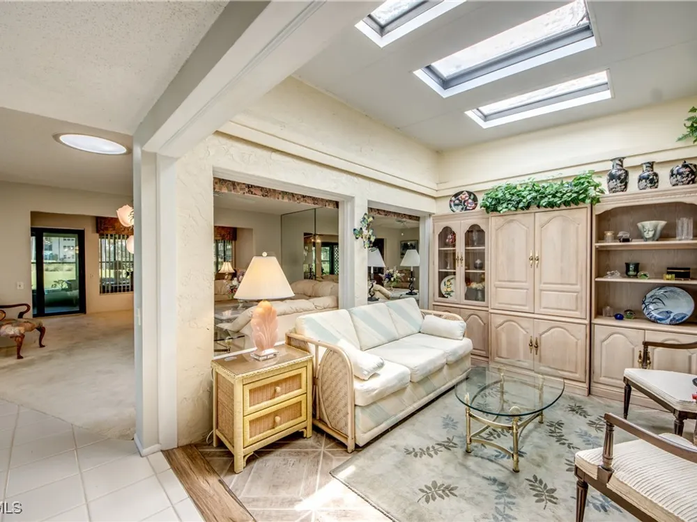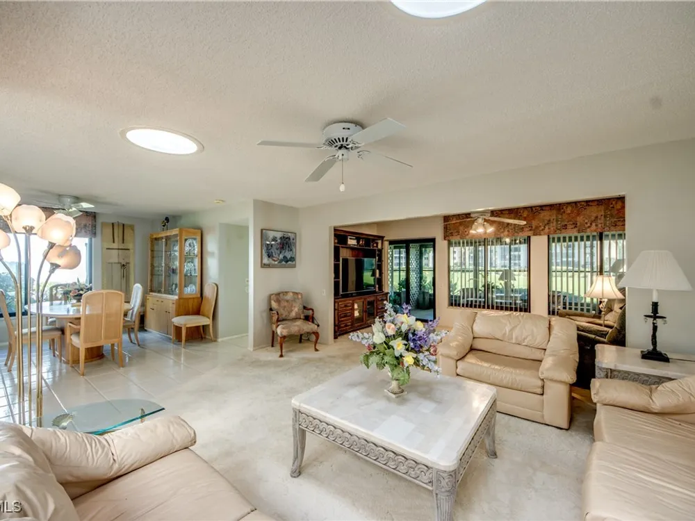 Welcome to 1792 Pine Glade Circle! Your Florida Lifestyle awaits with this Rare, 3 bedroom, 2 bath Garden Villa overlooking the 7th fairway in the amenity rich Seven Lakes Golf & Tennis Community. This is Home! Updated kitchen with stainless steel appliances, tile and carpet throughout. This Biscayne model boast an open concept living/dining area with two sliders, an enclosed atrium allowing for lots of natural light and three spacious bedrooms with large closets for ample storage. The primary bedroom features an en-suite bath with a tiled walk-in shower. The guest bath includes a tiled walk-in shower. Enjoy your morning coffee on the extended lanai overlooking the golf course. Sold Turnkey with the exception of a few items and includes a covered Golf Cart Space and 2016 Club Cart. Roof 2023, Impact windows and doors, High Wind Resistant garage door with motorized screen. This vibrant 55+ Active Adult Community features an array of amenities, including 6 heated pools, 6 Har-Tru tennis courts, shuffleboard, bocce ball, pickleball, and more. Enjoy a fully equipped library, card rooms, exercise room, billiards, wood shop, hobby and craft areas, and regular social events like dinners, movies, and dancing in the dedicated recreational space. Pet-friendly with a 24-hour manned guard gate for added security. The condo fee covers bundled golf, high-speed internet, Wi-Fi, cable, water, sewer, structure insurance, trash removal, and building maintenance. The only utility you pay for is electricity. Plus, there are NO golf transfer fees, NO green fees, and NO food minimums at the restaurant. Centrally located in the heart of the city, minutes to shopping, dining, RSW Airport, Beautiful Beaches and Downtown Ft Myers. What are you waiting for!?! Schedule your private showing and make this your home today. The Time is Now!!