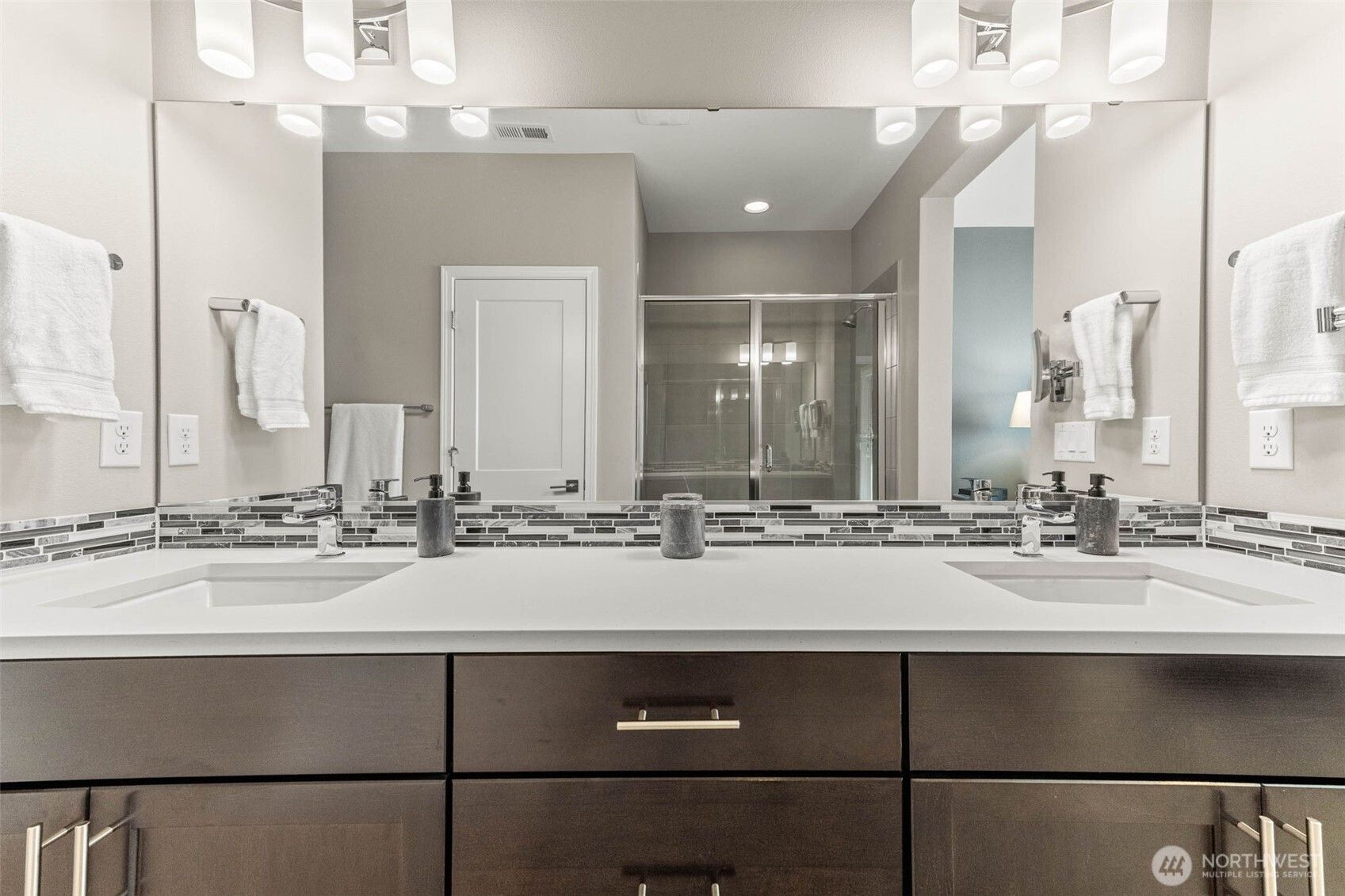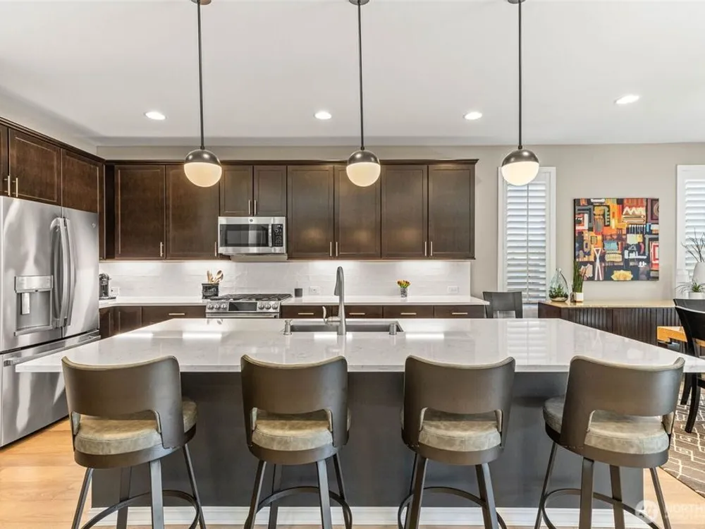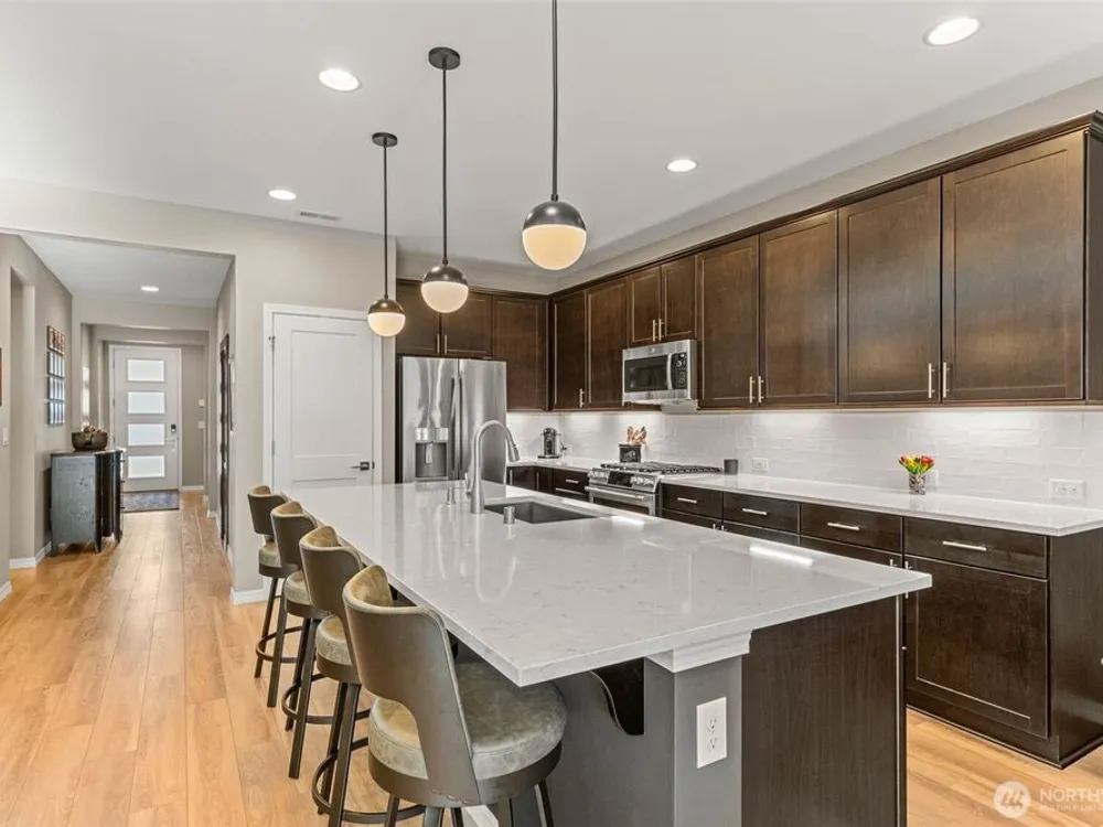 Trilogy at Tehaleh-Premier 55+ Resort Living!Step into elegant comfort in this impeccably maintained, like-new home featuring an attached 2-car garage and upscale finishes throughout. The chef’s kitchen impresses with pristine 42" shaker cabinets, quartz countertops, and top-tier appliances, GE Cafe dual range. Den murphy bookcase secret door! Plantation shutters, low maintenance LVP flooring. Custom prmry closet. Private outdoor oasis awaits:covered patio with with remote sunscreen shades, central A/C, tankless water heater, Generator hook up, prewired for 2 EVs, security system, 2 wtr fountains, fully insulated garage. Live the Trilogy lifestyle with exclusive access to the Lodge, pool, fitness center, restaurant, +pickle ball. Must See!