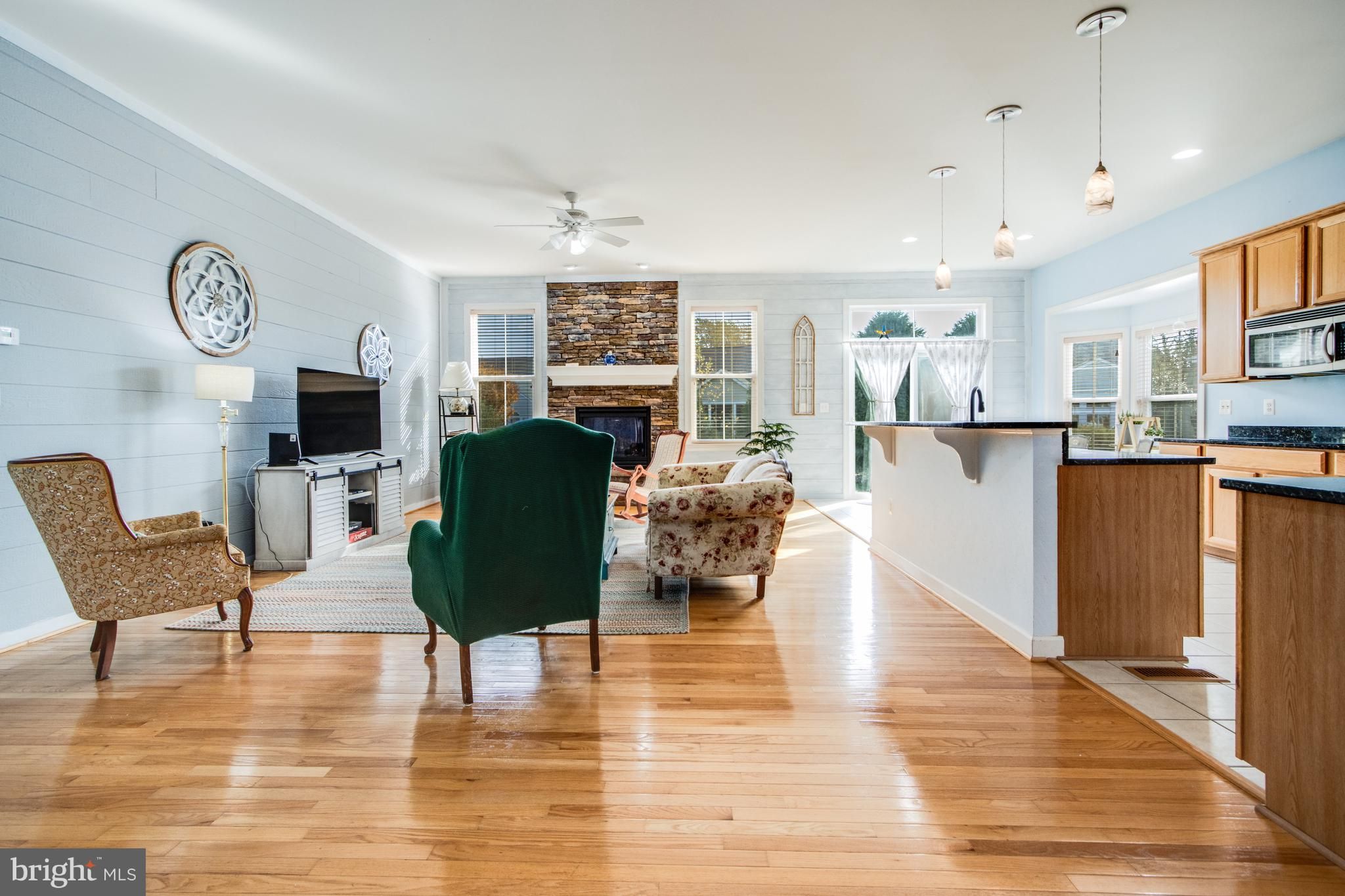 A rare find in Villages at Red Mill Pond North. Home has a finished basement with full bathroom, flex room, and large family room. A new roof was installed in 2023 which comes with a warranty. There is a pellet stove in the finished basement for a second heat source. On the main floor you will find a gourmet kitchen with maple cabinets, granite counter tops, and stainless steel appliances. Great open floor plan for entertaining. There are 3 bedrooms on main floor with 2 full bathrooms. Beautiful stone fireplace in the living room. A spacious owners suite is off the living room with a huge walk in shower. Other two bedrooms are in front of the home and share a full bathroom. Red Mill Pond North has easy access to the Lewes Georgetown bike trail. You also have two clubhouses, two outdoor pools, pickle ball, and a kayak launch onto Red Mill Pond. The clubhouse on the north side is larger than the south side. There is a fitness center, billiards room, and spacious gathering room with a kitchen. Very social community with at least 20 clubs. The South side clubhouse is smaller but you will find the pickle ball courts on that side. Lawn care is included in the quarterly hoa's. So you can relax and enjoy the community amenities and the surrounding beaches. Not far from shopping, restaurants, movie theatre, and Lefty's bowling alley.