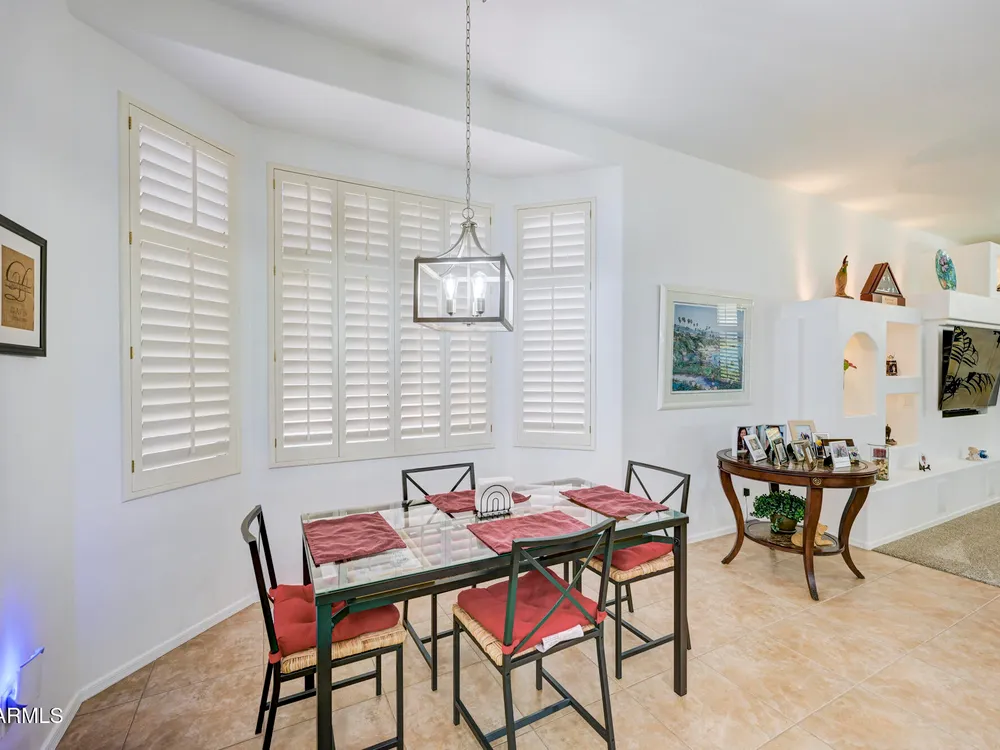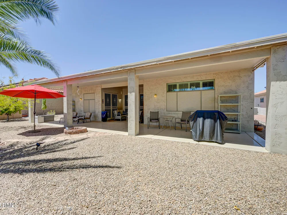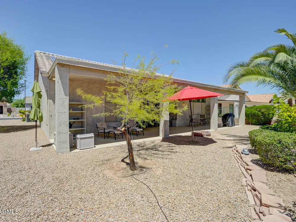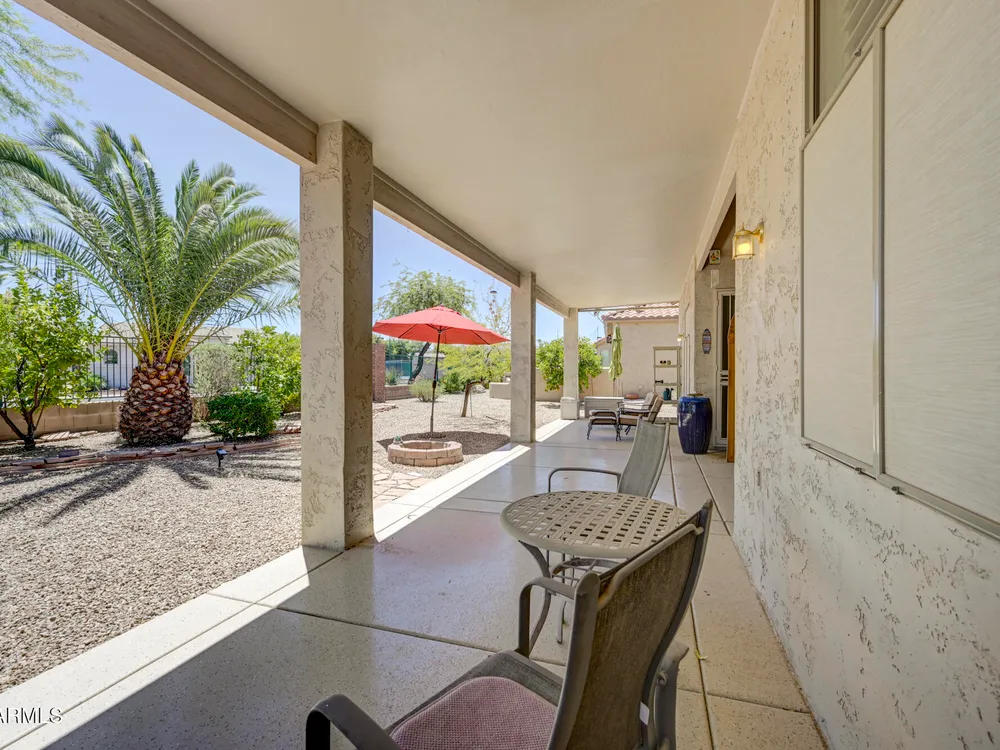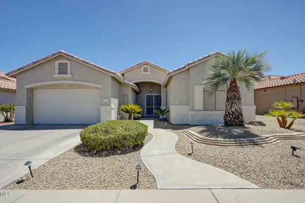 Welcome to Arizona Traditions, a 55+ guard-gated community. This home is beautifully updated and offers 2 bedrooms + a den and 2 bathrooms. This is the perfect great room layout which has a spacious sized family room, formal dining area and open kitchen with a big breakfast bar and also an eat-in-kitchen. The kitchen has lots of cabinetry, granite counters and SS appliances. The entry has double doors with security screens. Tiled flooring in all the major traffic areas. Lots of plantation shutters. The backyard has a wonderful covered patio and mature landscaping. Arizona Traditions has golf, pickleball, tennis & swimming.