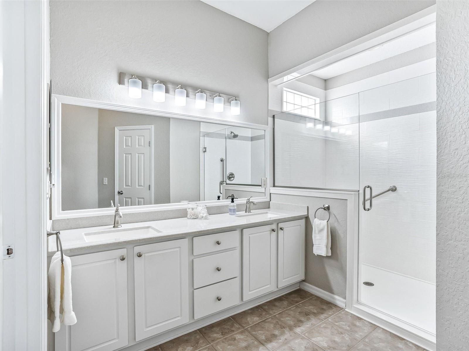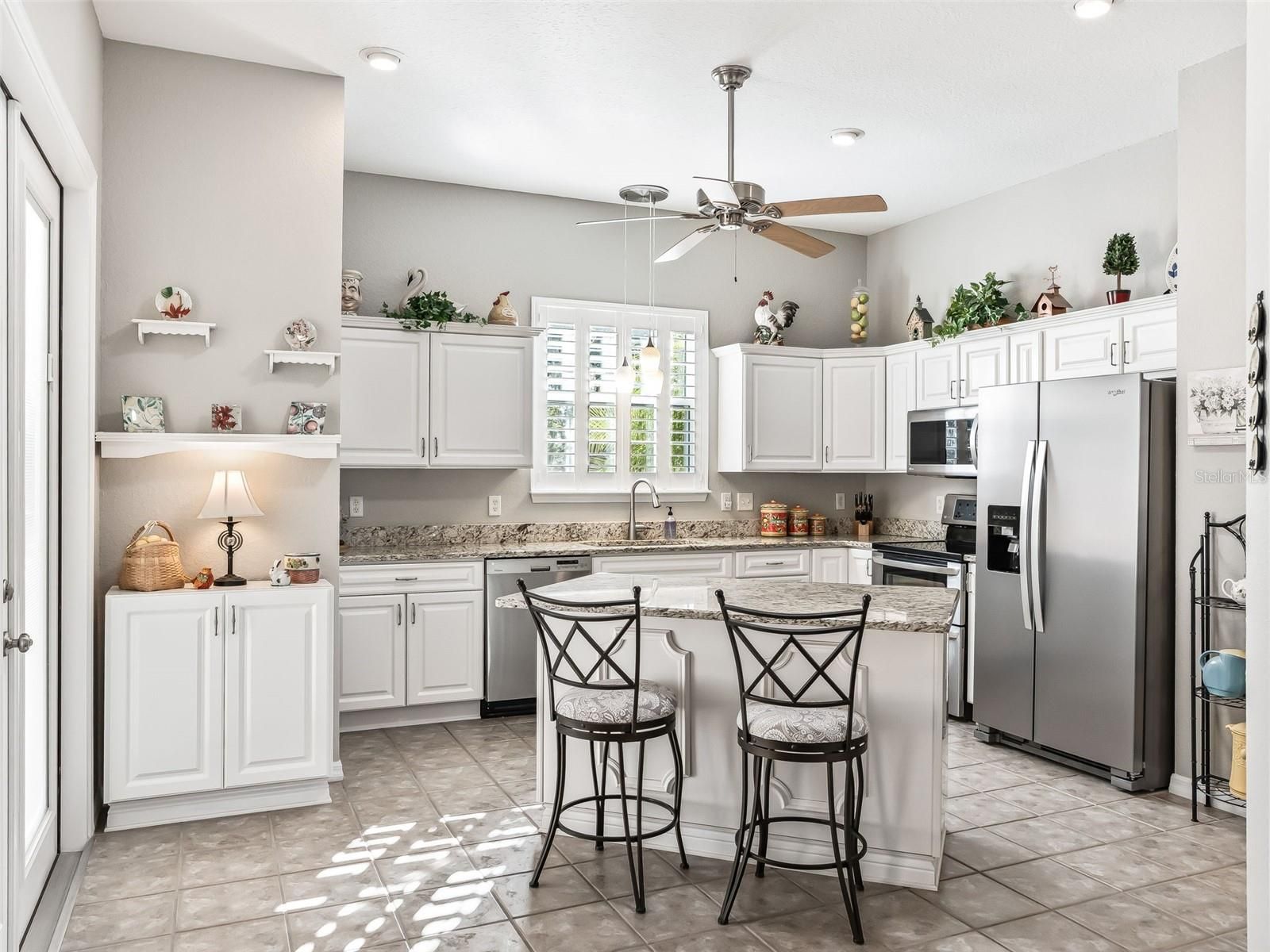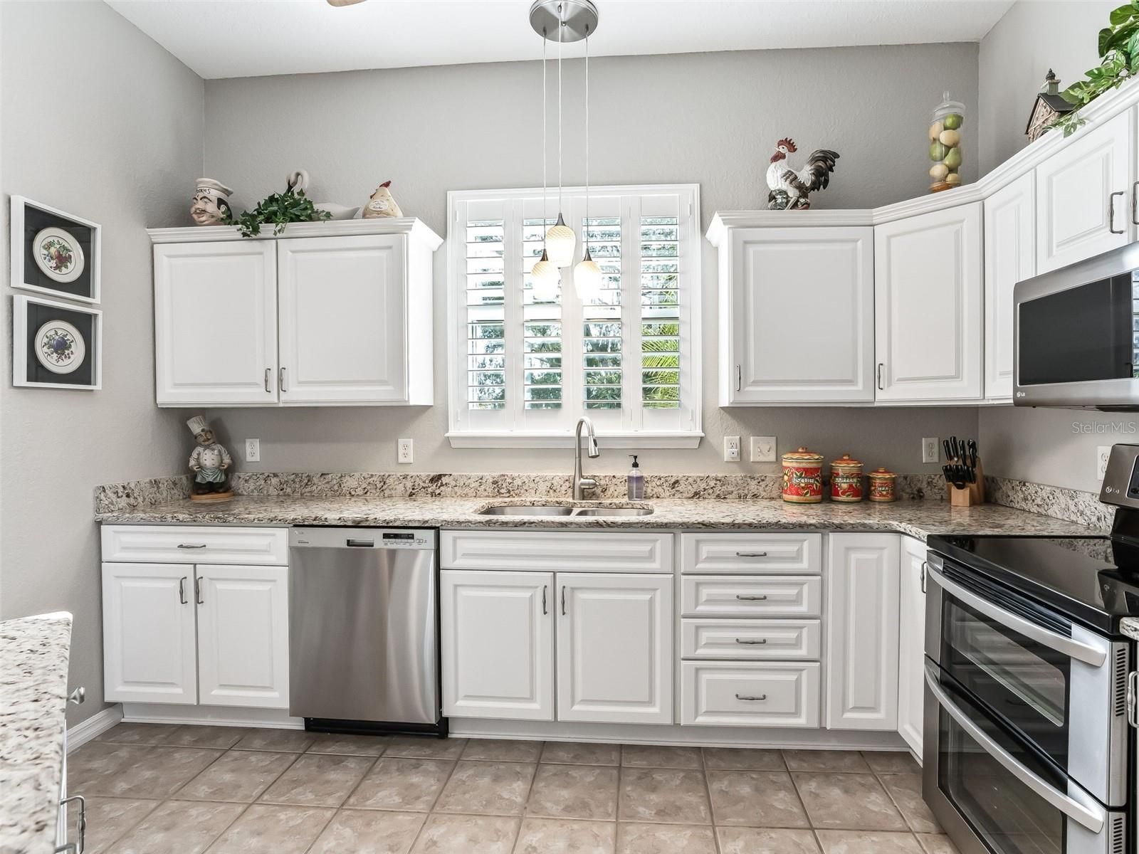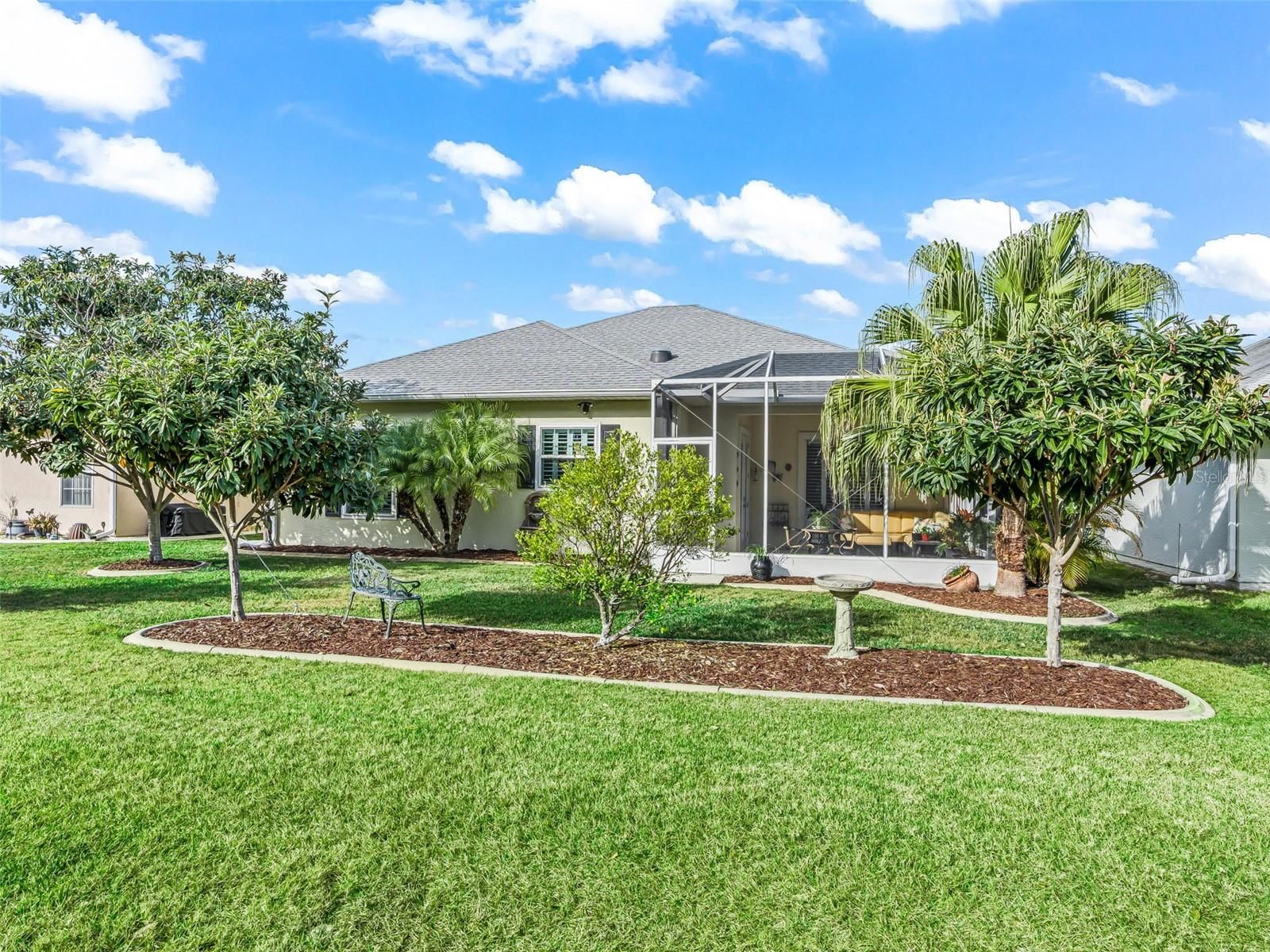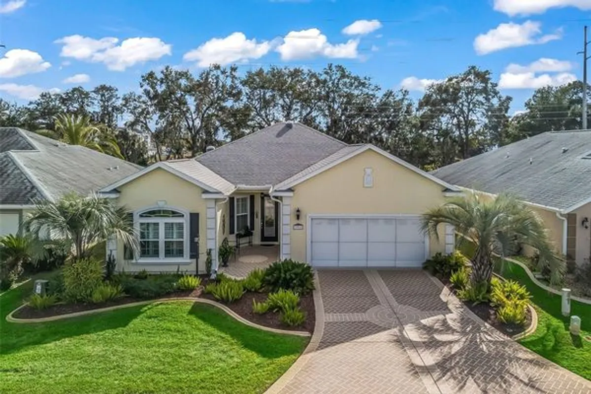 Stonecrest is a 55+ gated golf course community with all the amenities and 4 pools (one indoor), and just a Bridge Away By Golf Cart To The Villages! Charming 3/2 Chestnut with a 2 Car Garage + Workshop, ROOF 2022, No Rear Neighbors, offers Tremendous curb appeal featuring Designer Paver Driveway & Walkway, Lush Professional Tropical Landscaping, and a Covered Front Entrance with a Gorgeous Leaded Glass Door. You will Love this Open Concept and Split Floor Plan, providing plenty of Space, and Natural Light, making the Chestnut model just perfect for Entertaining Friends and Family! This well appointed home boasts Plantation Shutters, Upgraded Light Fixtures, Glowing Laminate Flooring, Wainscoting, High Ceilings, French Doors, and a Covered Lanai with a Birdcage attachment. The Large Eat in Kitchen showcases Stainless Appliances, Double Oven, White Wood Cabinetry, Large Pantry Closet, Center Island with Additional Storage, and Seating, and Access to the Covered Lanai. The thoughtfully designed Split Floor Plan offers Privacy for both the Owners and their Guest, with the Primary Suite secluded on one side of the home for an Ultimate Private Retreat, while the Secondary bedrooms, and Guest bathroom are nestled on the opposite side of the home. The Lovely Primary Suite boasts a luxurious En Suite bathroom showcasing a Private Water Closet, Walk in Shower, a Two Sink Vanity, and a Large Walk in Closet. Bedroom Two features a nice size built in closet, and a Built in Murphy Bed, while bedroom three (no closet) can be used as an office or den. The Guest bathroom provides a nice size vanity with a decorative Vessel Sink, and a tub and shower combination, offering your guests plenty of privacy, and convenience. Enjoy the warm climate Florida has to offer while protected from the sun on the Covered Lanai, with Birdcage attachment providing multiple seating areas, and blending outdoor relaxation with indoor comfort, making it a perfect setting for enjoying dining, entertaining, and enjoying nature. There is plenty of room for all your storage needs in the 2 Car Garage, with 7x10 Workshop! Stonecrest is a 55+ gated golf course community with all the amenities, pools, pickleball courts, softball, 18 hole championship golf course, Broad Stripes Golf & Social Club and over 80 different clubs to join! As a private gated golf course community, you can expect a high level of privacy and security. Overall, this home offers a combination of Exceptional Floor Plan, Luxurious Features, a Fantastic Location with No Rear Neighbors, and a Secure Community Setting. A WONDERFUL LIFESTYLE AWAITS YOU IN STONECREST!