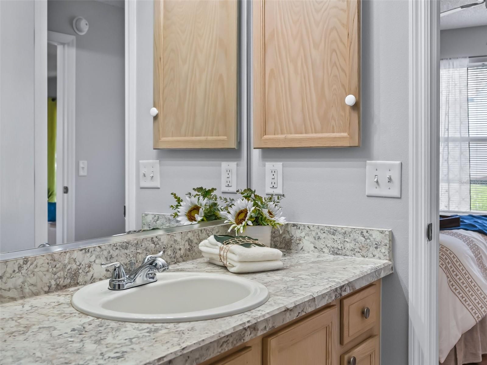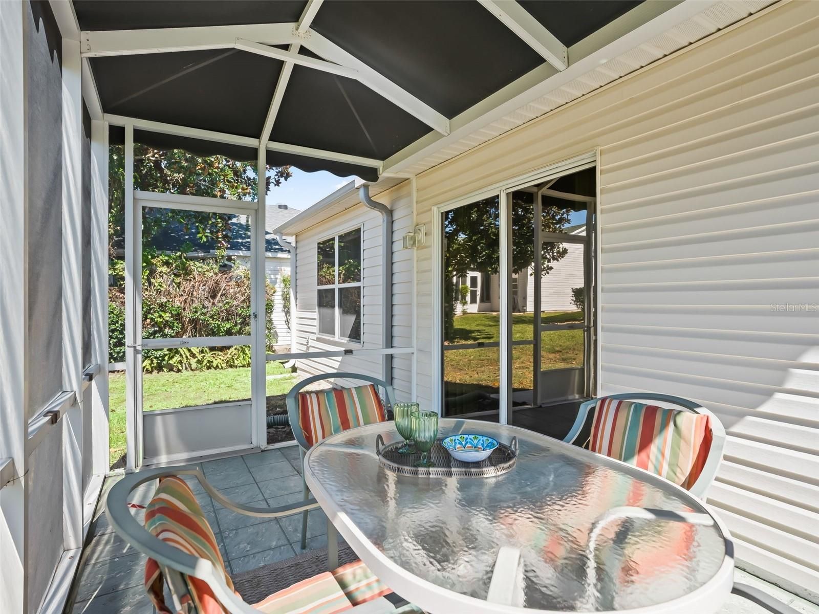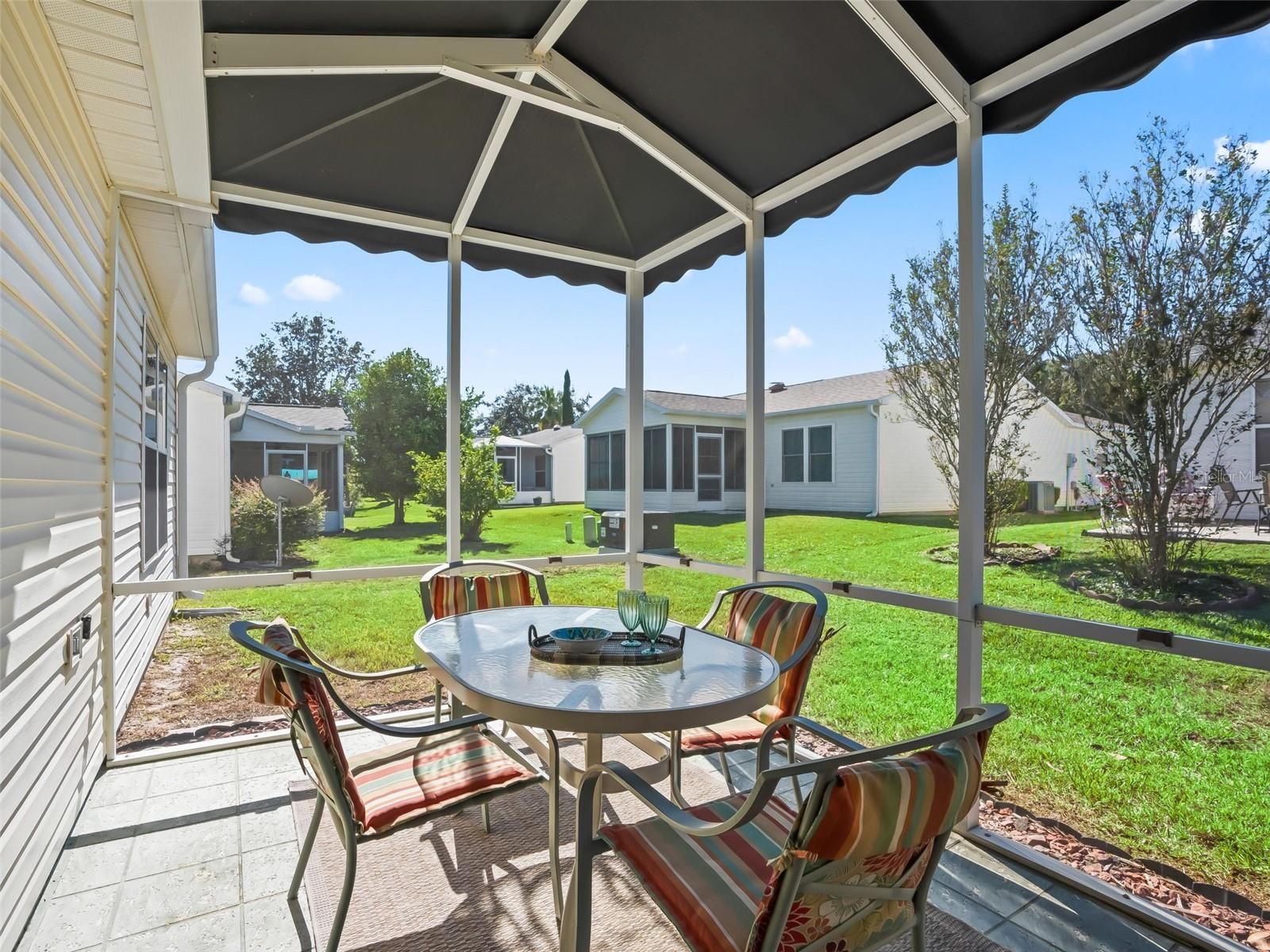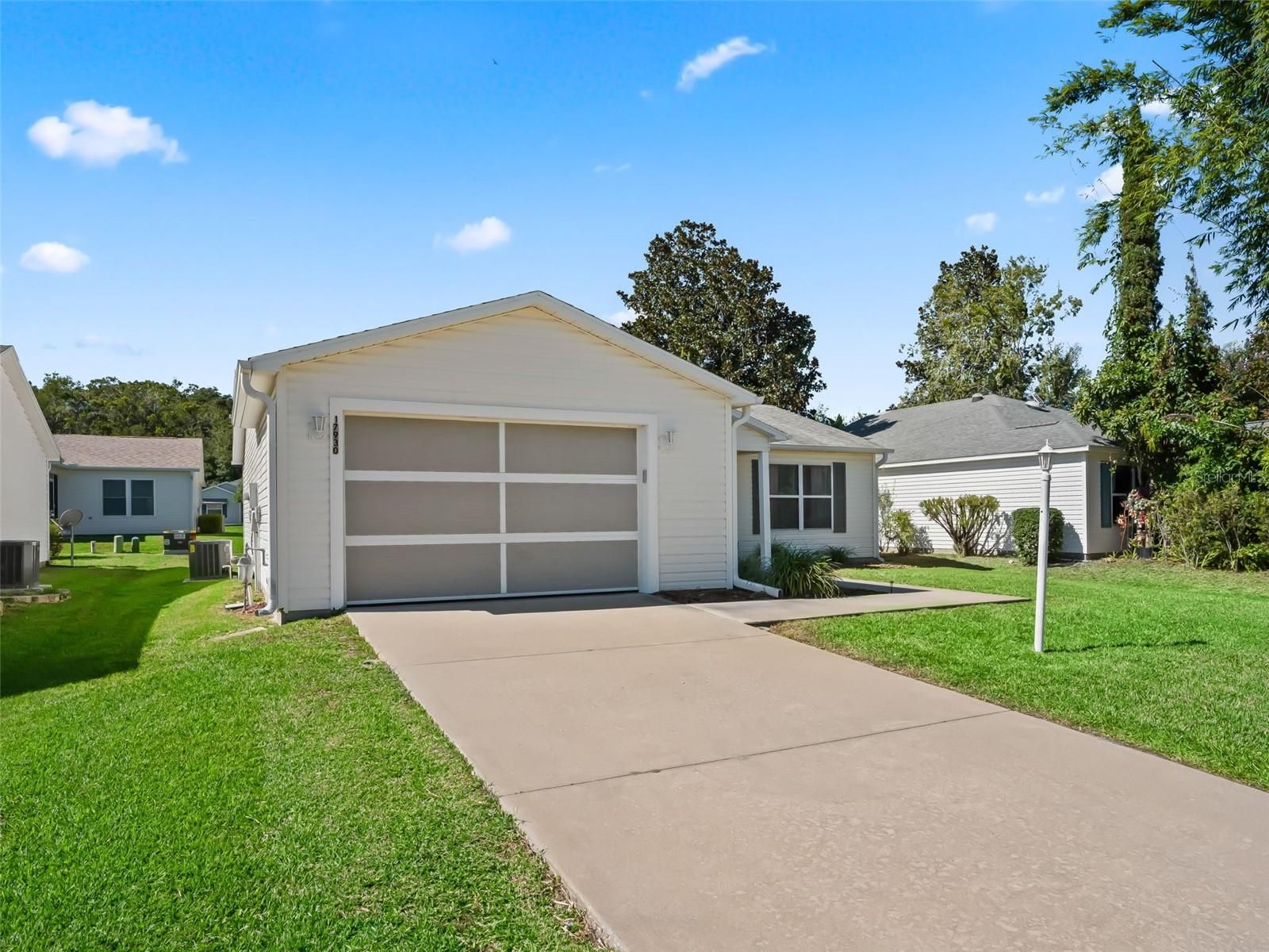 BOND PAID!! Welcome to the Northern area of The Villages, THE PREMIER 55+ active adult GOLF CART COMMUNITY in Florida! Featuring 3 spacious bedrooms and 2 bathrooms, this home is thoughtfully designed with a SPLIT-BEDROOM, OPEN CONCEPT FLOORPLAN! Inside you will discover FRESH PAINT THRU-OUT, and NATURAL LIGHT illuminating from a LARGE remote-controlled SOLAR TUBE! The kitchen opens to the dining room/ living room. The living room has glass sliding doors that lead to a COVERED BIRDCAGE lanai, perfect for enjoying morning coffee or evening sunsets. The 1.5 car garage has a ELECTRIC SCREEN, offering natural light and fresh air with PRIVACY- ability to see out and no one see in! ROOF 2018, AC 2022, HWH 2022. The upgraded laminate countertops in kitchen & baths have been tastefully upgraded from originals, and the UPGRADED LIGHT FIXTURES are a beautiful modern touch. NO CARPET! LUXURY LAMINATE in all main living areas and bedrooms. LOCATION!!! 4 executive golf courses and 2 Championship Courses within minutes by golf cart!!!Two FANTASTIC RESTAURANTS are just over a mile away!! Nancy Lopez Legacy Country Club and a favorite for a more casual affair, Legacy Bar & Grill!! and the WONDERFUL Glenview country club restaurant is just two miles away. Close to POOLS, Pickle Ball, REC Centers, and so much more, SHOPPING & ENTERTAINMENT! 10+ minutes from SPANISH SPRINGS TOWN SQUARE, and 15 minutes from Lake Sumter Landing, there's always something to do. Don't miss the opportunity to experience The Villages lifestyle where every day feels like a vacation. Schedule your private showing today and make this house your new home!