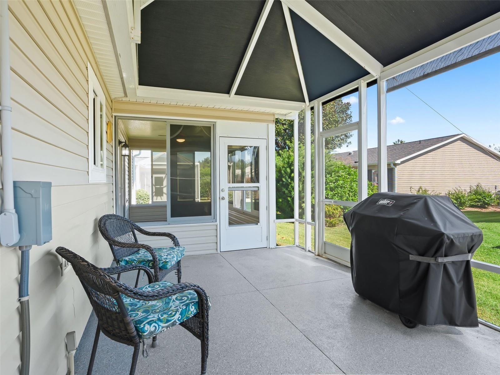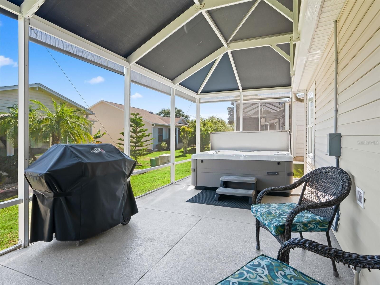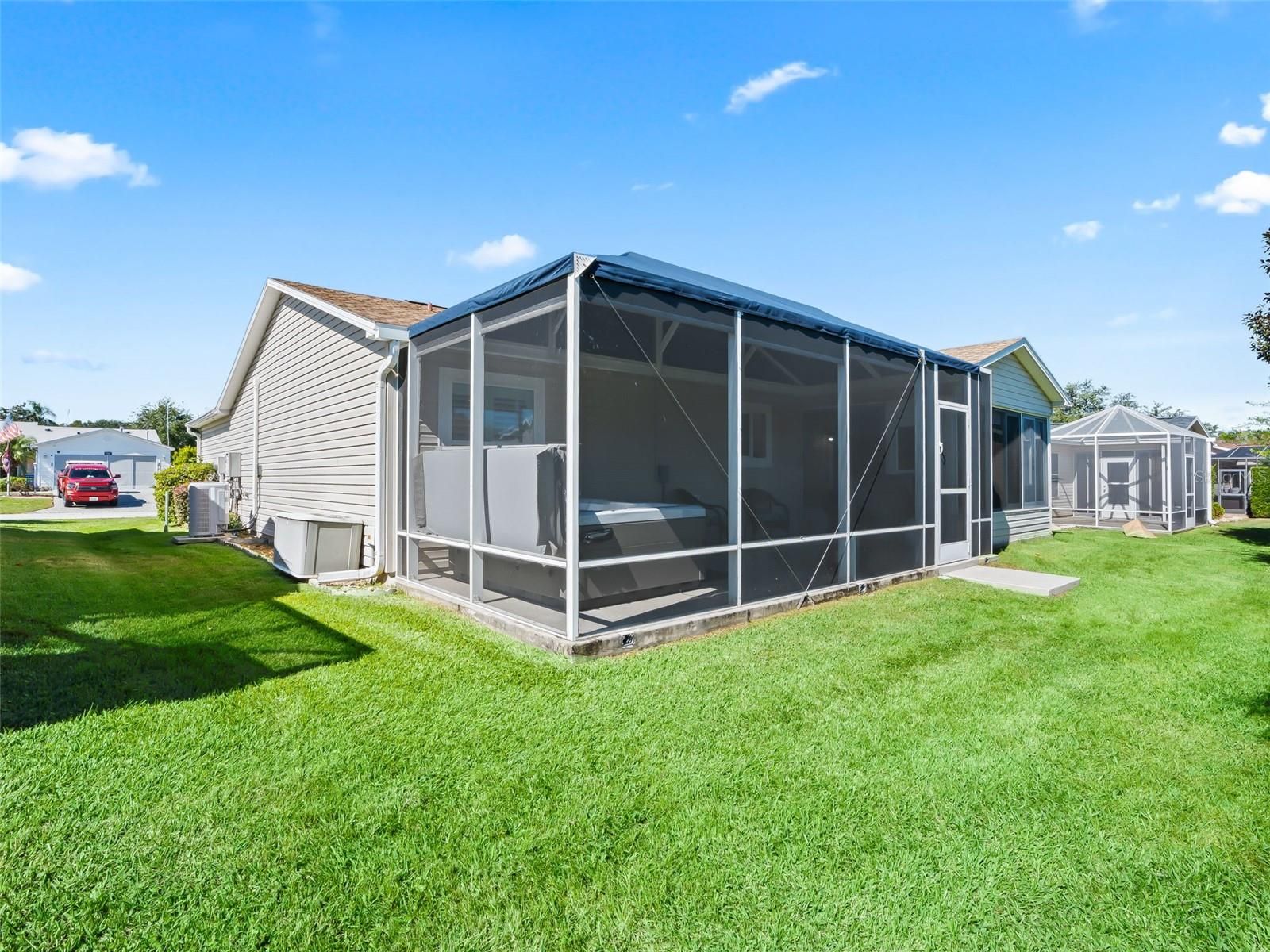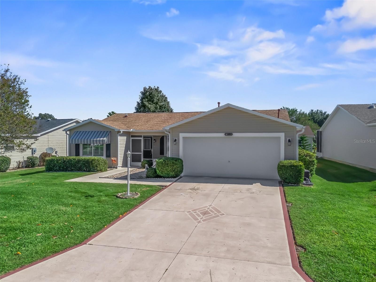 Welcome home to this beautifully UPDATED AMARILLO model (1,392 SF heated) in the Village of Piedmont with NO BOND! ROOF 2020, HVAC 2015. PLANTATION SHUTTERS, knockdown (NO POPCORN) ceilings, and NO CARPET- luxury laminate flooring throughout with no transitions!! All three bedrooms feature CUSTOM CALIFORNIA CLOSETS, including LARGE WALK-IN master closet. The completely UPGRADED KITCHEN offers STAINLESS STEEL Appliances, CROWNED SHAKER CABINETS TO THE CEILING w/ PULL-OUTS, GORGEOUS WHITE GRANITE, specialty TILE BACKSPLASH, and a FARMHOUSE SINK. Both baths have GRANITE-topped white vanities and UPGRADED LIGHTING. Enjoy year-round comfort in the EAST-FACING ENCLOSED LANAI with NEW 2024 non-impact windows and door, leading to a COVERED BIRDCAGE with a 2024 BULLFROG SPA/HOT TUB—perfect for relaxing after a day of recreation or an evening out. There’s also a SCREENED FRONT PORCH, UPDATED LIGHT FIXTURES AND FANS throughout, and an INSIDE LAUNDRY with washer, dryer, and cabinetry. The garage is a dream: utility sink, built-in cabinets, workbench, ABUNDANT STORAGE, and an extra refrigerator/freezer included. MOSTLY FURNISHED/ PART TURNKEY—just bring a few personal touches and start enjoying The Villages lifestyle!