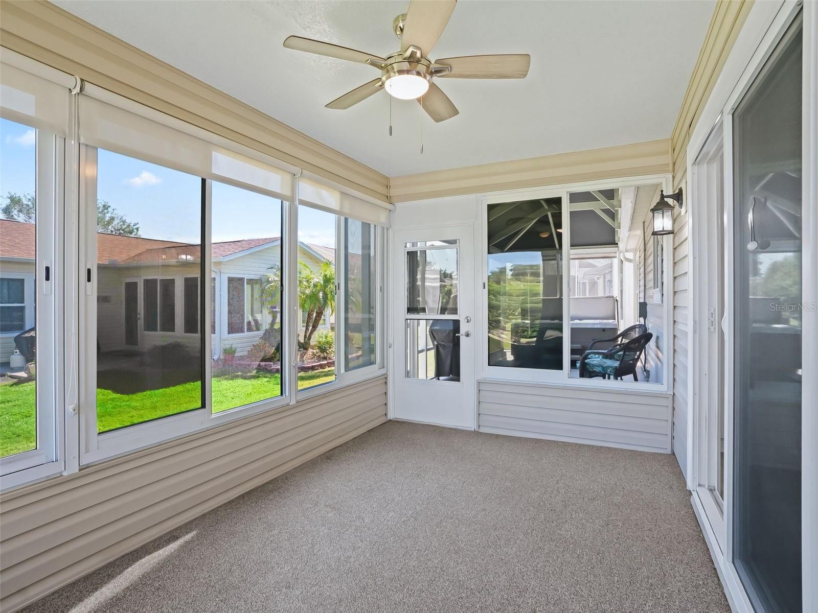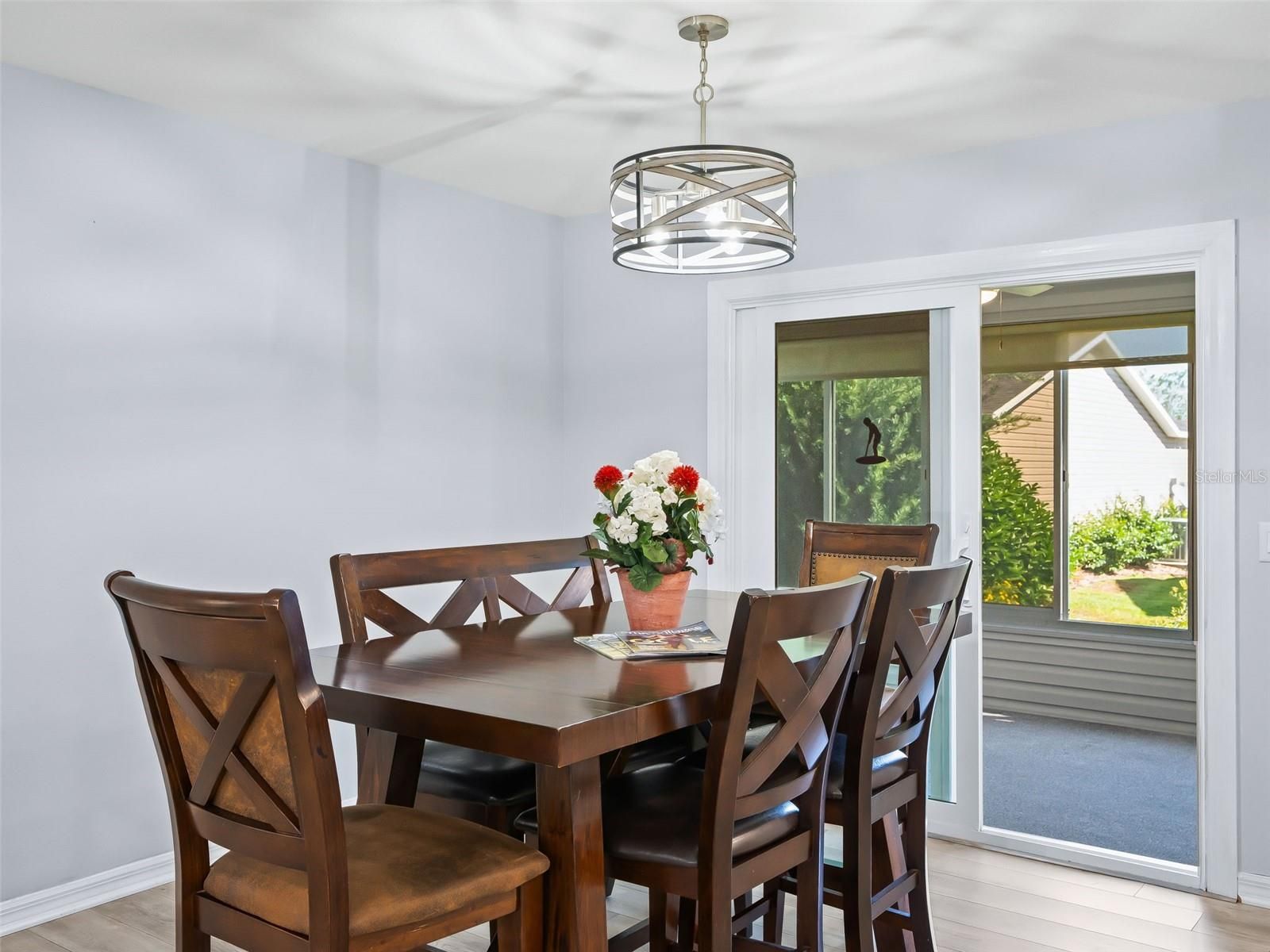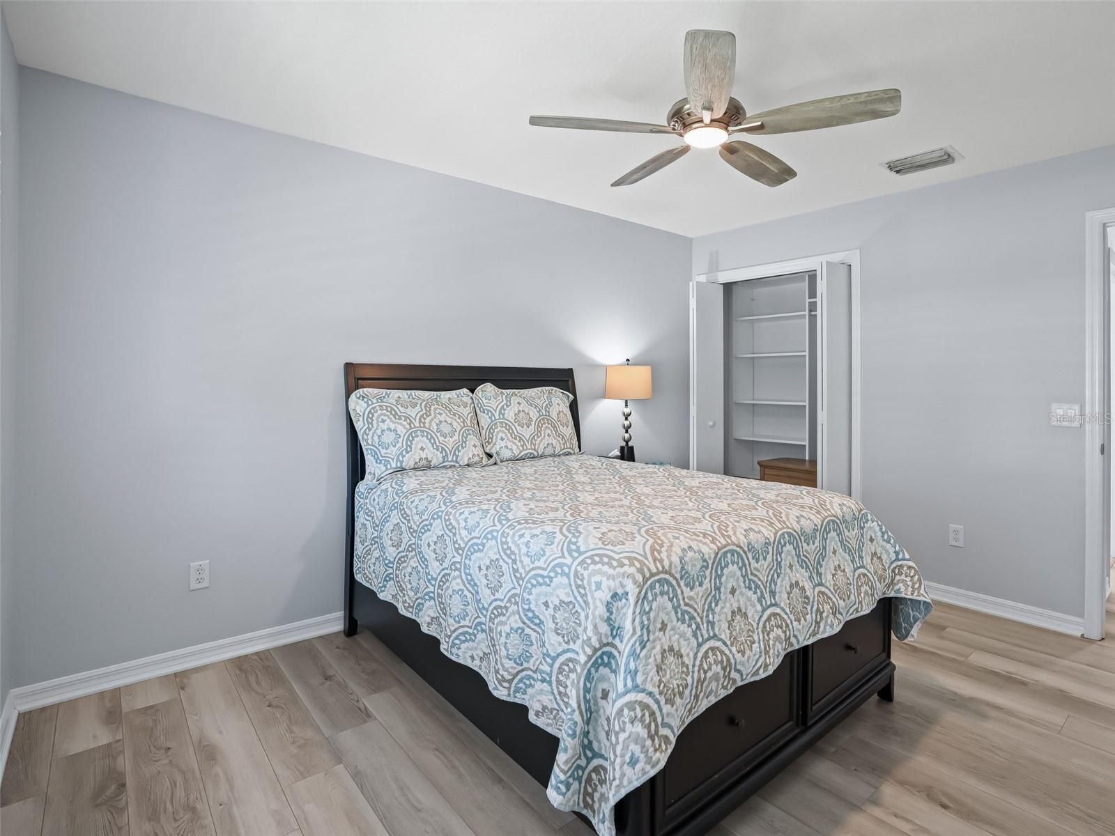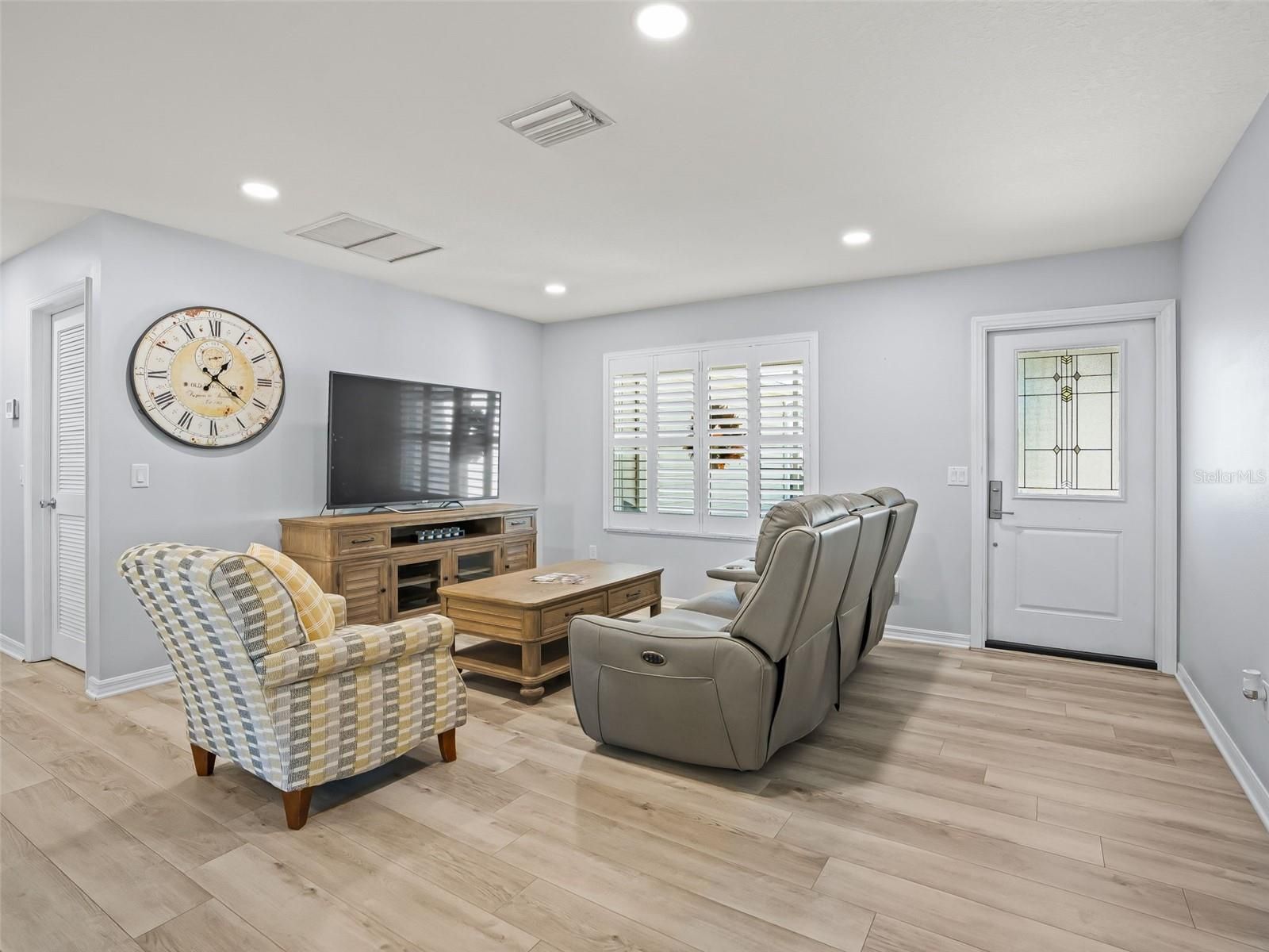 Welcome home to this beautifully UPDATED AMARILLO model (1,392 SF heated) in the Village of Piedmont with NO BOND! ROOF 2020, HVAC 2015. PLANTATION SHUTTERS, knockdown (NO POPCORN) ceilings, and NO CARPET- luxury laminate flooring throughout with no transitions!! All three bedrooms feature CUSTOM CALIFORNIA CLOSETS, including LARGE WALK-IN master closet. The completely UPGRADED KITCHEN offers STAINLESS STEEL Appliances, CROWNED SHAKER CABINETS TO THE CEILING w/ PULL-OUTS, GORGEOUS WHITE GRANITE, specialty TILE BACKSPLASH, and a FARMHOUSE SINK. Both baths have GRANITE-topped white vanities and UPGRADED LIGHTING. Enjoy year-round comfort in the EAST-FACING ENCLOSED LANAI with NEW 2024 non-impact windows and door, leading to a COVERED BIRDCAGE with a 2024 BULLFROG SPA/HOT TUB—perfect for relaxing after a day of recreation or an evening out. There’s also a SCREENED FRONT PORCH, UPDATED LIGHT FIXTURES AND FANS throughout, and an INSIDE LAUNDRY with washer, dryer, and cabinetry. The garage is a dream: utility sink, built-in cabinets, workbench, ABUNDANT STORAGE, and an extra refrigerator/freezer included. MOSTLY FURNISHED/ PART TURNKEY—just bring a few personal touches and start enjoying The Villages lifestyle!