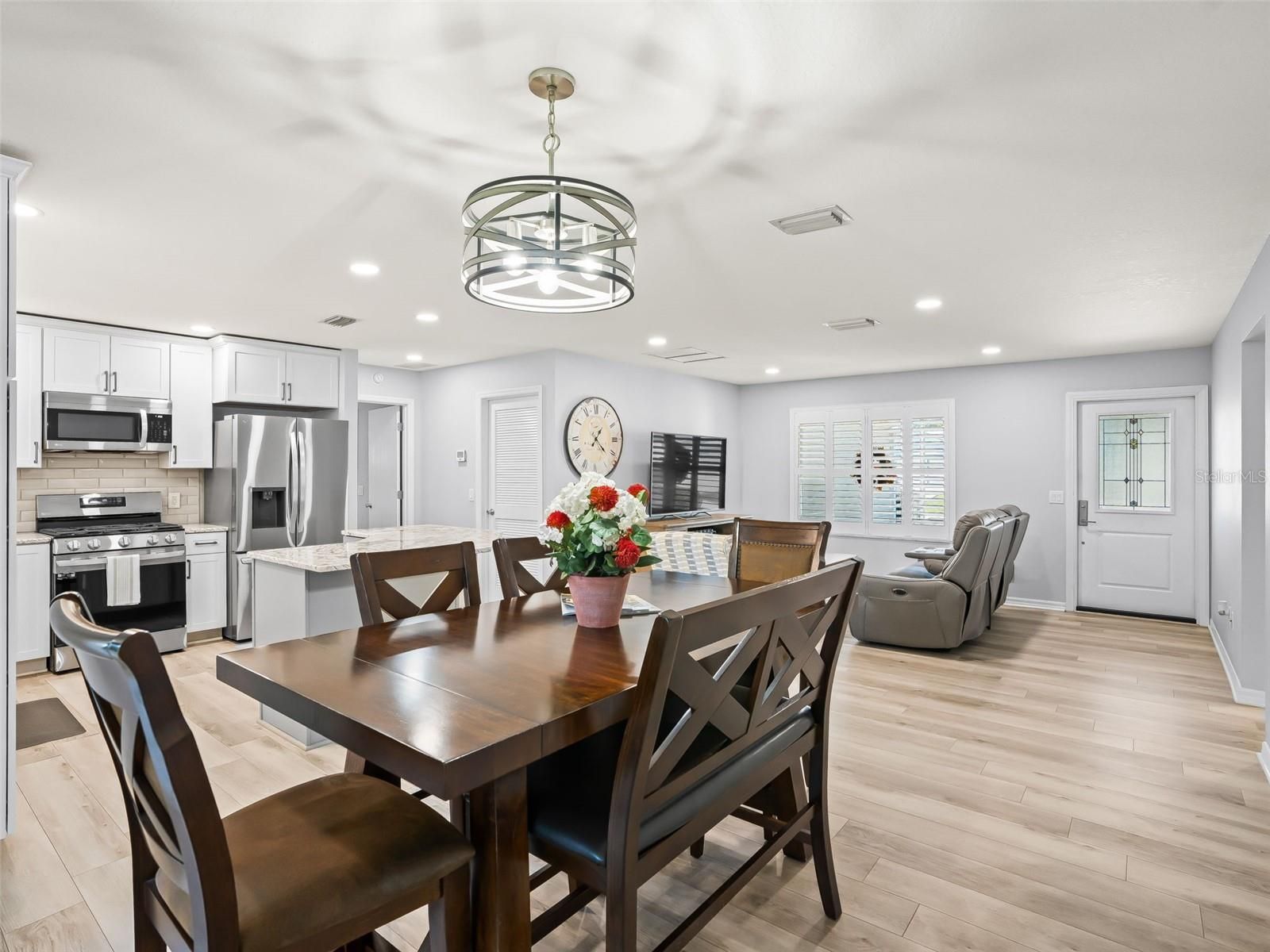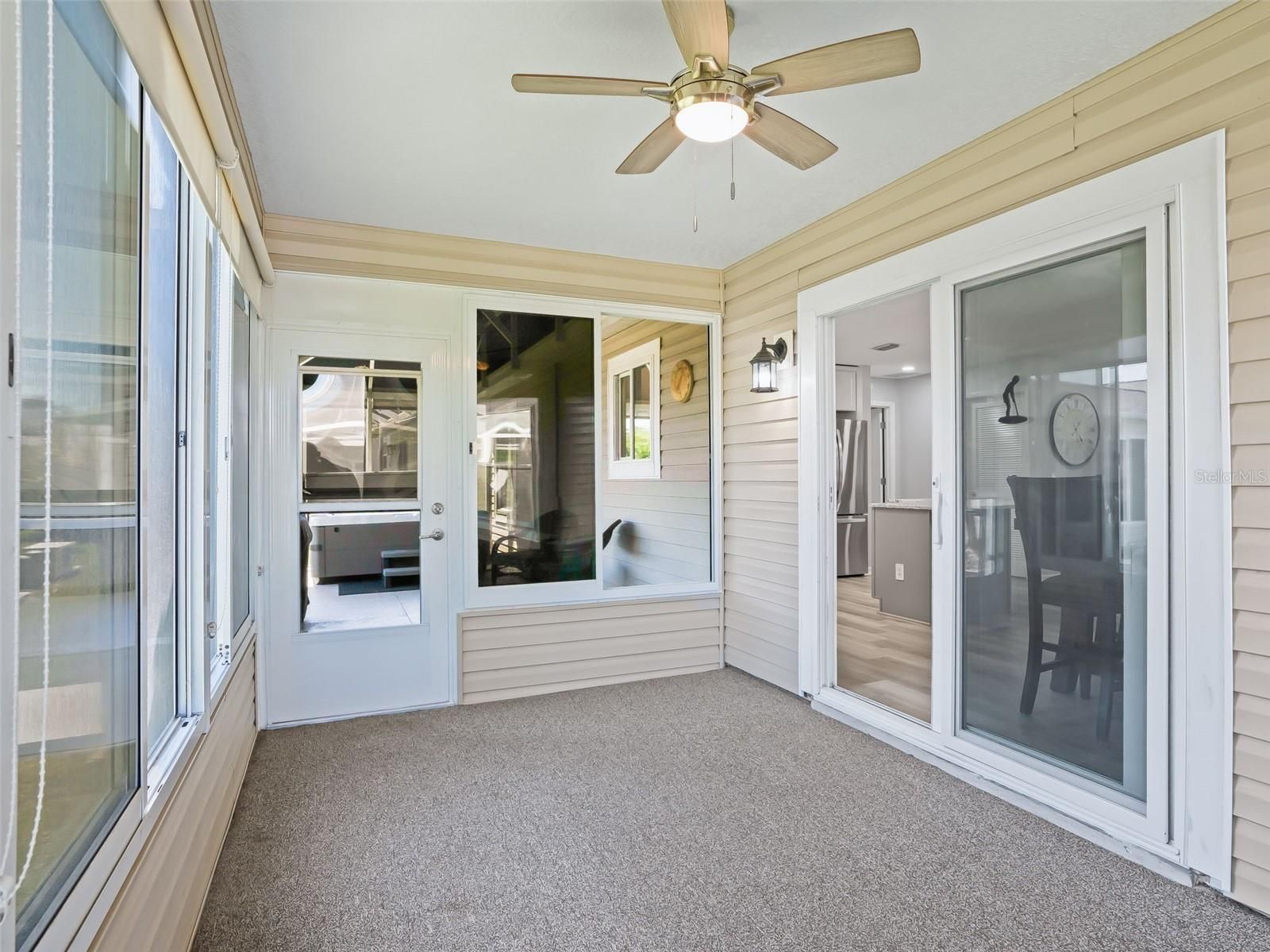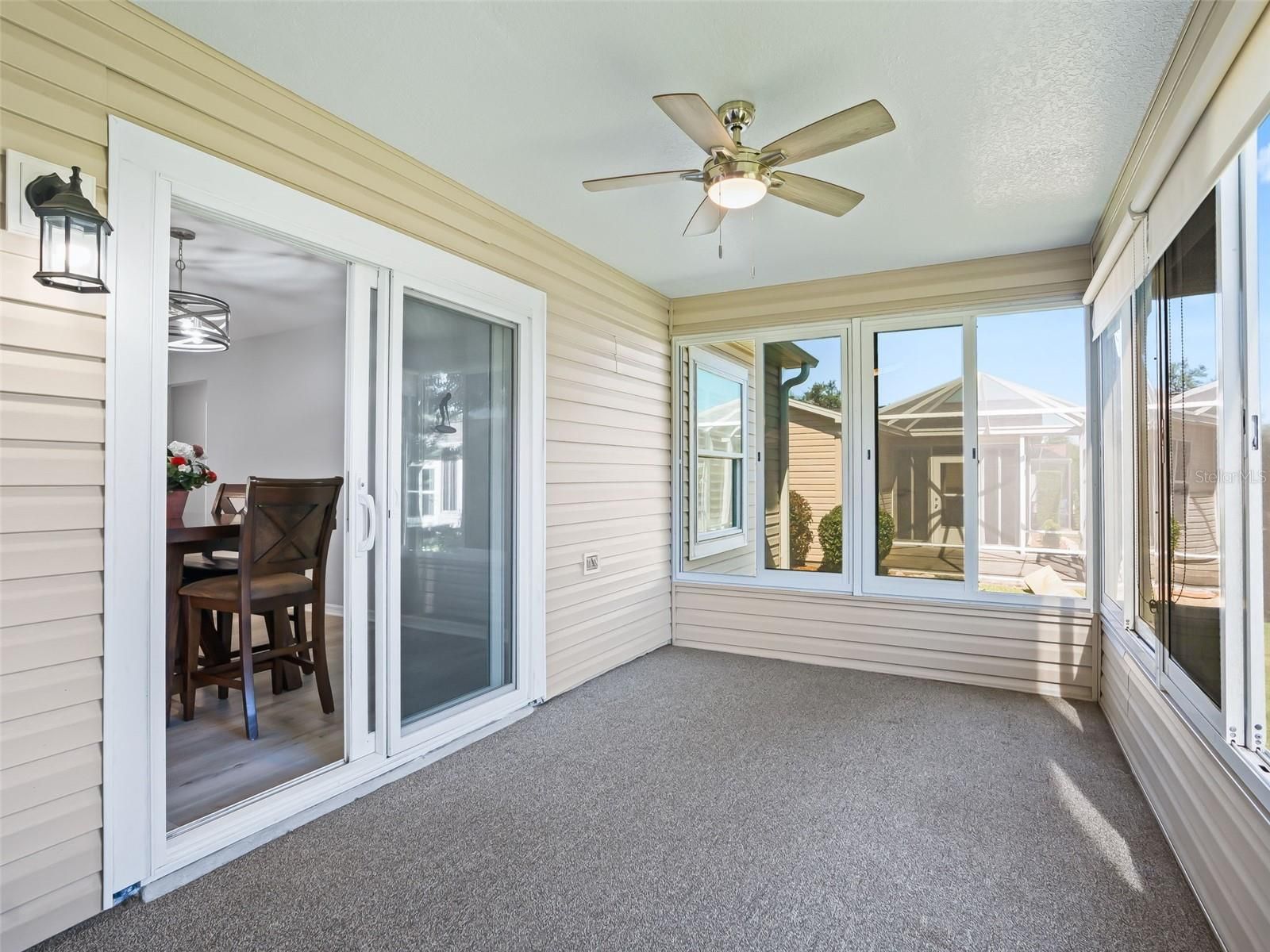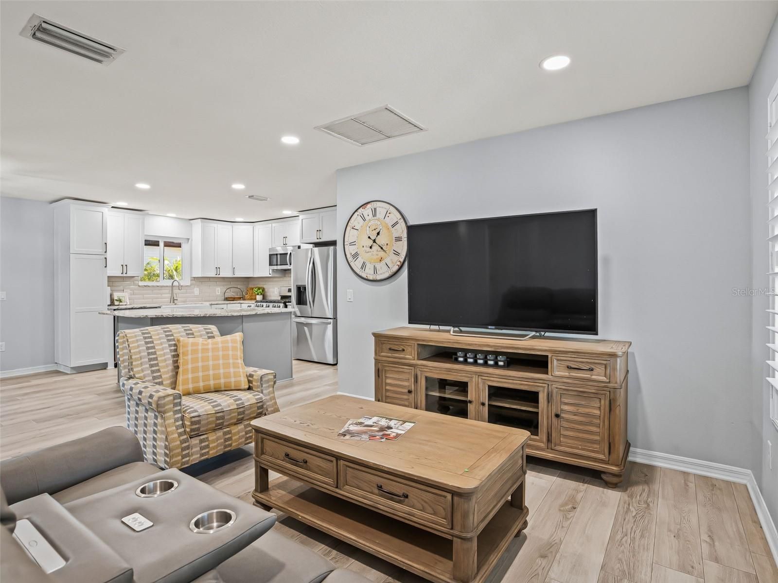 Welcome home to this beautifully UPDATED AMARILLO model (1,392 SF heated) in the Village of Piedmont with NO BOND! ROOF 2020, HVAC 2015. PLANTATION SHUTTERS, knockdown (NO POPCORN) ceilings, and NO CARPET- luxury laminate flooring throughout with no transitions!! All three bedrooms feature CUSTOM CALIFORNIA CLOSETS, including LARGE WALK-IN master closet. The completely UPGRADED KITCHEN offers STAINLESS STEEL Appliances, CROWNED SHAKER CABINETS TO THE CEILING w/ PULL-OUTS, GORGEOUS WHITE GRANITE, specialty TILE BACKSPLASH, and a FARMHOUSE SINK. Both baths have GRANITE-topped white vanities and UPGRADED LIGHTING. Enjoy year-round comfort in the EAST-FACING ENCLOSED LANAI with NEW 2024 non-impact windows and door, leading to a COVERED BIRDCAGE with a 2024 BULLFROG SPA/HOT TUB—perfect for relaxing after a day of recreation or an evening out. There’s also a SCREENED FRONT PORCH, UPDATED LIGHT FIXTURES AND FANS throughout, and an INSIDE LAUNDRY with washer, dryer, and cabinetry. The garage is a dream: utility sink, built-in cabinets, workbench, ABUNDANT STORAGE, and an extra refrigerator/freezer included. MOSTLY FURNISHED/ PART TURNKEY—just bring a few personal touches and start enjoying The Villages lifestyle!