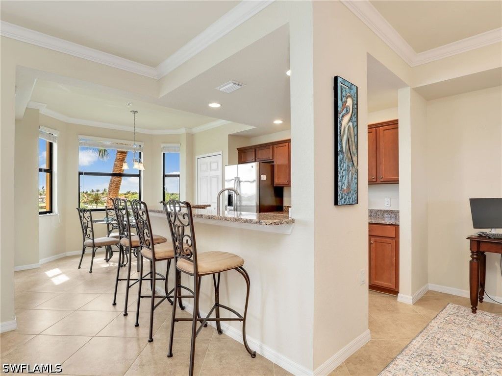 FULL GOLF & SOCIAL MEMBERSHIP included!!! Amazing western views from this third floor condo. Welcome to your luxurious condo in the prestigious Bonita National Golf and Country Club! This stunning third-floor unit boasts 2 bedrooms, 2 bathrooms, and a spacious screened lanai overlooking the pristine golf course and lake. The interior features granite counters, stainless steel appliances, carpet, and tile flooring, creating a modern and elegant living space. Bonita National offers a championship 18 hole golf course, 8 har-tru lighted tennis courts, pickleball & bocce courts (available end of 2026), resort style pool with waterfall & lap lanes and a fitness room. Relax by the community pool, enjoy lunch at the poolside bar and grill or dine at the clubhouse restaurant. This TURNKEY furnished condo is perfect for those seeking a maintenance-free lifestyle in a vibrant and active community. Covered carport parking adds convenience, while the abundance of amenities ensures there is always something to do. For investors, the condo has an excellent rental history. Whether you are a golf enthusiast or simply looking for a peaceful retreat, this condo offers the best of both worlds. Don't miss out on the opportunity to own a piece of paradise in Bonita National Golf and Country Club!