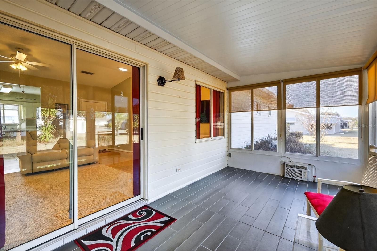 Welcome to resort-style living in Summerfield! This beautifully maintained Cypress model is in the sought-after gated 55+ community of Spruce Creek South and offers comfort, convenience, and an active lifestyle. This inviting residence features 2 bedrooms, 2 bathrooms, and approximately 1134 square feet of thoughtfully designed living space. The open floor plan provides a bright and airy feel, perfect for both relaxing and entertaining. The primary bedroom offers a large walk in closet as well as a spacious bathroom with tile in the walk in shower that also has a glass door. The guest bath has a spacious layout with a tub and tiled shower combo with lots of storage. The guest bedroom has a large closet and lots of room for visitors. The kitchen offers ample cabinetry, generous counter space, and a cozy eat in dining area. The microwave and refrigerator are both new! Enjoy peaceful mornings and relaxing evenings in the Florida room, overlooking the landscaped yard. The Florida room has beautiful tile flooring and windows with blinds as well as a wall unit for additional comfort on those sunny Florida days. Additional highlights of the home include vinyl floors in the dining room, hall and bedrooms with laminate in the bathrooms, carpet in the living room and tile in the kitchen. There is a large golf cart garage on the back of the home with a garage door that opens to the back yard. The large garage offers a garage door opener with an outside keypad, built in kayak racks and a side collapsible screen door. There is a screen door that leads from the kitchen into the garage as well. The front door boasts a beautiful glass storm door as well as a skylight in the foyer. The home also has a TV antenna that gets many local tv stations without paying for cable. Spruce Creek South residents enjoy: 18-hole golf course, 25,000 sq ft Clubhouse and fitness center with hobby/game rooms, library, billiards, social spaces and event rooms. Swimming pool and spa, Tennis and pickleball courts, softball and many other active social clubs. Conveniently located near shopping, dining, medical facilities, and The Villages. Best of all, Spruce Creek doesn't have bonds! Experience easy Florida living in a vibrant, welcoming community. Schedule your private showing today!
