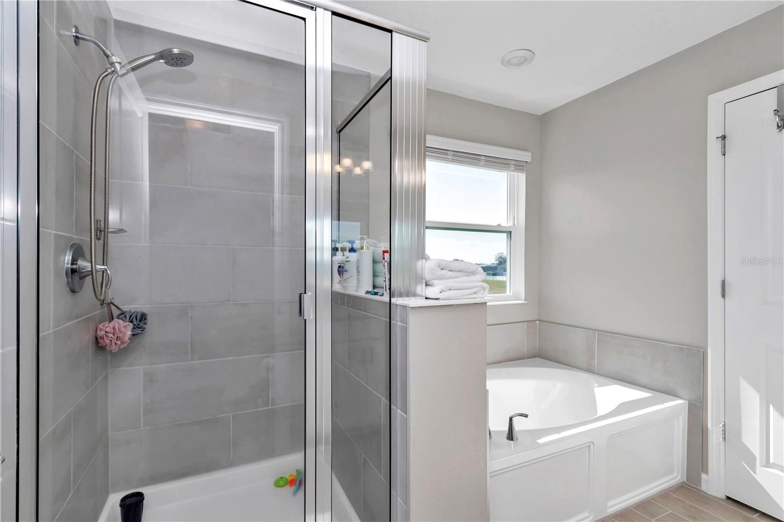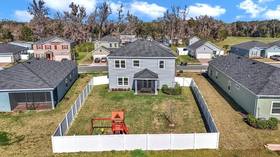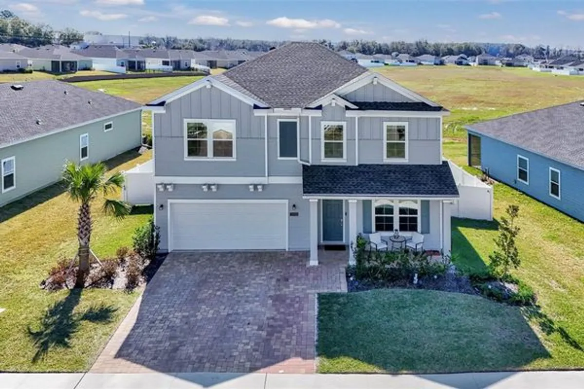 Motivated!! Immaculate, well maintained and move in ready 2023 Brio model by Lennar in Heath Preserve with no neighbors directly behind! All of the needed upgrades have been completed in this home such as oversized and extended paver driveway for plenty of parking, 6 foot vinyl fence with lighted caps in backyard, custom backsplash in the kitchen, and it has all of the " Classic " series featuring wood faux tile, crown molding in kitchen, pavers and the covered and screened in lanai, and blinds. This greets you upon your arrival with lush landscaping and your own personal palm tree. Walking up to the front porch , step into your open concept home with an office to the right. There is a 1/2 bath as a convenience on main for your guests. Steps from there is a oversized area perfect for entertaining and all those gatherings. The kitchen features quartz countertops, backsplash and stainless steel appliances with walk in pantry. The island has room for 3-4 stools and overlooks the dining area and spacious living room. Head upstairs to all of the bedrooms and laundry room. The primary bedroom is spacious and has primary bath with 42 inch height double vanities, a garden tub and tile with glass surround shower with walk in closet. All additional bedrooms share the 2nd bath with tile surround tub/ shower. Head back downstairs through the dining where the seller has added french doors leading to the outdoor space. The screened in and covered lanai has custom pavers added to match to home. Large backyard with privacy fence and play set. New pool coming soon to the community with Low yearly hoa of $555/ year. Close to all the conveniences of life with all the modern touches of this beautiful opportunity!