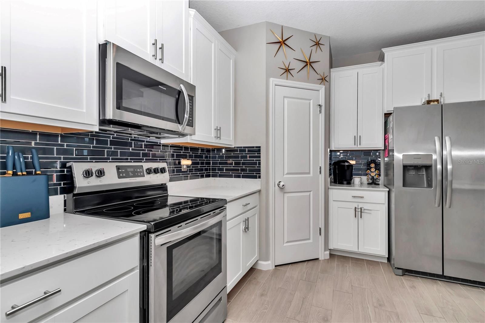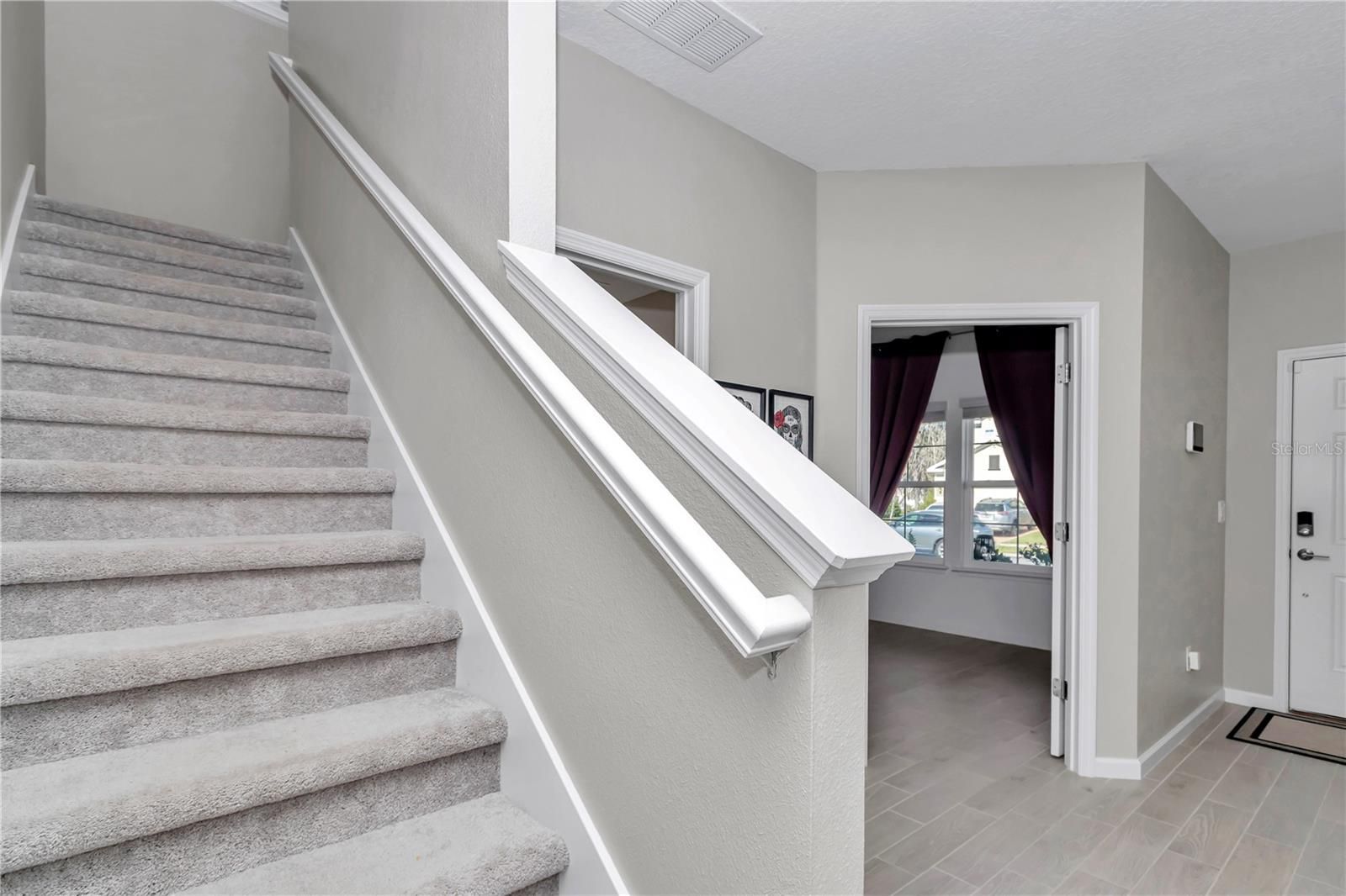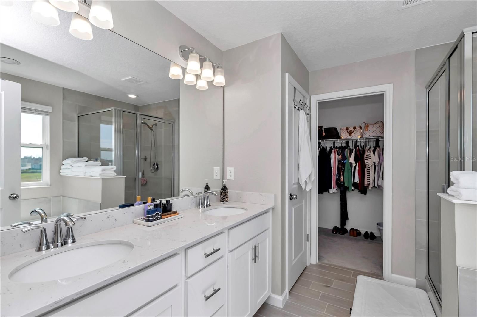 Motivated!! Immaculate, well maintained and move in ready 2023 Brio model by Lennar in Heath Preserve with no neighbors directly behind! All of the needed upgrades have been completed in this home such as oversized and extended paver driveway for plenty of parking, 6 foot vinyl fence with lighted caps in backyard, custom backsplash in the kitchen, and it has all of the " Classic " series featuring wood faux tile, crown molding in kitchen, pavers and the covered and screened in lanai, and blinds. This greets you upon your arrival with lush landscaping and your own personal palm tree. Walking up to the front porch , step into your open concept home with an office to the right. There is a 1/2 bath as a convenience on main for your guests. Steps from there is a oversized area perfect for entertaining and all those gatherings. The kitchen features quartz countertops, backsplash and stainless steel appliances with walk in pantry. The island has room for 3-4 stools and overlooks the dining area and spacious living room. Head upstairs to all of the bedrooms and laundry room. The primary bedroom is spacious and has primary bath with 42 inch height double vanities, a garden tub and tile with glass surround shower with walk in closet. All additional bedrooms share the 2nd bath with tile surround tub/ shower. Head back downstairs through the dining where the seller has added french doors leading to the outdoor space. The screened in and covered lanai has custom pavers added to match to home. Large backyard with privacy fence and play set. New pool coming soon to the community with Low yearly hoa of $555/ year. Close to all the conveniences of life with all the modern touches of this beautiful opportunity!