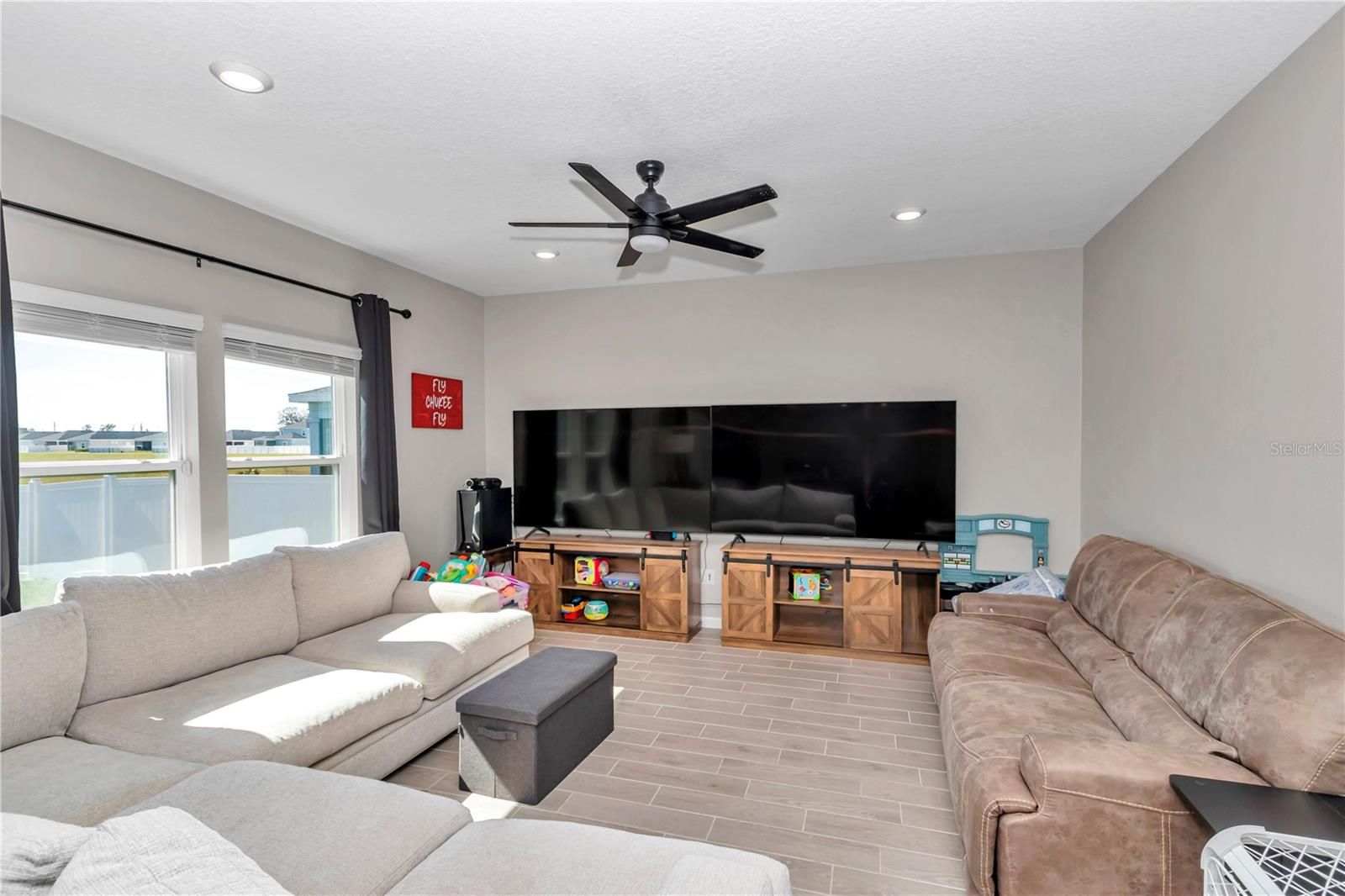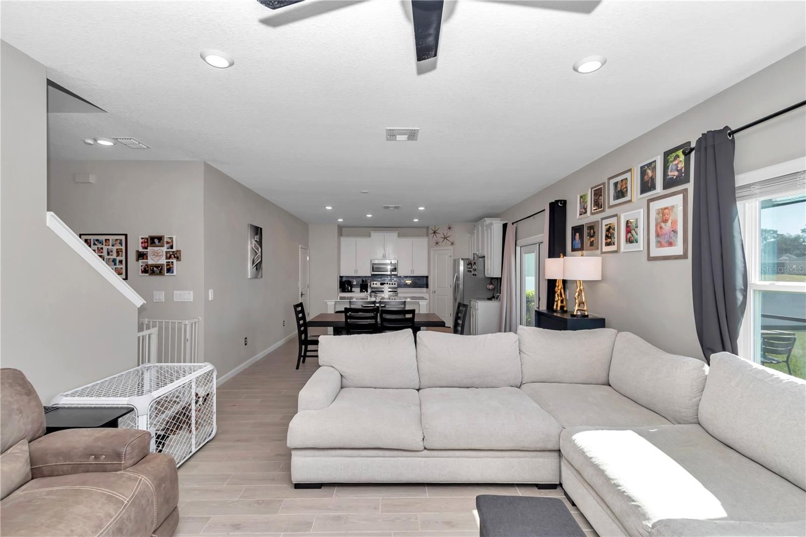 - Ceiling Fan(s), Crown Molding, Eat-in Kitchen, High Ceilings, Kitchen/Family Room Combo, Living/Dining Room, Open Floorplan, Upper Level Primary, Stone Counters, Thermostat, Walk-In Closet(s), Window Treatments