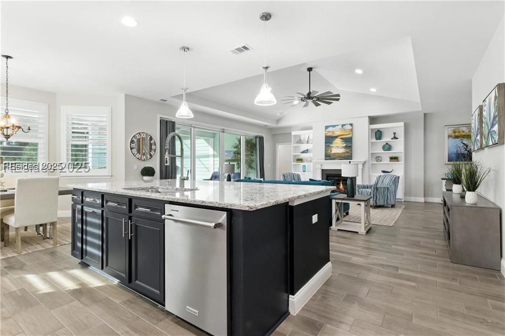 Island Vibes Start Here in Latitude Margaritaville Hilton, a premier 55+ community! Move right into your personal slice of paradise in this stunning St. Bart home, perfectly placed on a prime wooded lot with protected wetlands views so your morning coffee comes with a side of birdsong. There is a Sophisticated sip-and-social space for you to hang out with your friends and enjoy this unique wet bar! This 3-bedroom + den + mancave + 3-bath (2 ensuite) beauty with a 3-car garage checks all the boxes for carefree island living. Slide open the doors to your extended screened lanai and kick back while the warm breezes remind you why you chose Latitude Margaritaville. Love to cook? You'll adore the gas cooktop, double ovens, quartz counters, and custom built-ins that keep everything within easy reach. On cooler evenings, cozy up by the fireplace while your guests retreat to their private baths in the guest wing because you're the house everyone wants to visit! Bonus: Whole-house water filtration and low-maintenance living with lawn care included, so you can spend more time enjoying the Paradise Pool, Bar & Chill Restaurant, Fitness Center, and endless resort-style amenities waiting just outside your door. Ready to trade stress for sunsets? Grab your flip-flops and step into your new Latitude lifestyle today! PRR