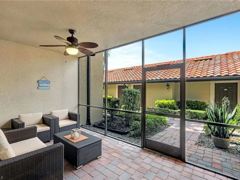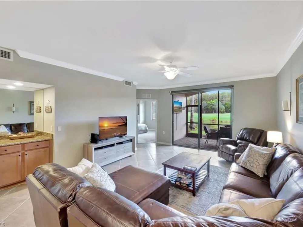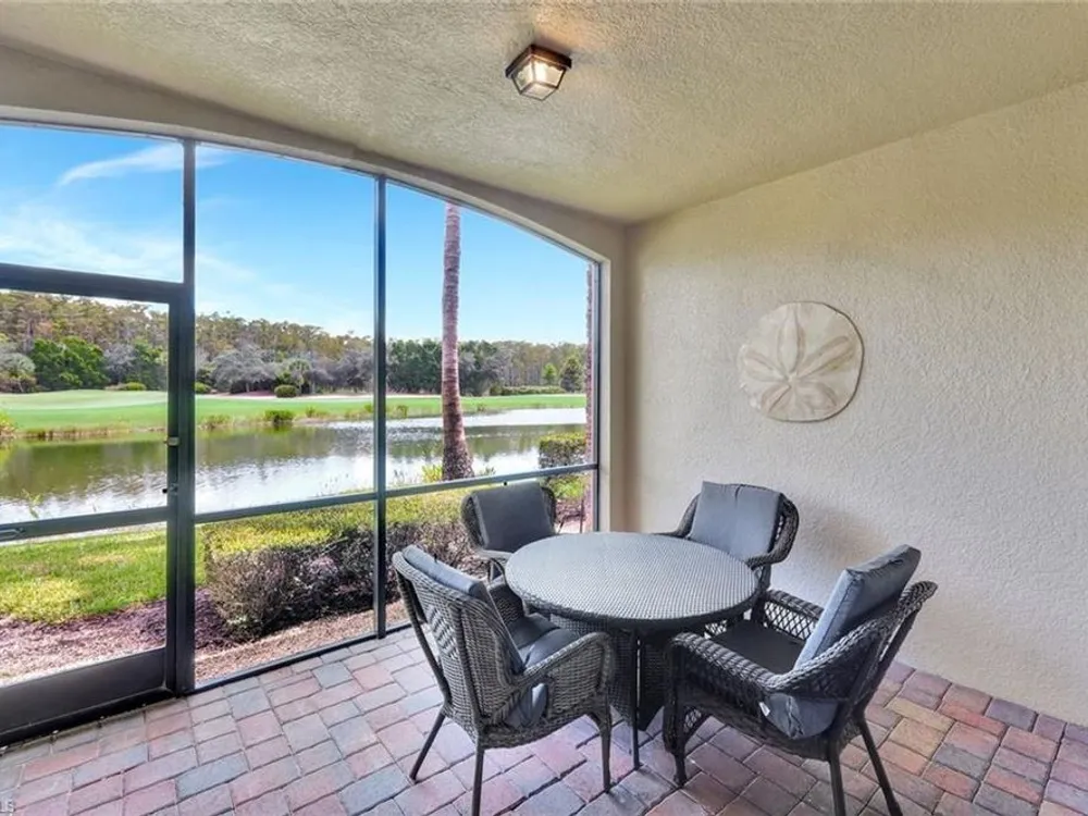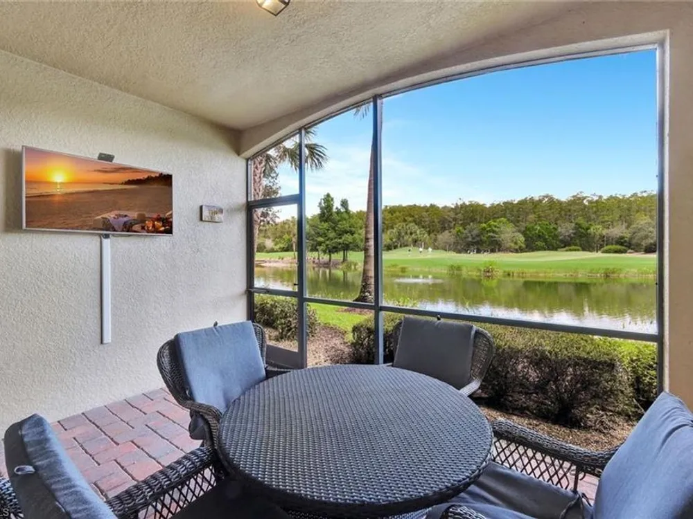 GOLF INCLUDED WITH THIS END UNIT VERANDA CONDO! Experience breathtaking morning views from your comfortable east-facing lanai, which overlooks the lake and golf course! This beautiful Arabella floor plan features a spacious primary suite that includes two walk-in closets and a spa-inspired bathroom complete with a soaking tub and a separate shower. Entertaining will be a pleasure in the great room, where you can enjoy the same stunning views, while the den offers flexible space for your creativity. The second bedroom is thoughtfully located for privacy and comes with a full second bathroom, making it convenient for family or guests. The U-shaped kitchen boasts a delightful breakfast nook, perfect for informal dining or as a cozy office space. Additionally, the front entry lanai provides extra screened living space. With the TURNKEY option available, you can move right in and begin enjoying the wonderful Southwest Florida lifestyle at the amenity-rich Bonita National. Plus, GOLF MEMBERSHIP IS INCLUDED with this bundled property!