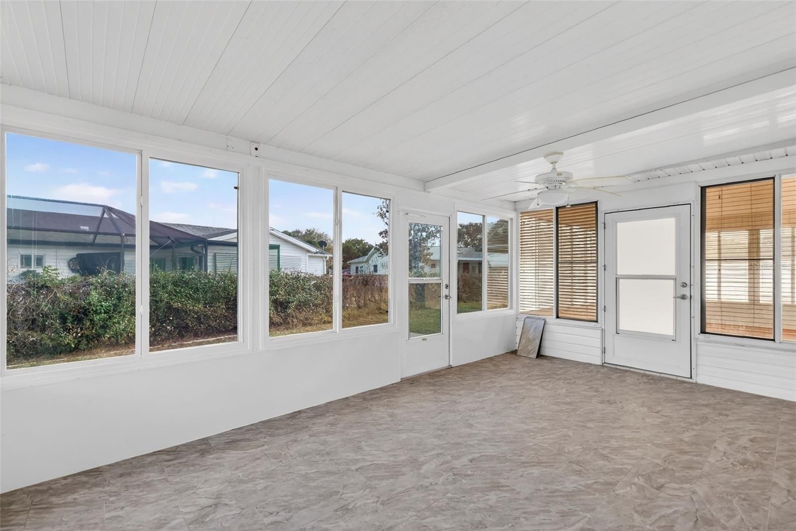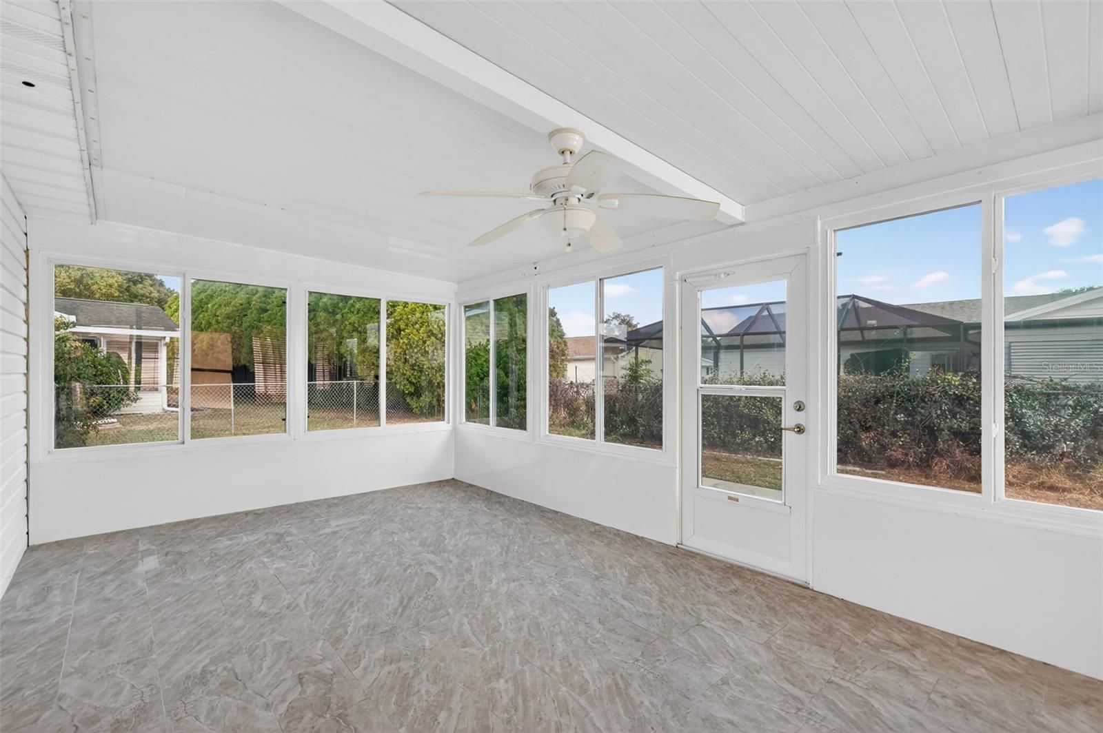 Discover your FOREVER home in Spruce Creek South!!!This MOVE IN READY 3/2 DOGWOOD model with an expanded Lanai has GLASS WINDOWS and is under HVAC. A Welcoming FRONT PATIO sets the tone for a warm feeling throughout this lovely home. The KITCHEN has plenty of WHT CABINETS with Pull Out Drawers, Newer Appliances, Stylish Countertops, Updated light and Tile Floor! In the Main Living areas you will find WOOD LOOK LAMINATE,An ANGLED CEILING with a SKYLIGHT providing NATURAL LIGHT ,CEILING FANS and LIGHTING. THERE ARE NO CARPETS IN THIS HOME!!!!Throughout the home there are Ceiling fans for COMFORT.One of the Guest Bedrooms has BOOK SHELVES conveniently BUILT IN. OFF the lanai there is an additional PORCH with GLASS WINDOWS to enjoy Entertaining/relaxing. The BACK YARD is FENCED in as well. Other features include: WHOLE HOUSE GENERATOR (Underground propane tank ) 2018, HVAC 2017, HT WHT HEATER 2013, ROOF 2009. The Garage has a Washer & Dryer, Sink, Storage Shelving and a Screen Door. Don't miss this opportunity to live in a Wonderful 55+ community with easy access by GOLF CART to Shopping, Golf and Entertainment. Call today for your appt!!!!!!!!