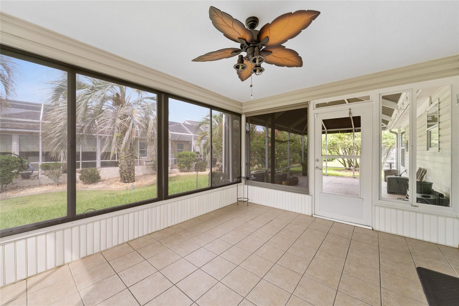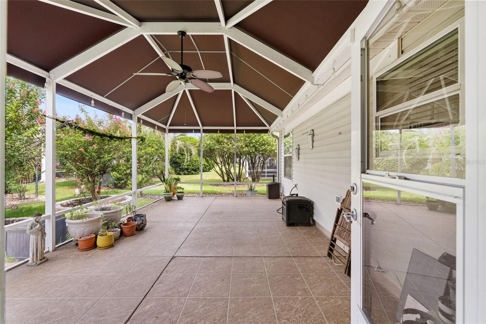Can you believe the price of this UPDATED 3/2 Bougainvillea (formerly Banyan) Model which is MOVE-IN READY in the desirable VILLAGE OF PIEDMONT near Lopez Country Club? What's important- ROOF 2022, HVAC 2016 AND WATER HEATER 2019. The front curb appeal is so inviting with lava rock and mature landscaping leading to the covered porch. There has been a recent addition of the pitched front porch roof extension to provide cover of the front door. This makes this model unique as compared to similar ones. As you enter, you notice the OPEN FLOOR PLAN and CONTINUOUS LAMINATE FLOORING (no carpet!) with the comfortable living area front and center. The kitchen has been made bright and inviting with NEW GRANITE, FIXTURES and light toned cabinets. The stainless appliances were replaced in 2019 except for the new dishwasher (2024). The kitchen also boasts TILE BACKSPLASH, Solar Tube, and Under-Cabinet Lighting with a GAS STOVE! The Primary Bedroom is spacious with en-suite and a large walk-in closet. The bathroom has a tile floor and updated walk-in shower, linen closet, and the same beautiful Granite counter. The Guest Bedrooms are comfortable and inviting with ceiling fans and both have closets. There is an updated guest bathroom with tub/shower combo and linen closet between them. The large laundry room (inside) has a pantry and storage cabinets and leads to the 2 car garage with additional storage space in the attic and added cabinets. The lanai/enclosed Florida Room with glass/screens is cool and comfortable with roll-up blinds and an attached television which conveys with the home. It leads to an extended birdcage area with canopy for shade which provides extra seating and an entertaining option with new lighting. This area leads to outside for gardening and grilling with a new hose attachment. The backyard area is surrounded by mature landscaping to provide privacy from seasonal neighbors. You will be thrilled with the easy access to shopping, dining and the well-known Villages Squares! You're minutes away from many pools, recreation centers, golf cart path and Savannah Performing Arts Center. This is such a nice home and priced to sell. Make an appointment to see it today- you won't be sorry! (Some of these photos have been virtually staged)